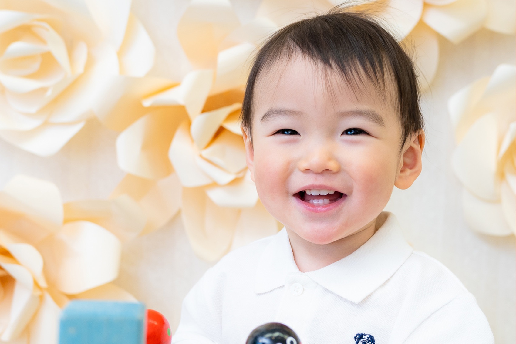 カメラを向けるととびきりの笑顔を見せてくれるカメラが大好きなお子様、