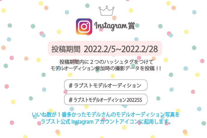 2022年2月5日〜2022年2月28日までの期間中に、本撮影会の撮影データをInstagramにて投稿でエントリー完了となります。