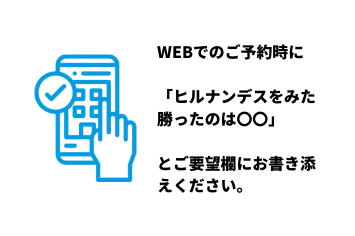 ※ご予約時に「ヒルナンデスを見た。勝ったのは〇〇」とご要望欄へお書き添えください。