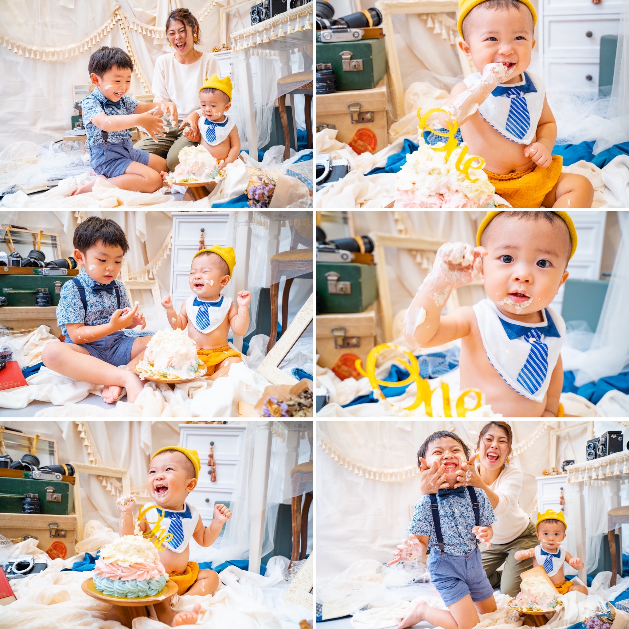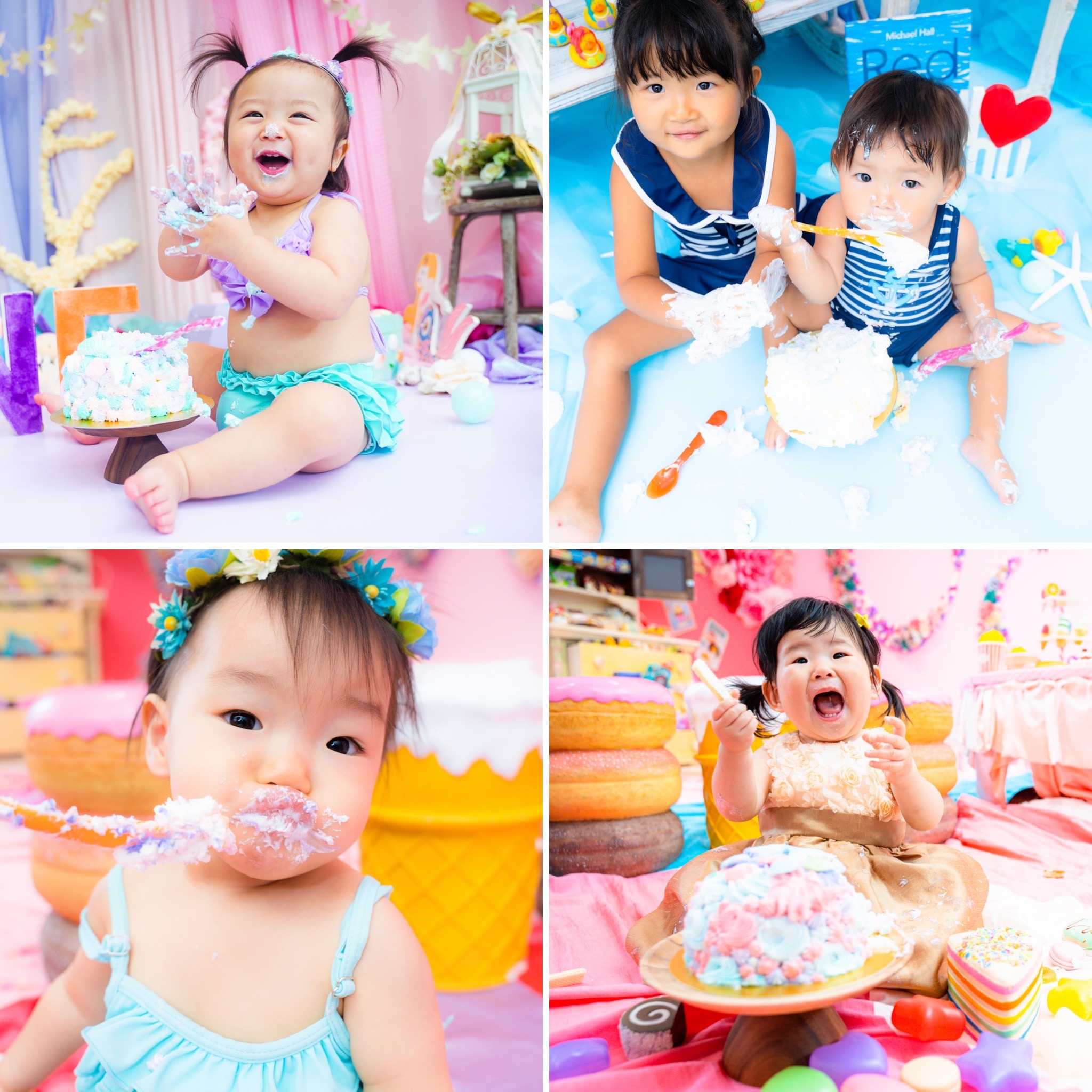 もちろん1歳の赤ちゃんだけではなく、2歳以上のバースデー/成長記録としてもご用意できます✌︎ 海外のパーティーシーンでは、お兄さんお姉さんもスマッシュケーキを楽しんでいます🎵✨