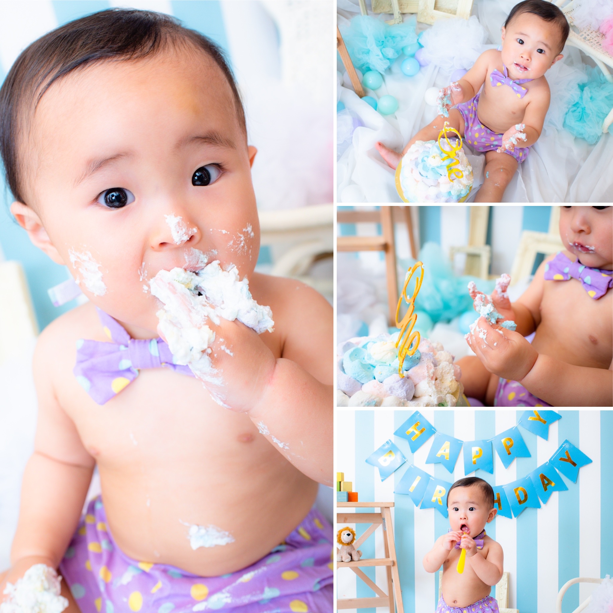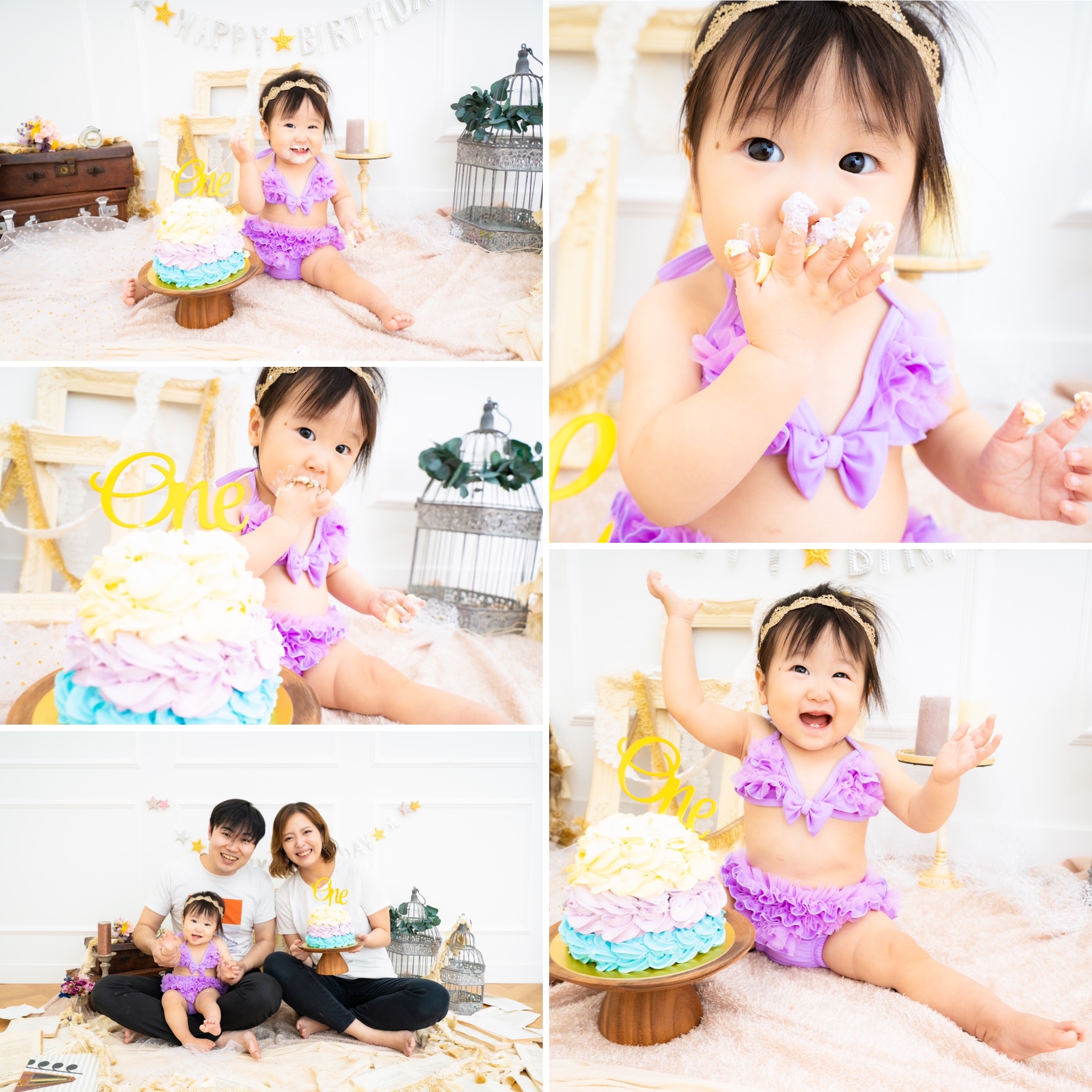 いつもの可愛らしい姿と、はじめてケーキスマッシュをしたワクワクドキドキの姿。