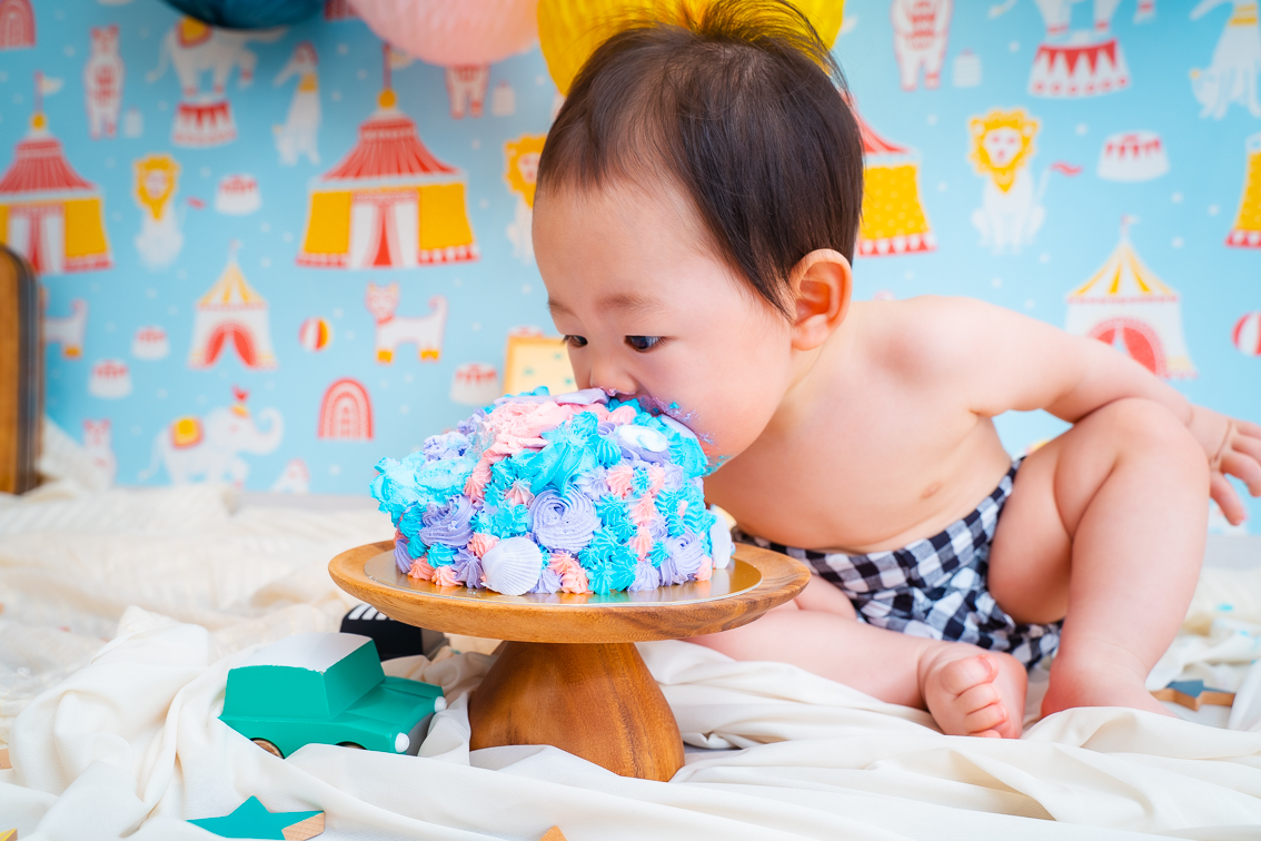 『ん??コレなに??』『早く食べたーいっ!モシャモシャ♡』など、お子様によってリアクションが違うのもスマッシュケーキ撮影の醍醐味♡
