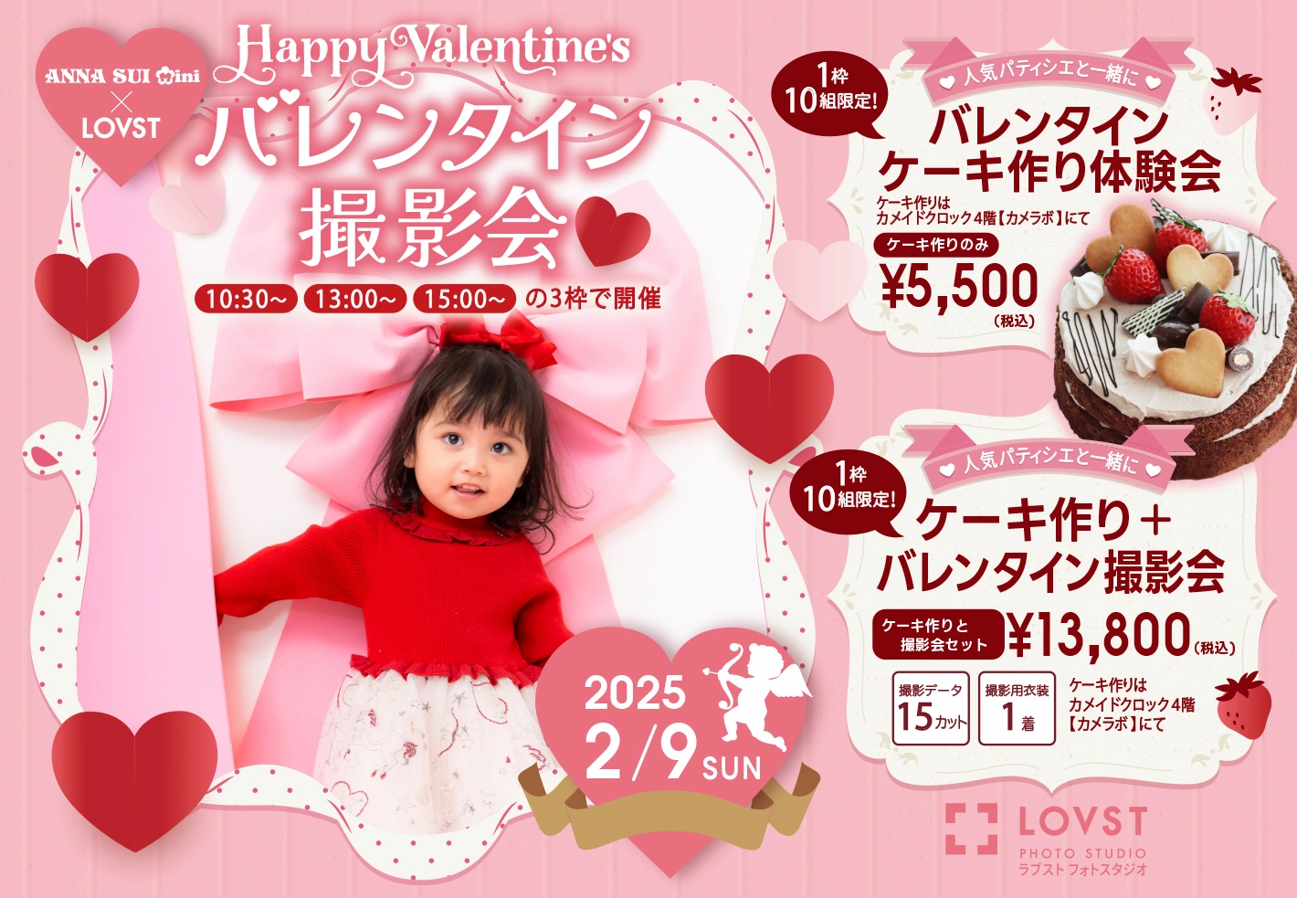 ◆ケーキ作り体験会後、LOVST亀戸店スタジオでバレンタイン撮影会のご案内となります。混雑時は、撮影まで少々お時間をいただく場合がございます。