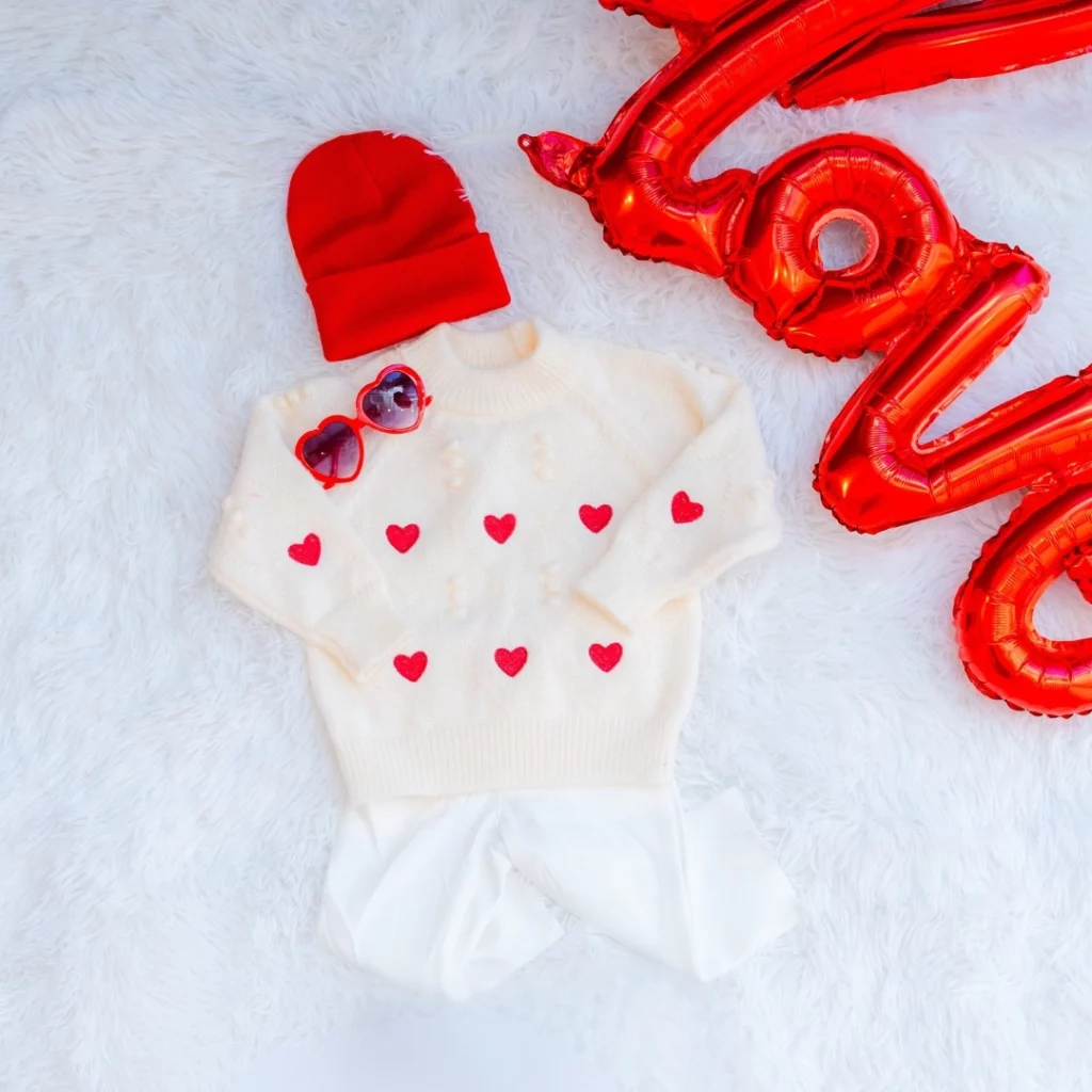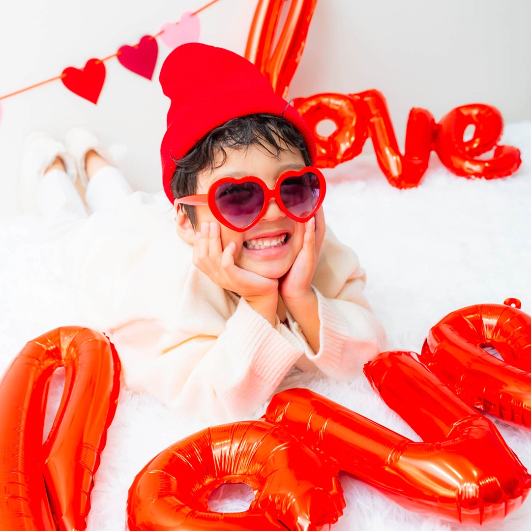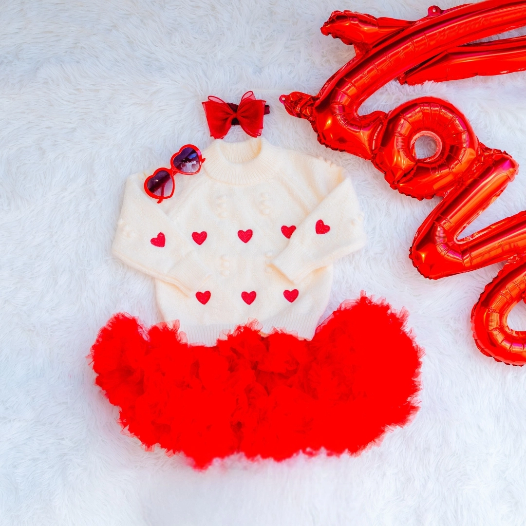 赤いリボンのヘアアクセサリー・赤ニット帽・ハートサングラス等