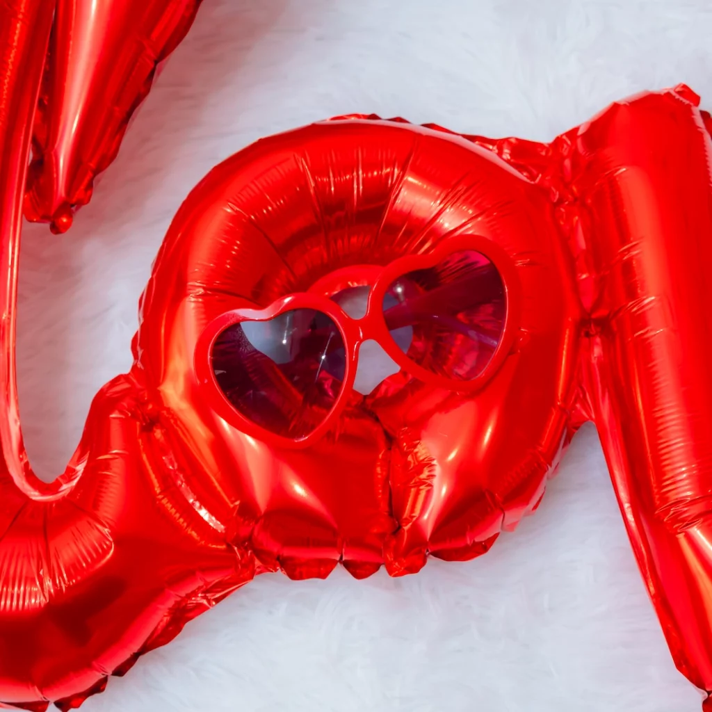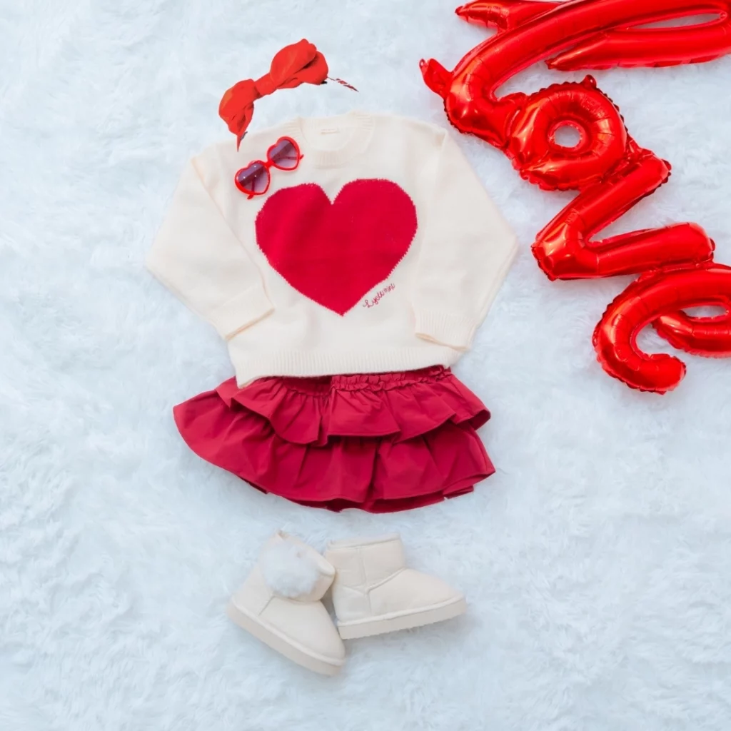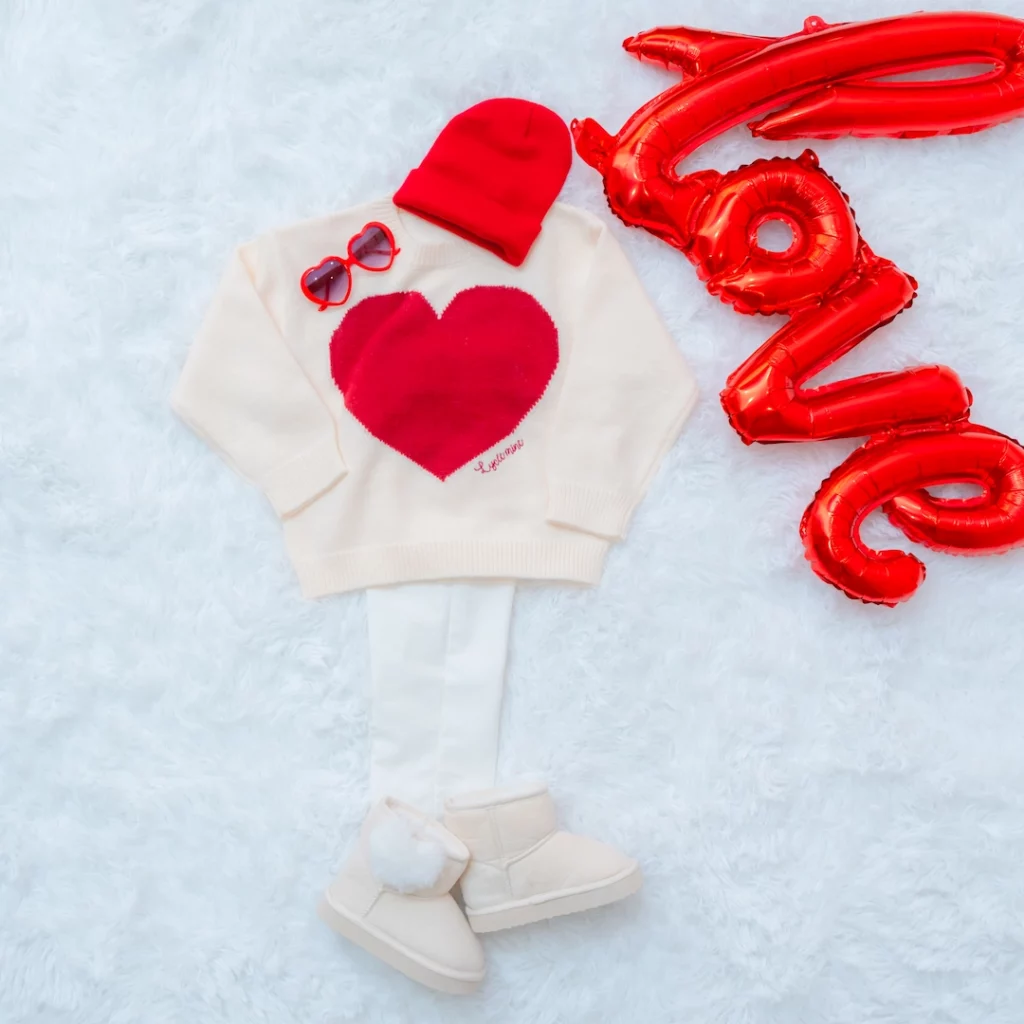 赤いリボンのヘアアクセサリー・赤ニット帽・ハートサングラス等