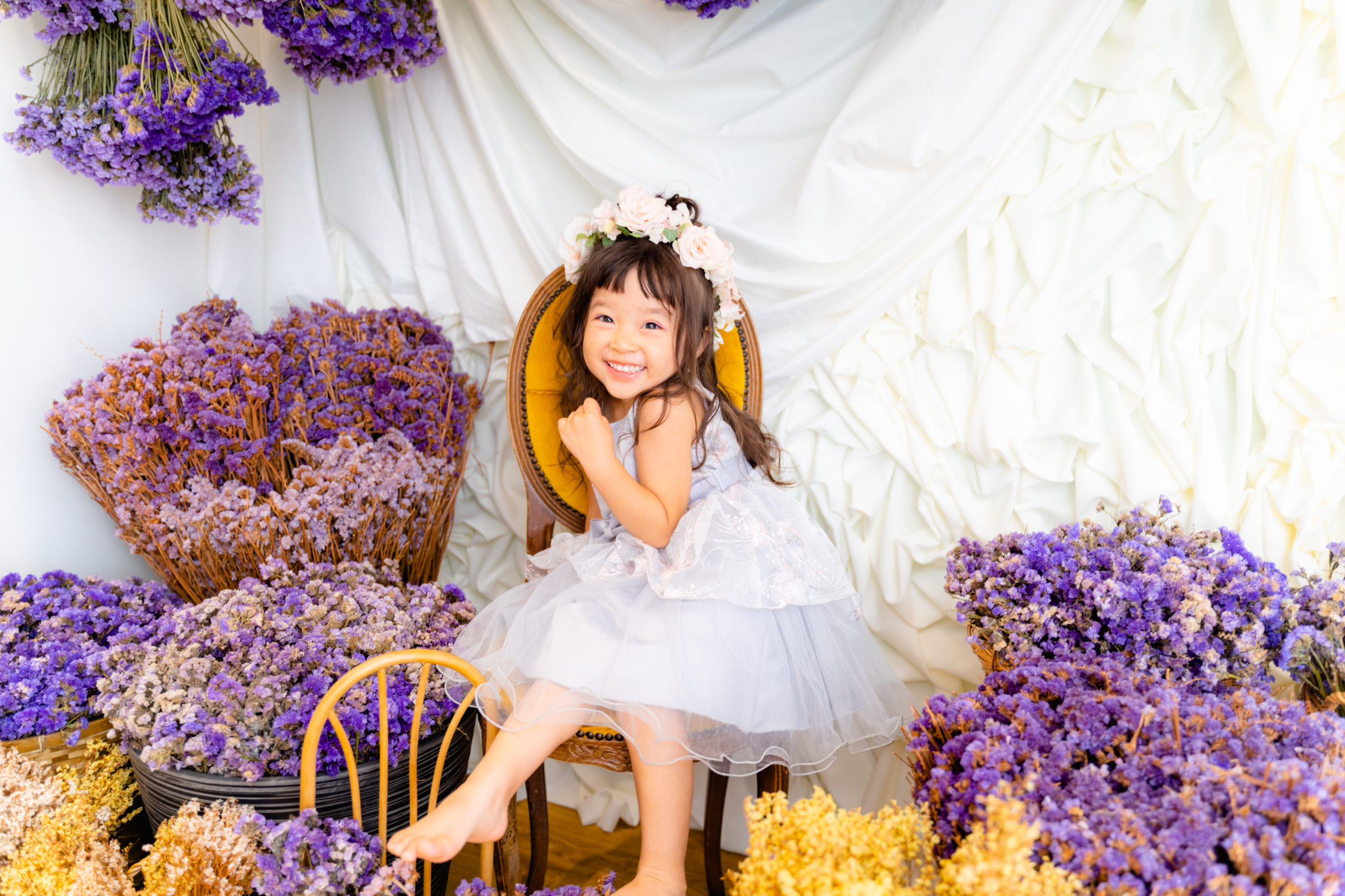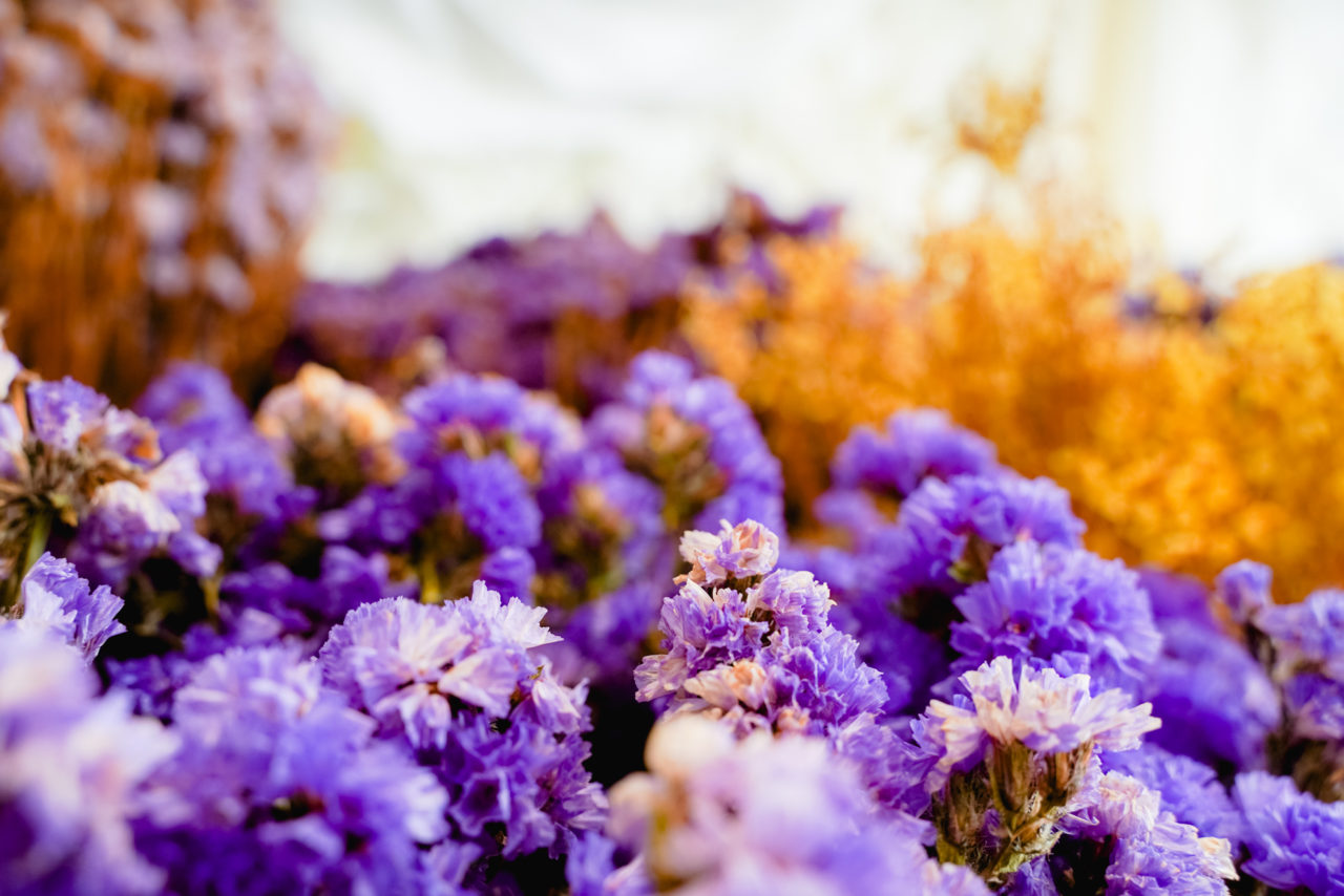 大量のスターチスが目を引く「パープルドライフラワー」のシーンは