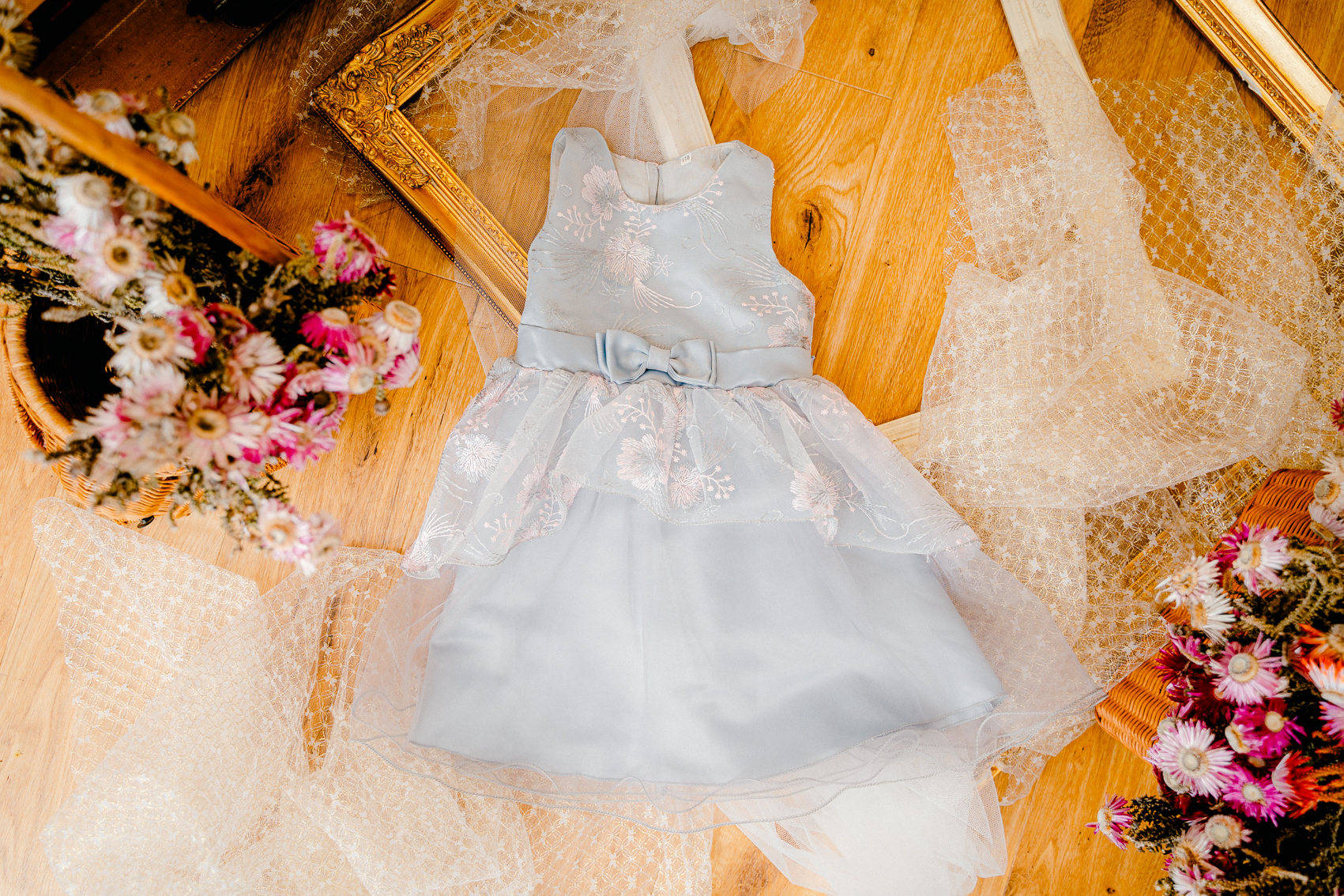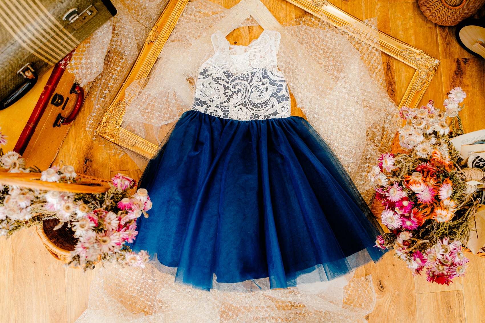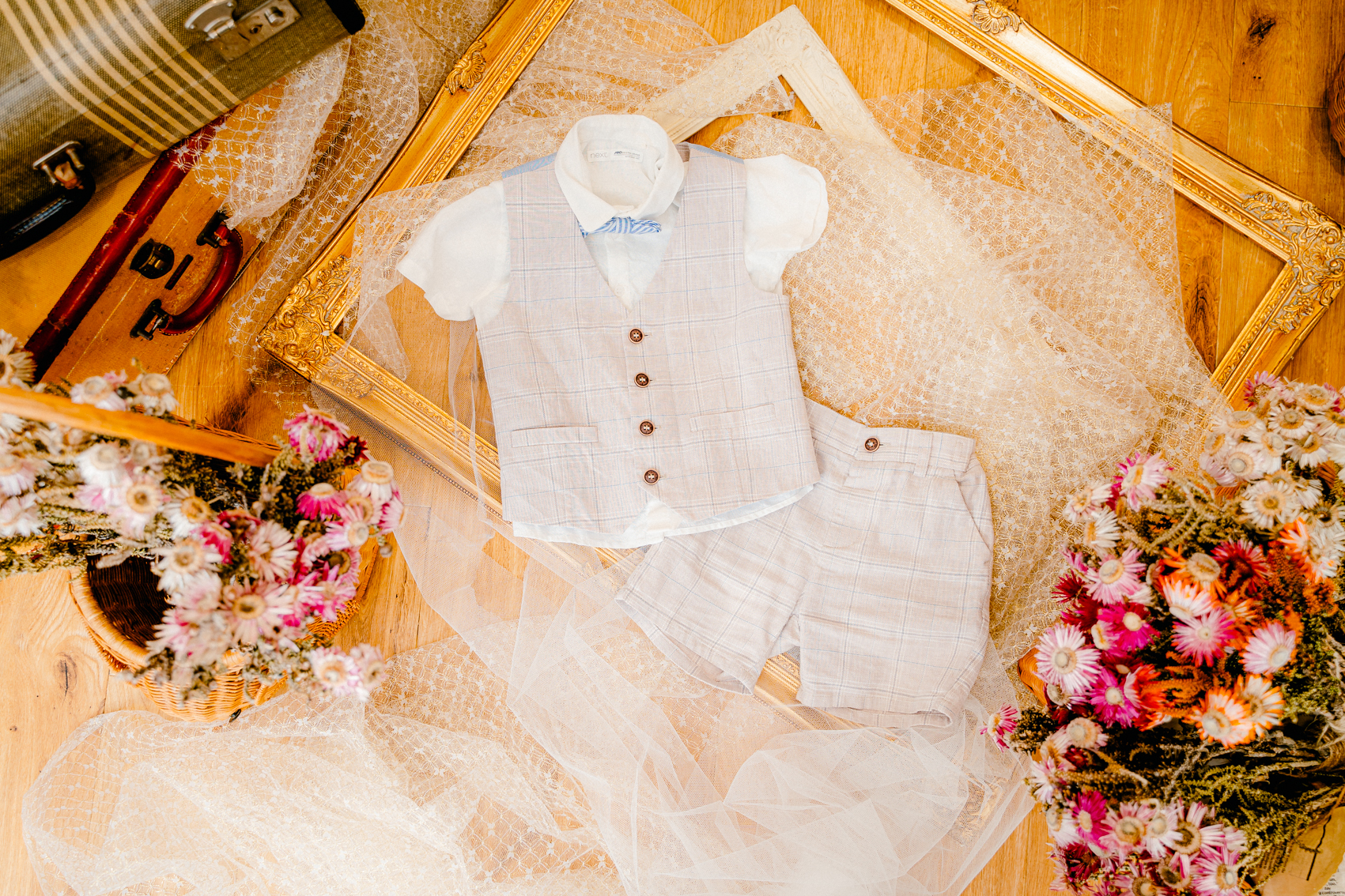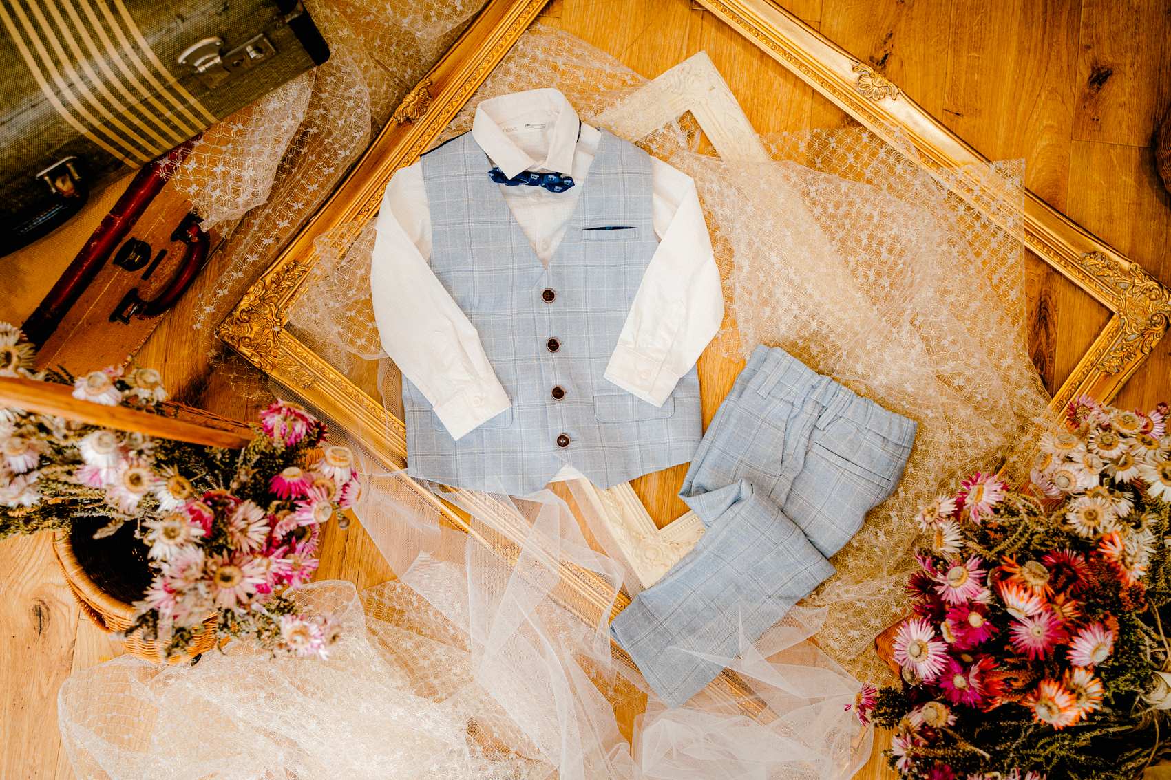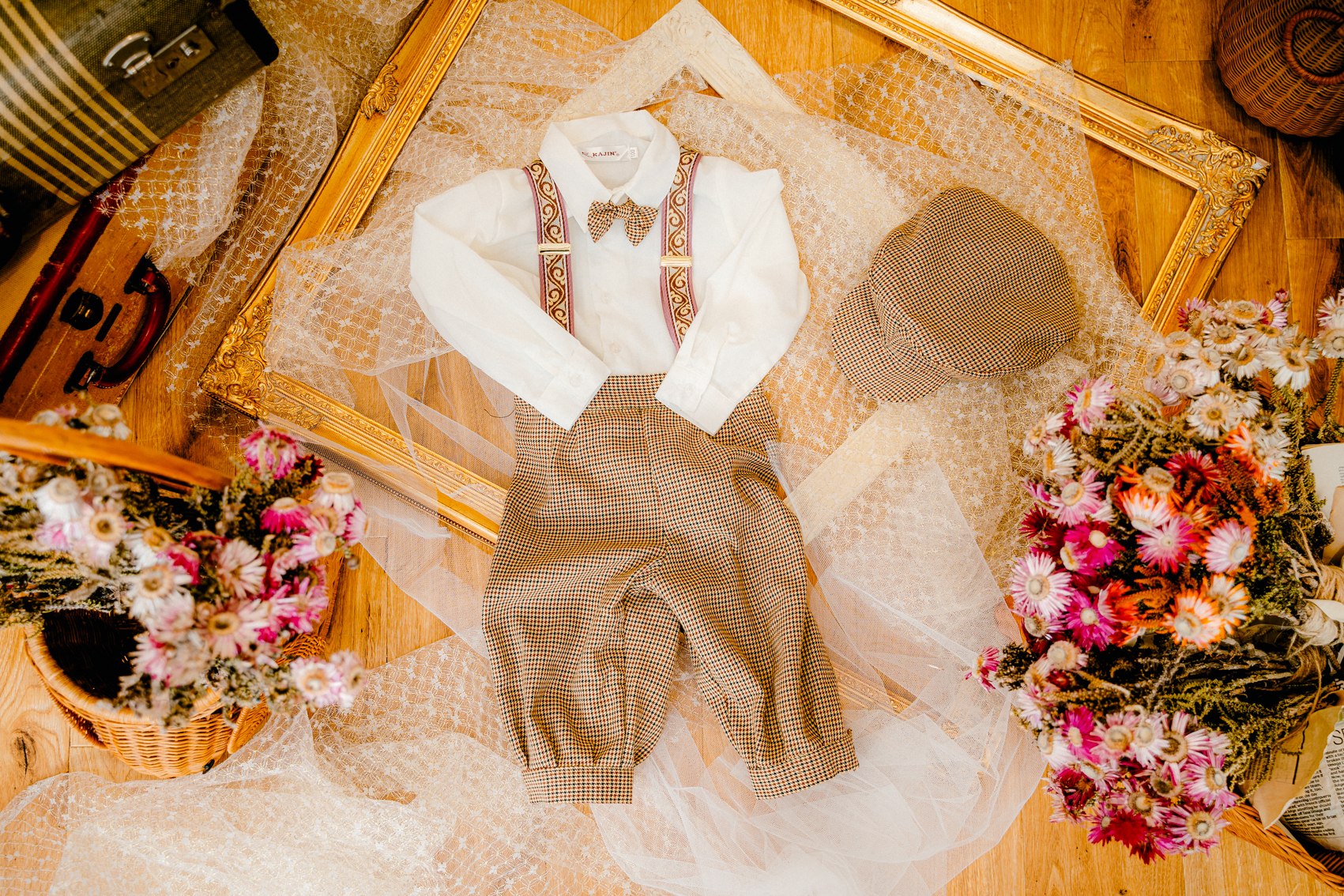 彩り豊かな花々とアンティーク小物のミックスで