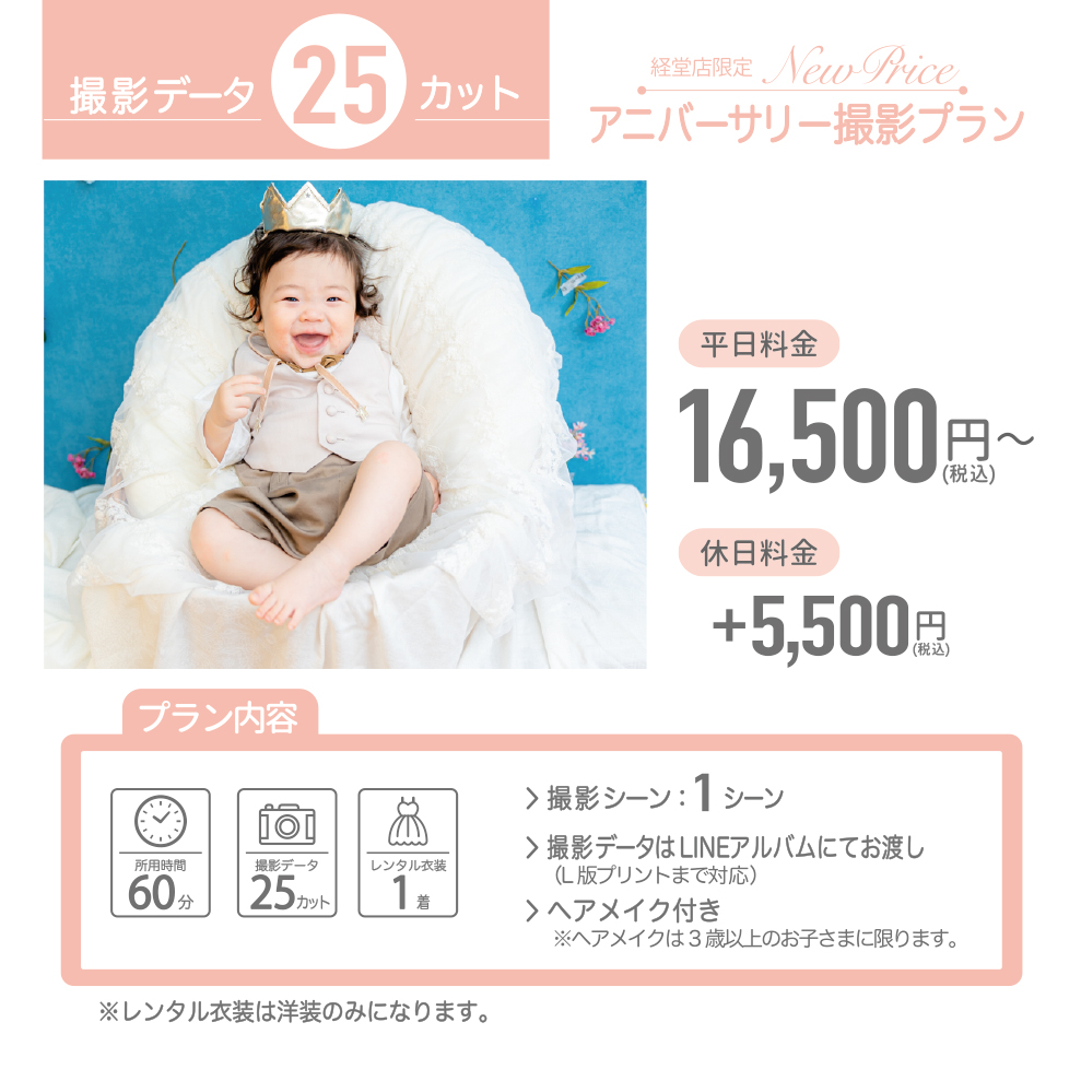 ※より多くの家族写真をご希望の場合は、1シーン・25カットを