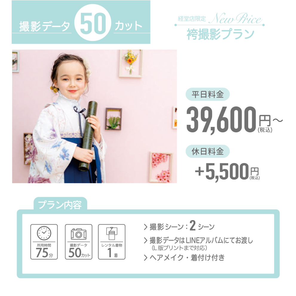 ※家族撮影は集合写真に限り、1~2カット迄無料。