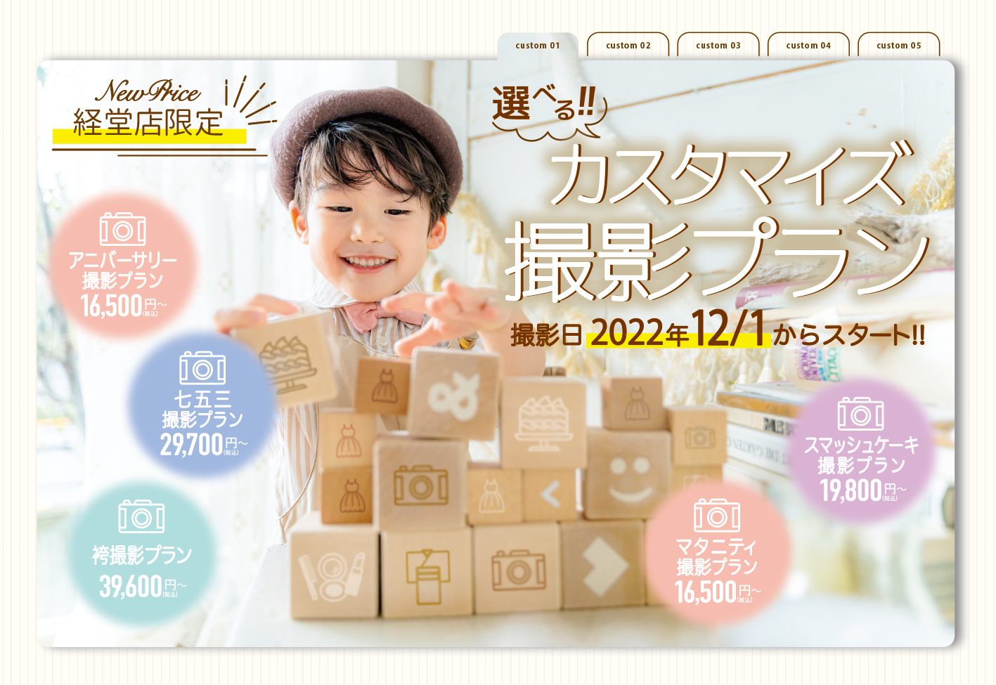 『選べる!カスタマイズ撮影プラン』がいよいよリリースします!!