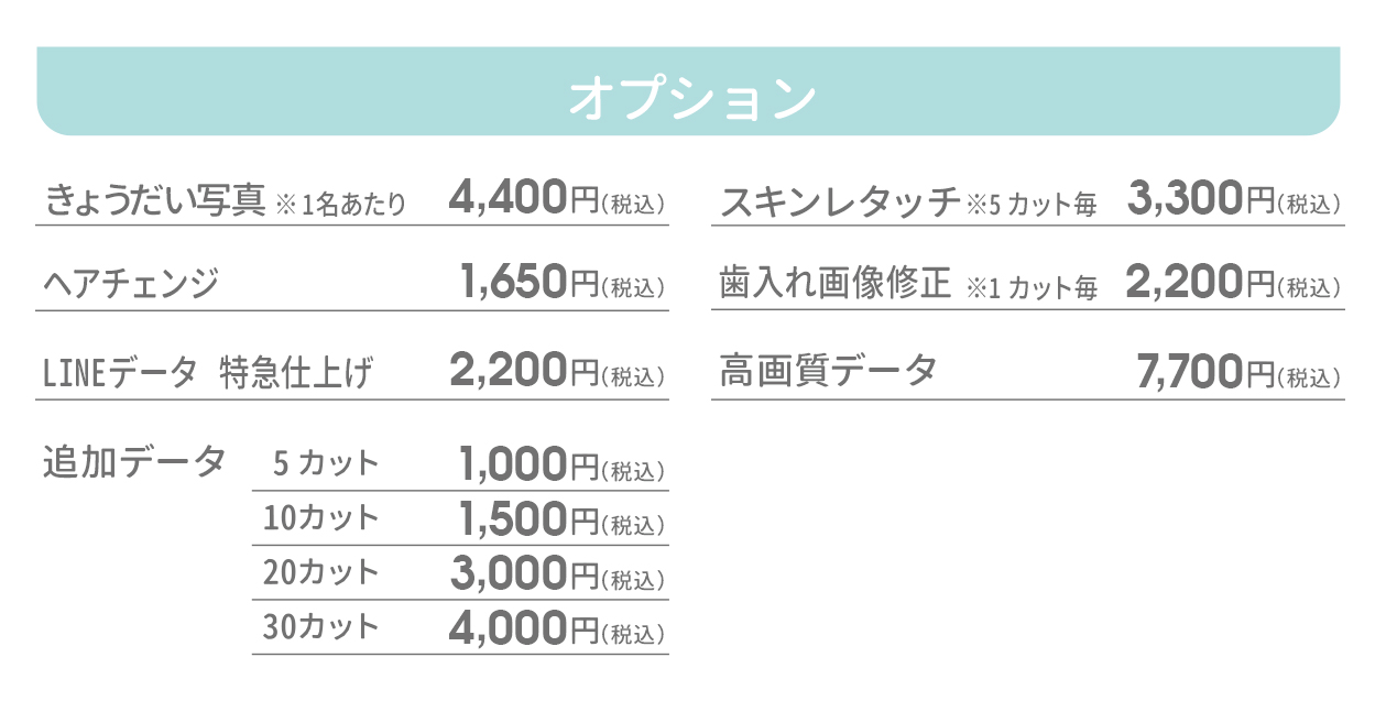 ※家族撮影は数カット無料。(カット数の上限内に含む)