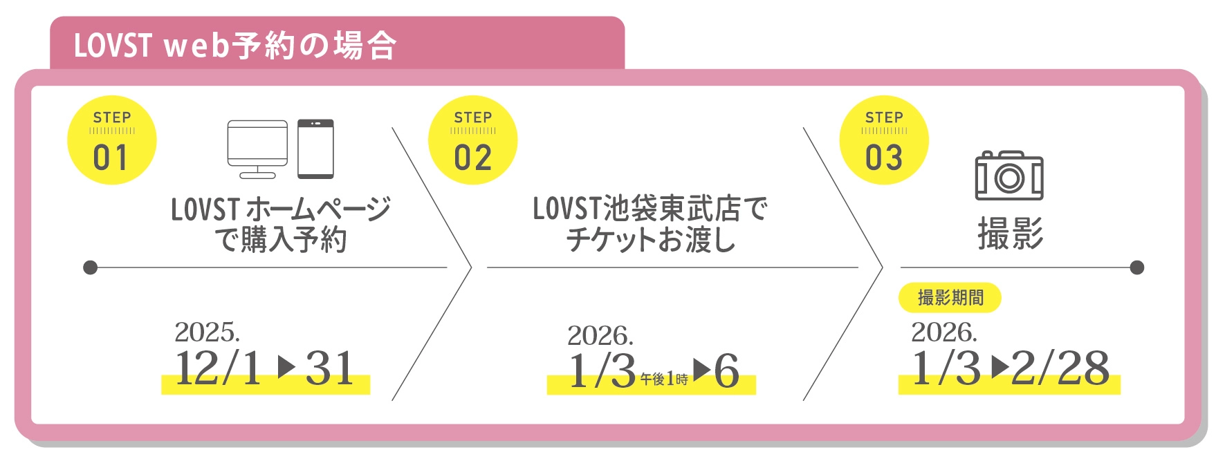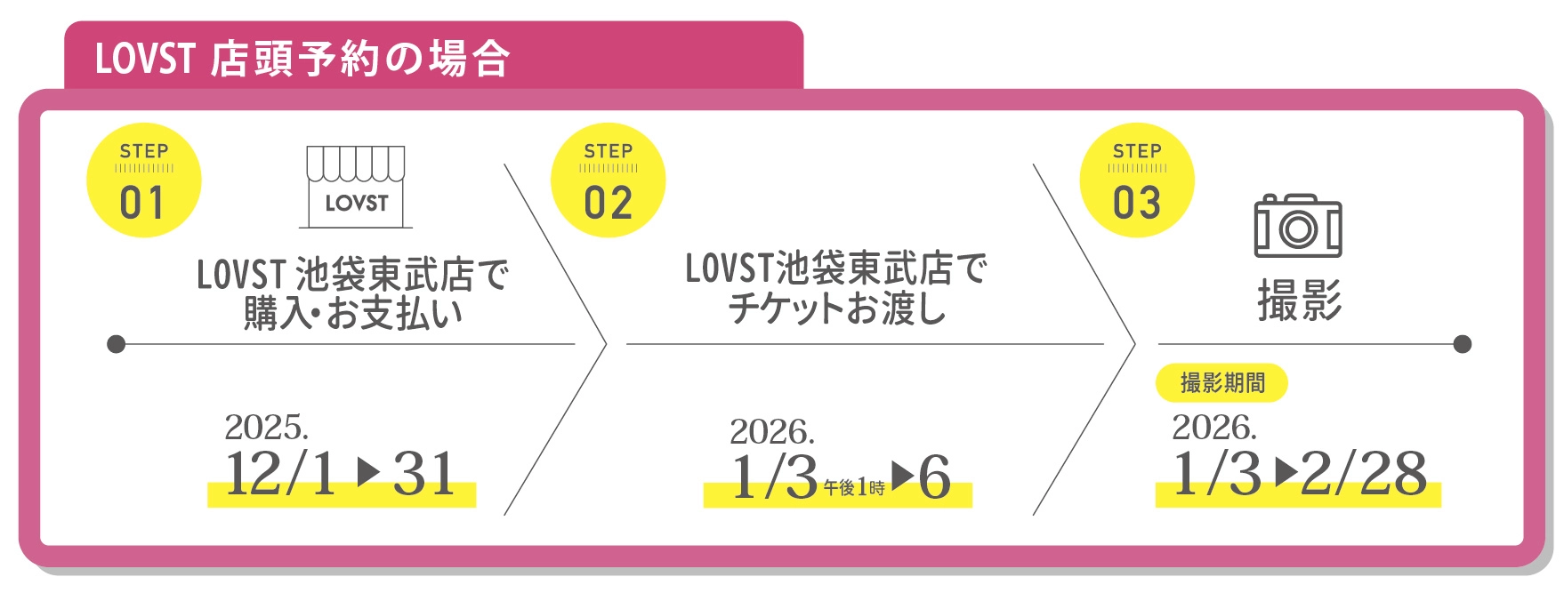 ※チケットお渡し当日までにお支払いをお願いいたします。撮影期間