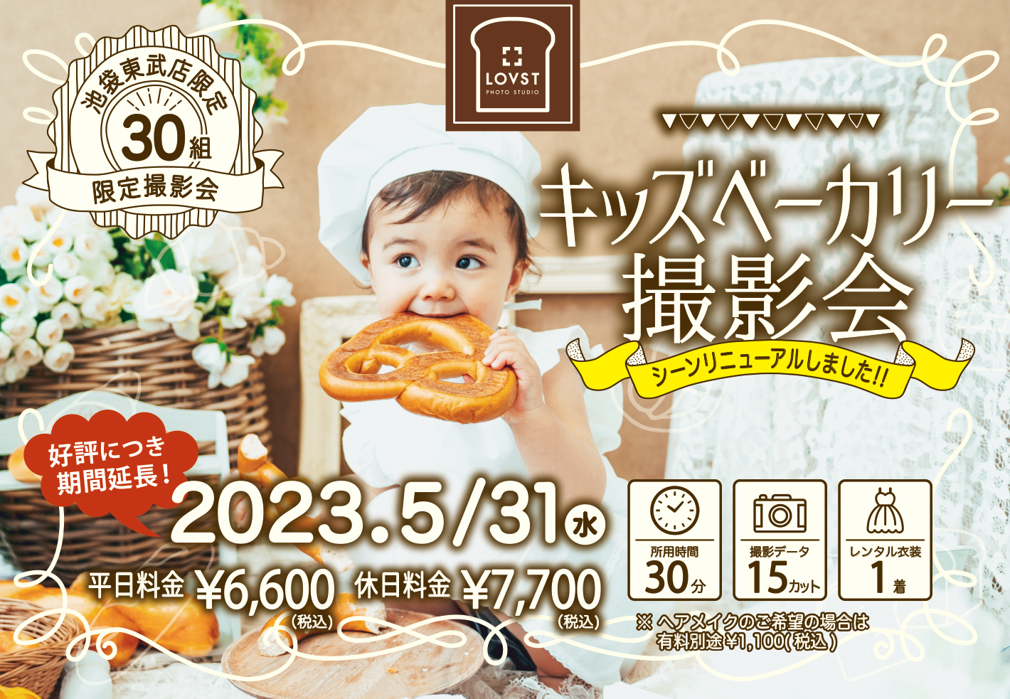 <池袋東武店30組様限定>シーンリニューアル記念!キッズベーカリー撮影会専用のシーンをスタッフよりご案内いたします。
