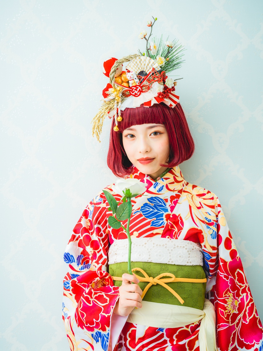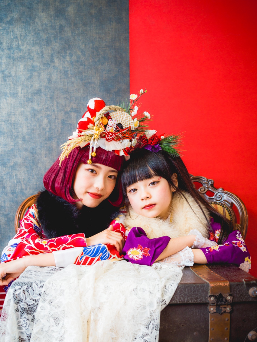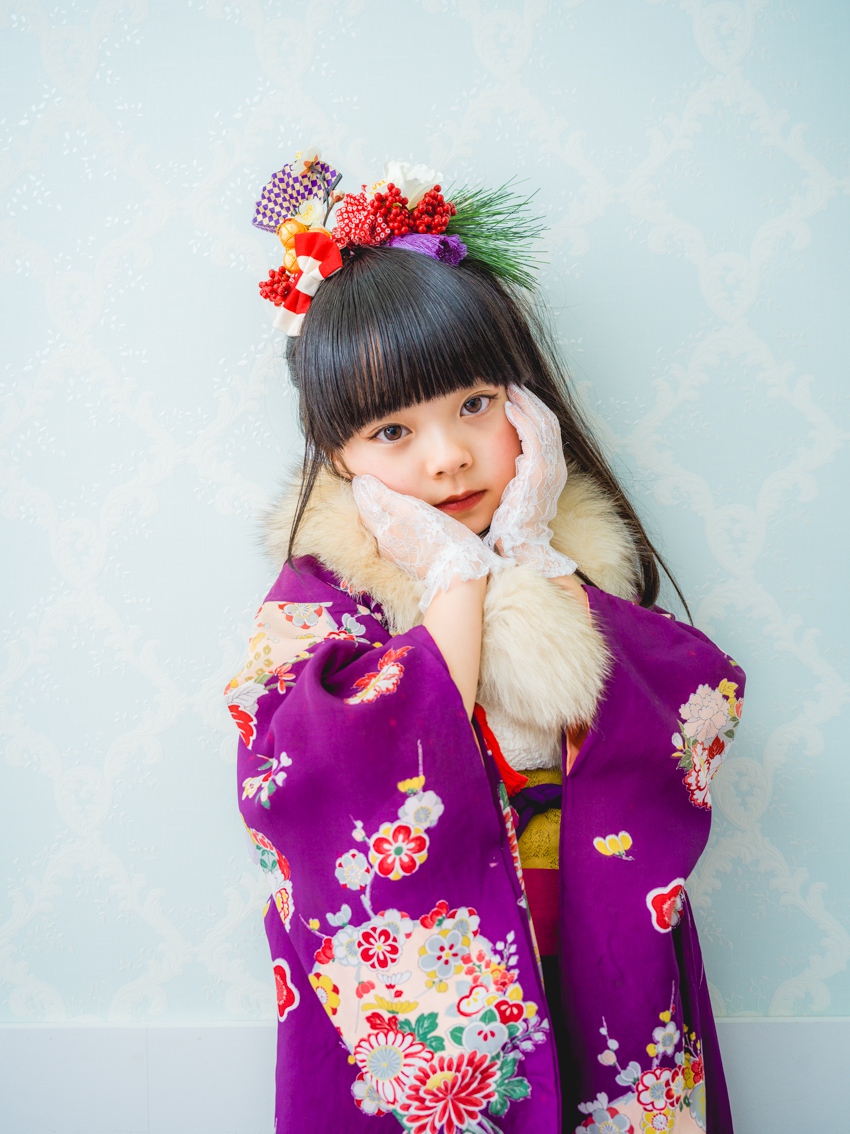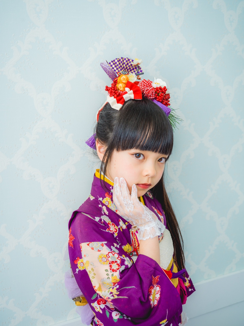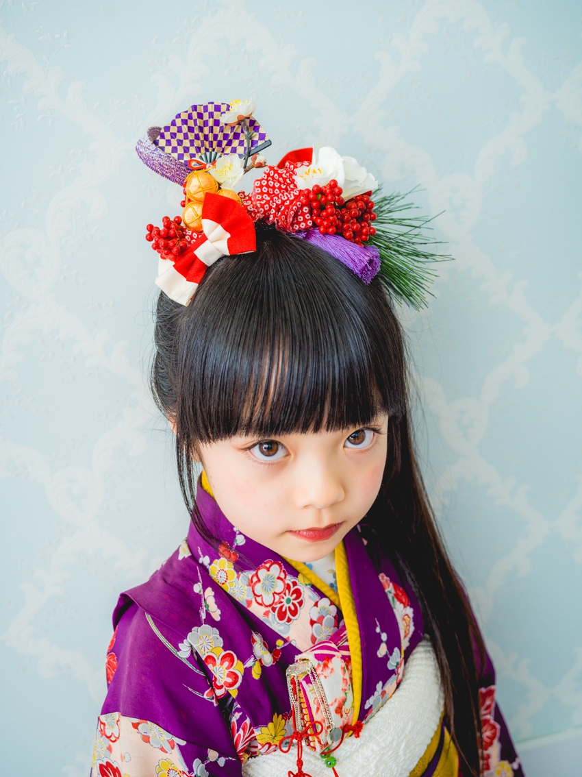 髪飾りには、「松」「万両」「水引」「稲」「鞠」「招き猫」などをあしらい、人と人を繋ぐ縁結びや、祝福、寿ぎ、過酷な環境でも育つ強い心を持って欲しい、などたくさんの想いを込め本撮影会に限り特別に作成しました。笑顔いっぱいの子供写真とは一味違う撮影をお届けします。