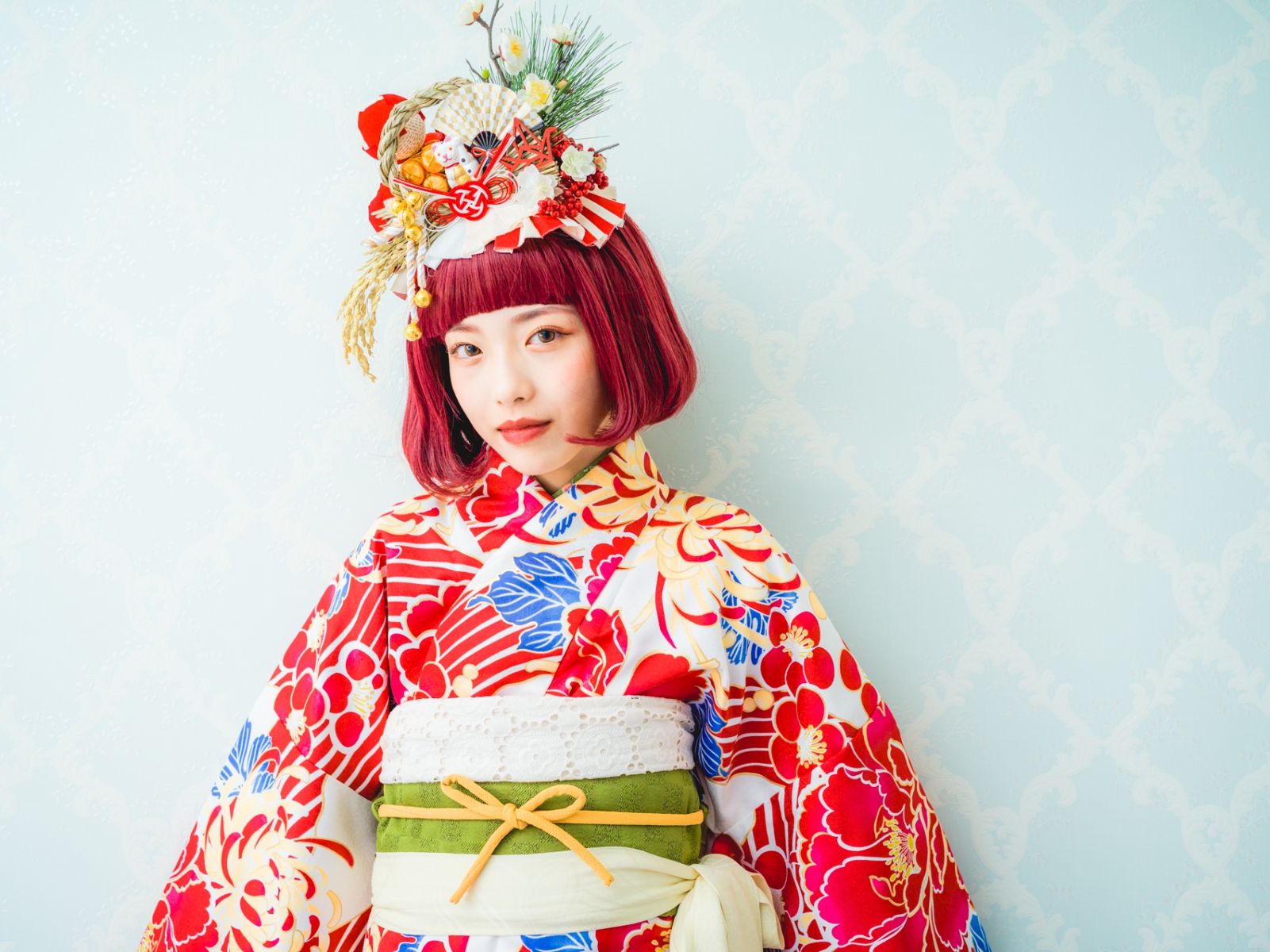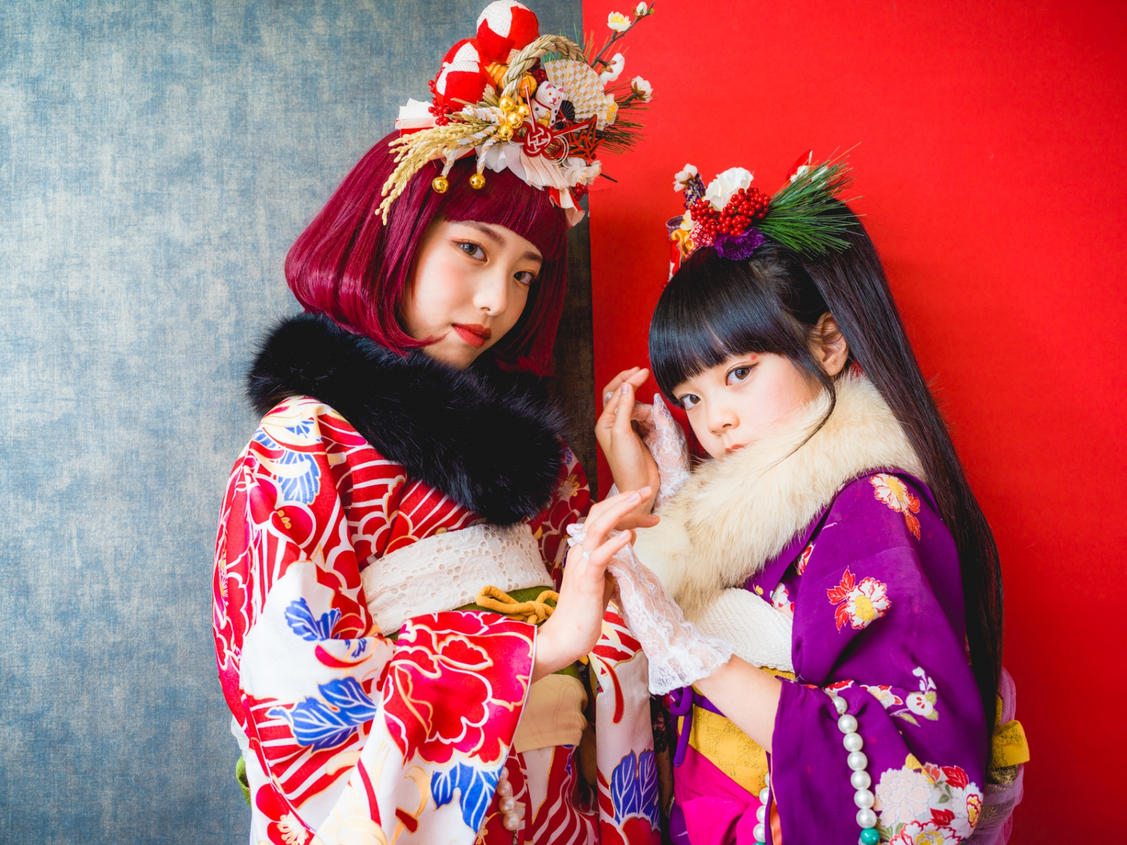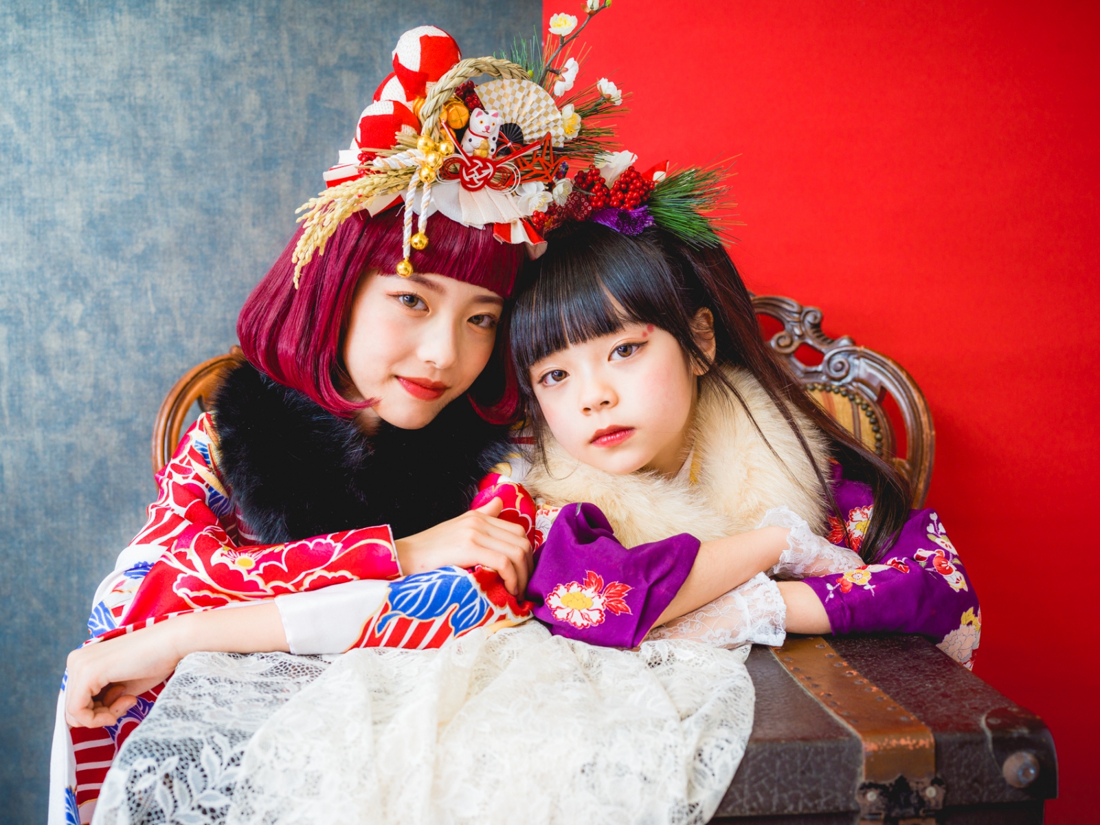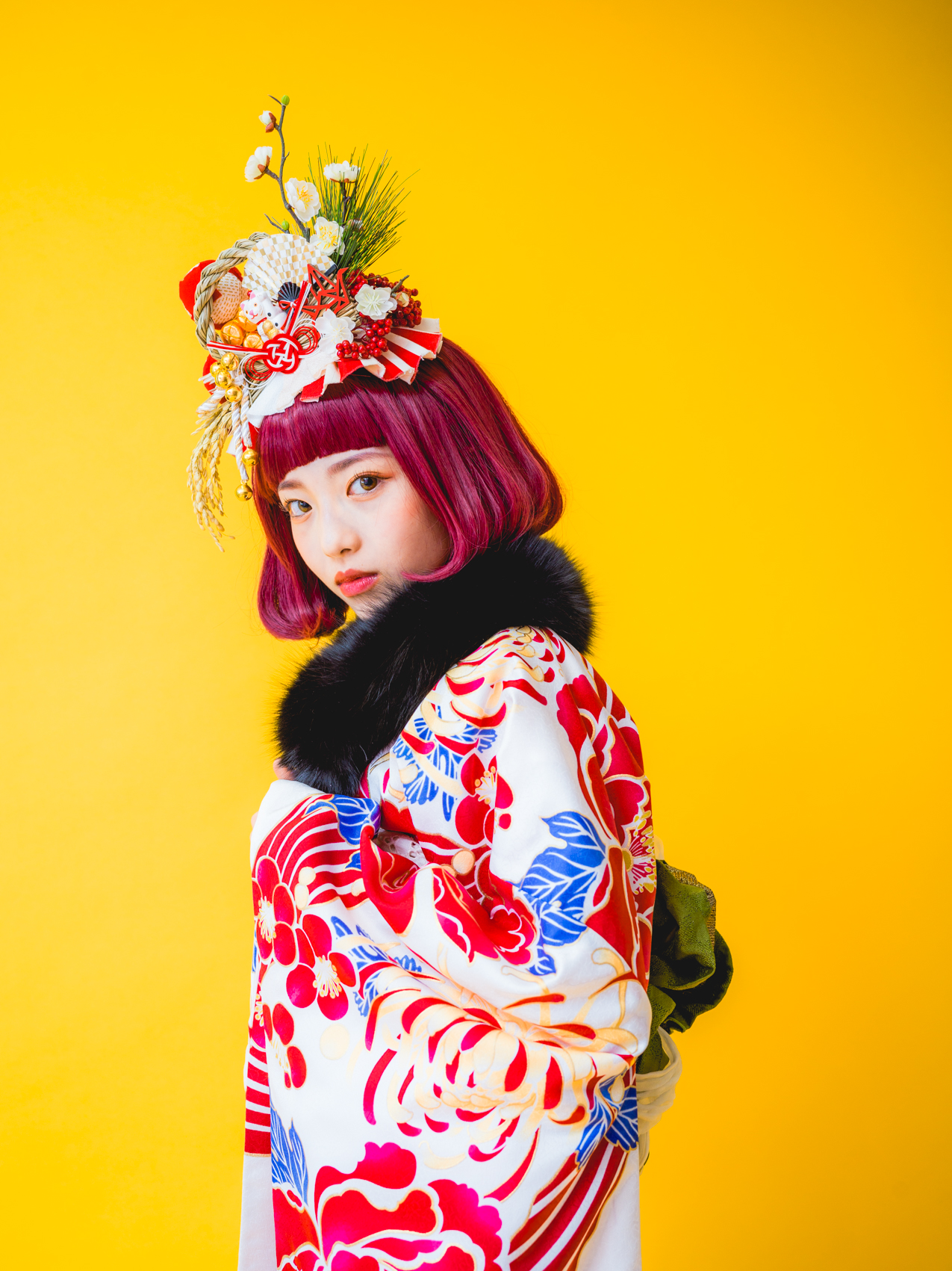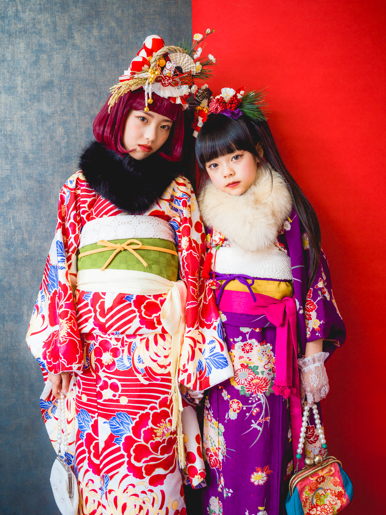 髪飾りには、「松」「万両」「水引」「稲」「鞠」「招き猫」などをあしらい、人と人を繋ぐ縁結びや、祝福、寿ぎ、過酷な環境でも育つ強い心を持って欲しい、などたくさんの想いを込め本撮影会に限り特別に作成しました。笑顔いっぱいの子供写真とは一味違う撮影をお届けします。