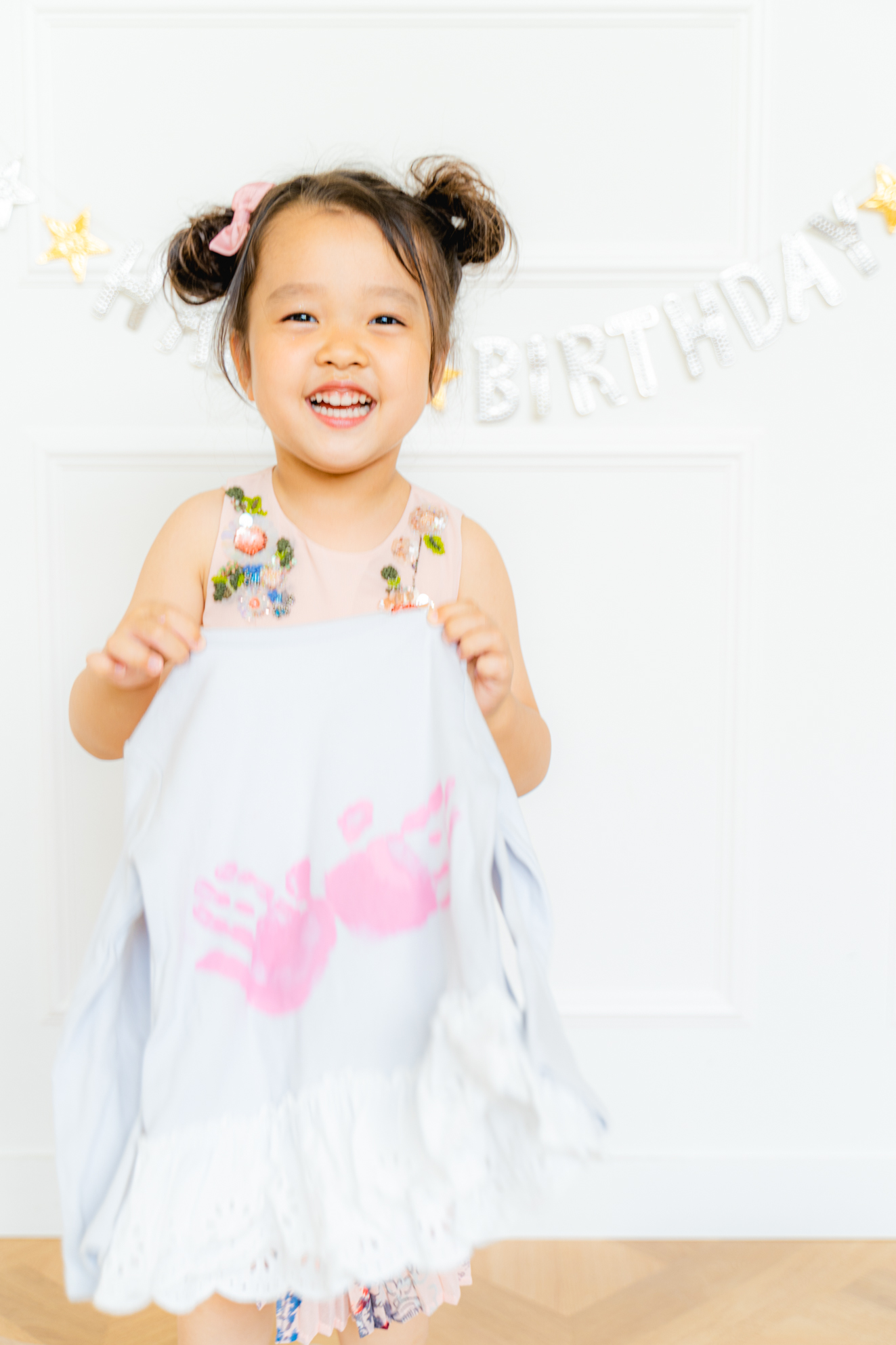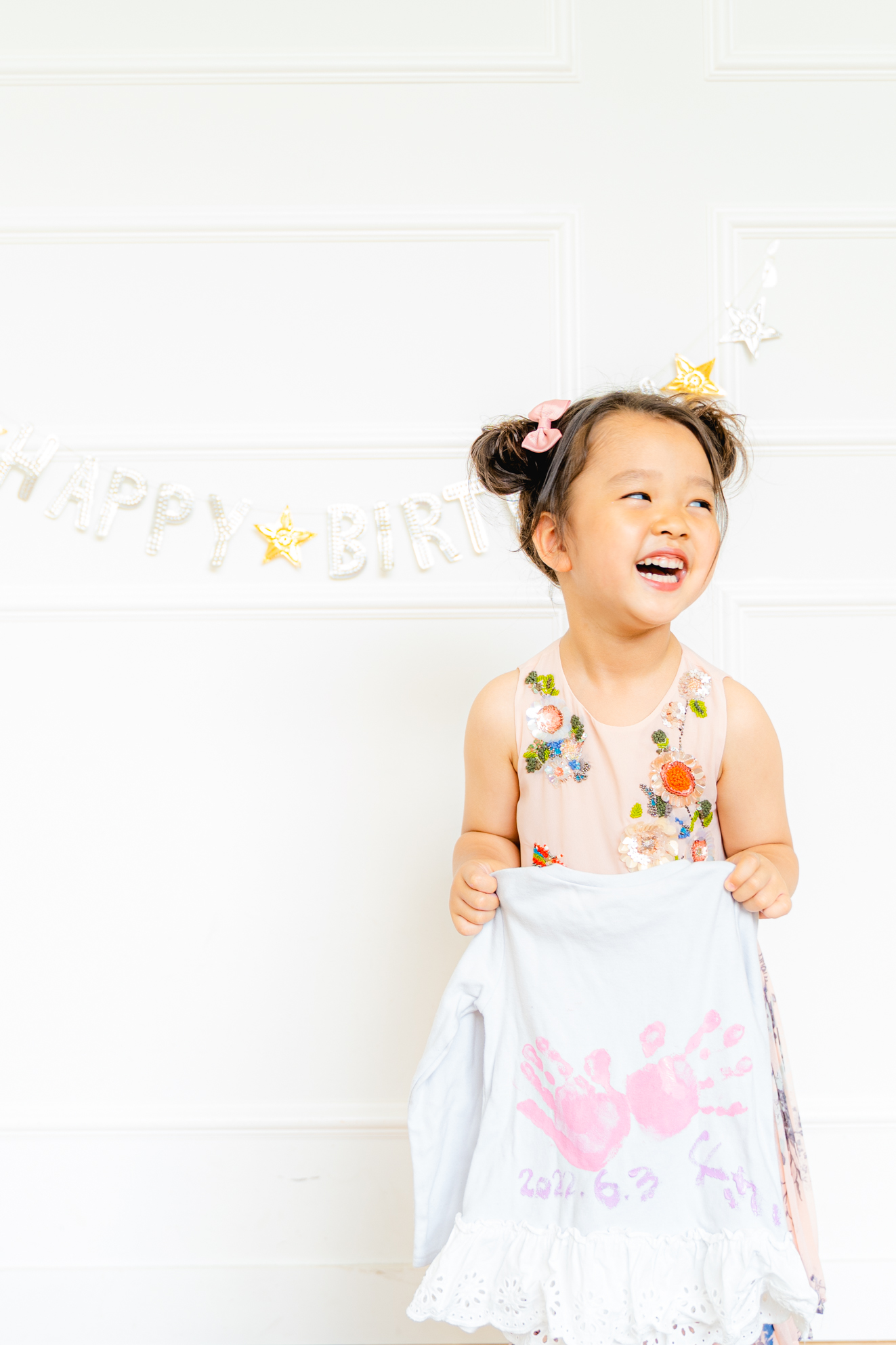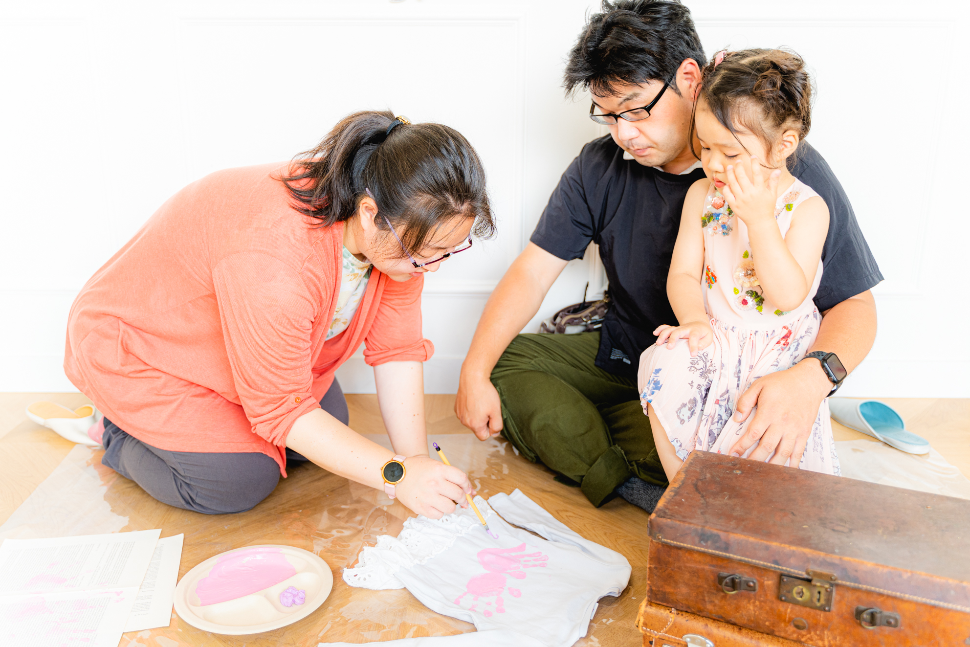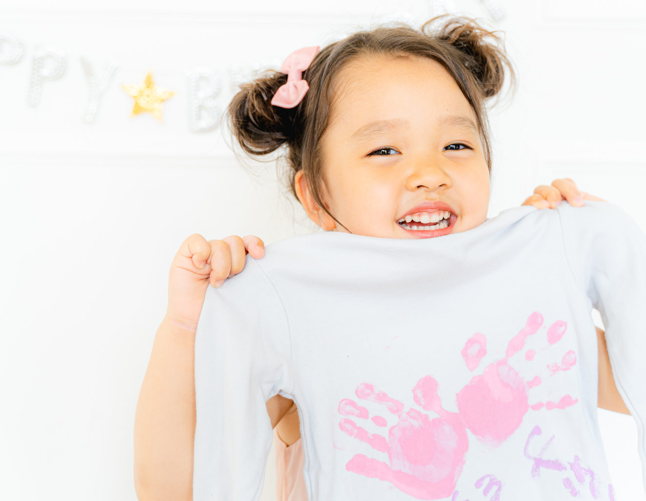 ④手のインクを落としたら、お子様と手形スタンプをしたアイテムと一緒に撮影します。