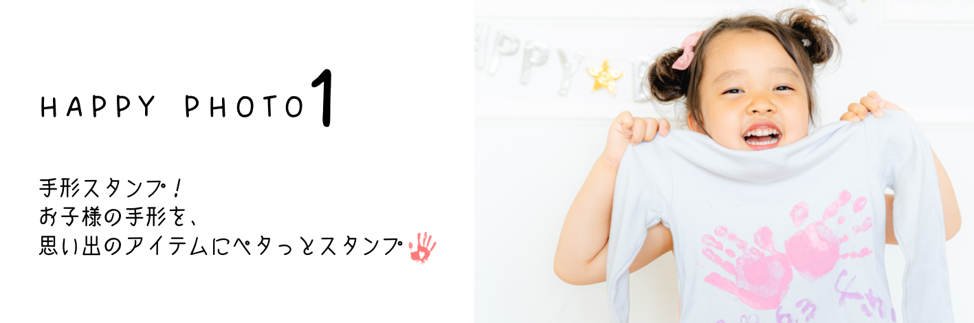 ※手形スタンプを押して、楽しんでいる様子のスナップショットと、手形スタンプを押したアイテムと一緒の記念撮影を数カットプレゼントさせていただきます。
