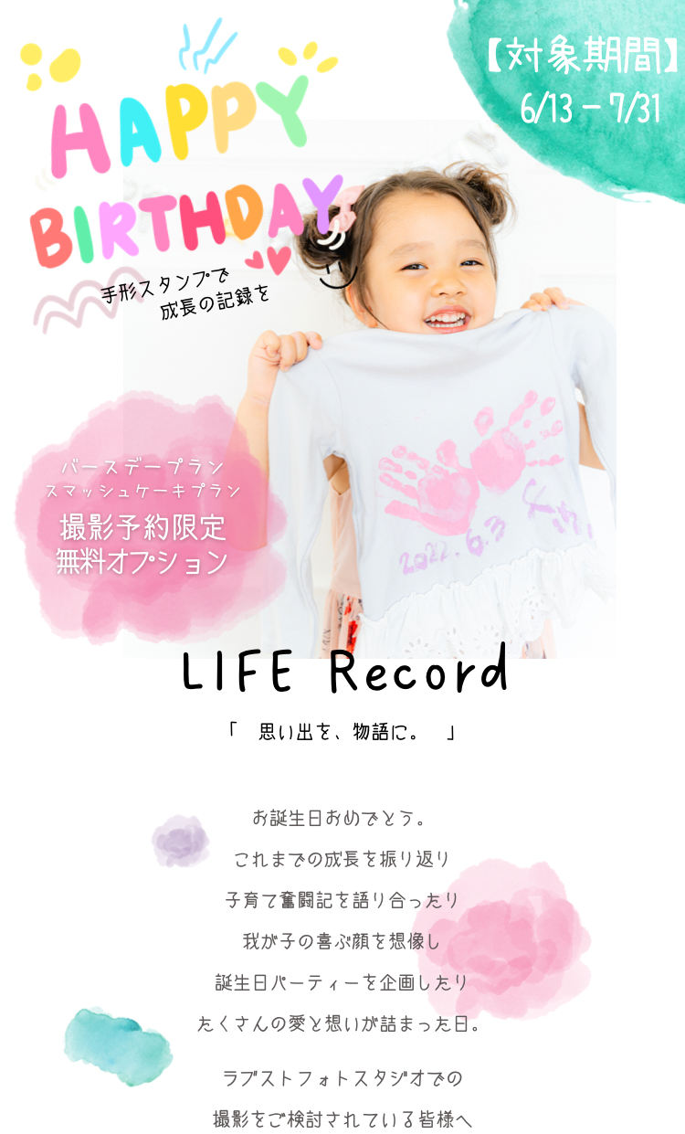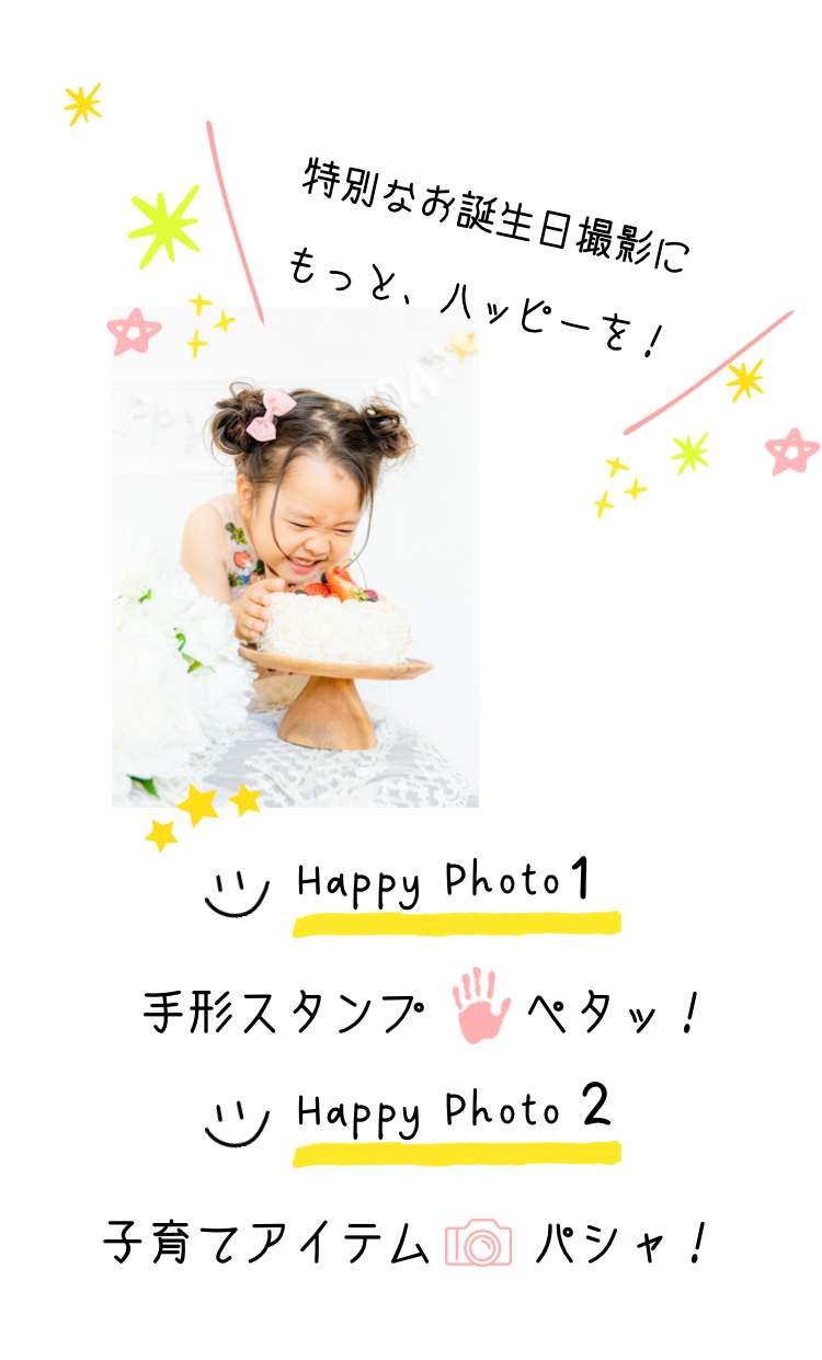 【 対象期間 】 2022年6月13日(月) 〜 7月31日(日) 【 対象プラン 】 ベビーバースデープラン・キッズバースデープラン (ベーシックプラン・スマートプラン・バリュープラン) スマッシュケーキプラン (スマッシュケーキライトプランを除く)