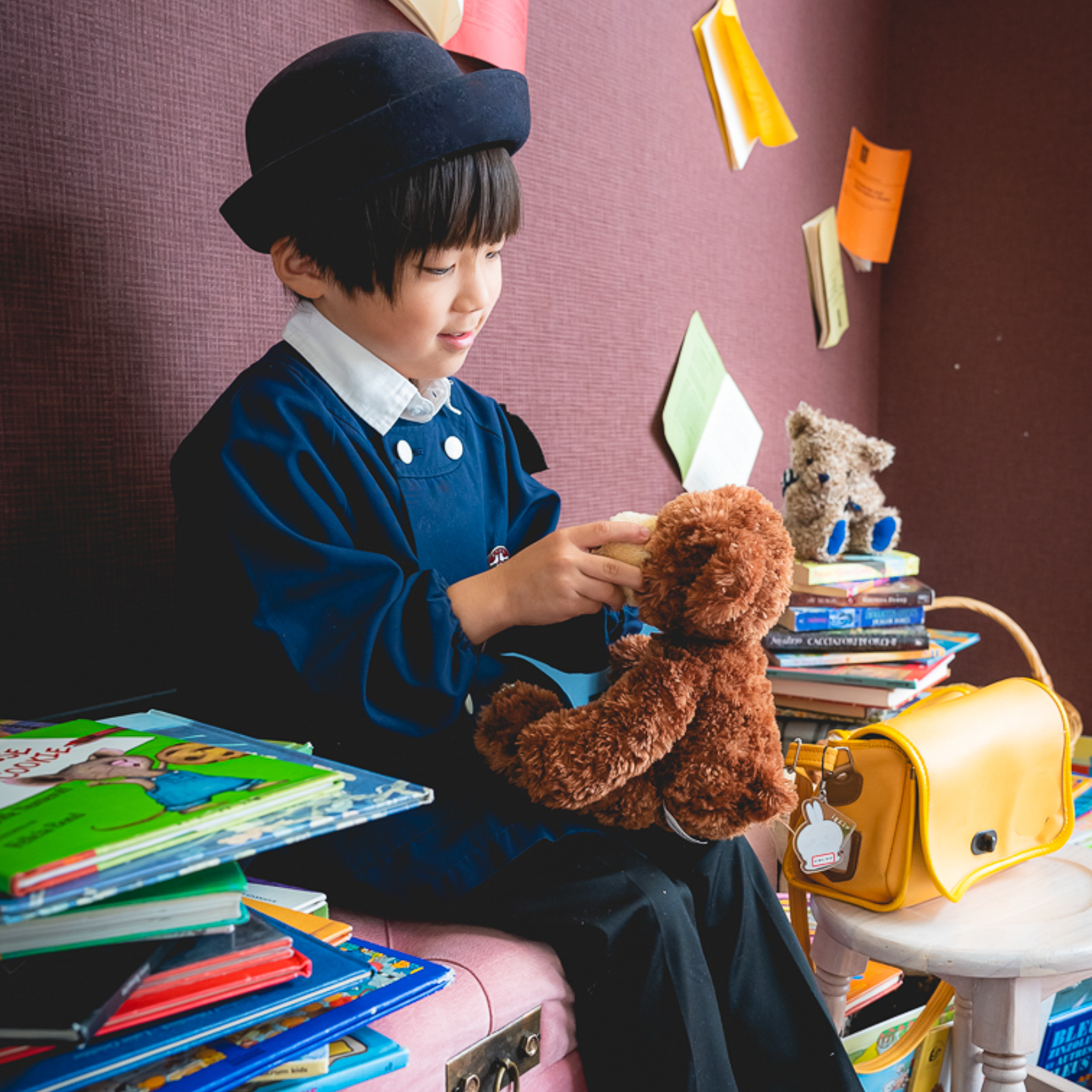 制服・ランドセル・帽子、教科書・筆箱・体操着・卒園証書などのアイテムをお持ち込みいただくと、写真にオリジナリティが出ておすすめです。