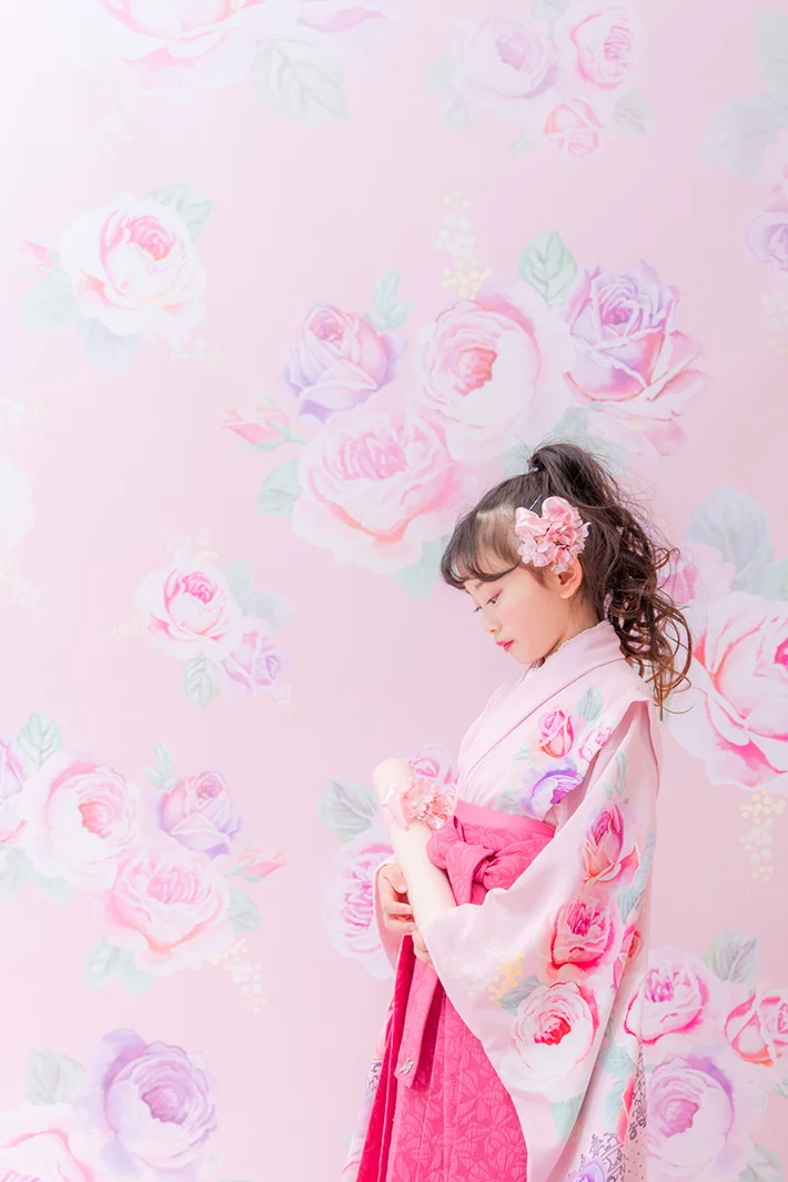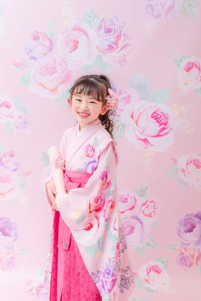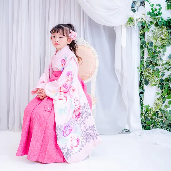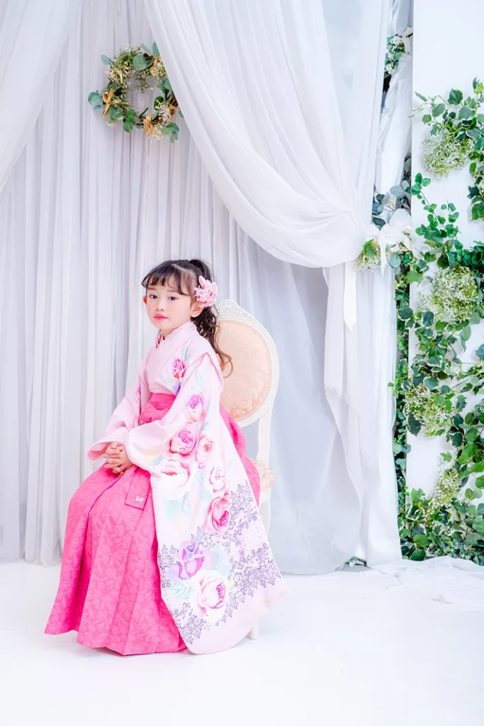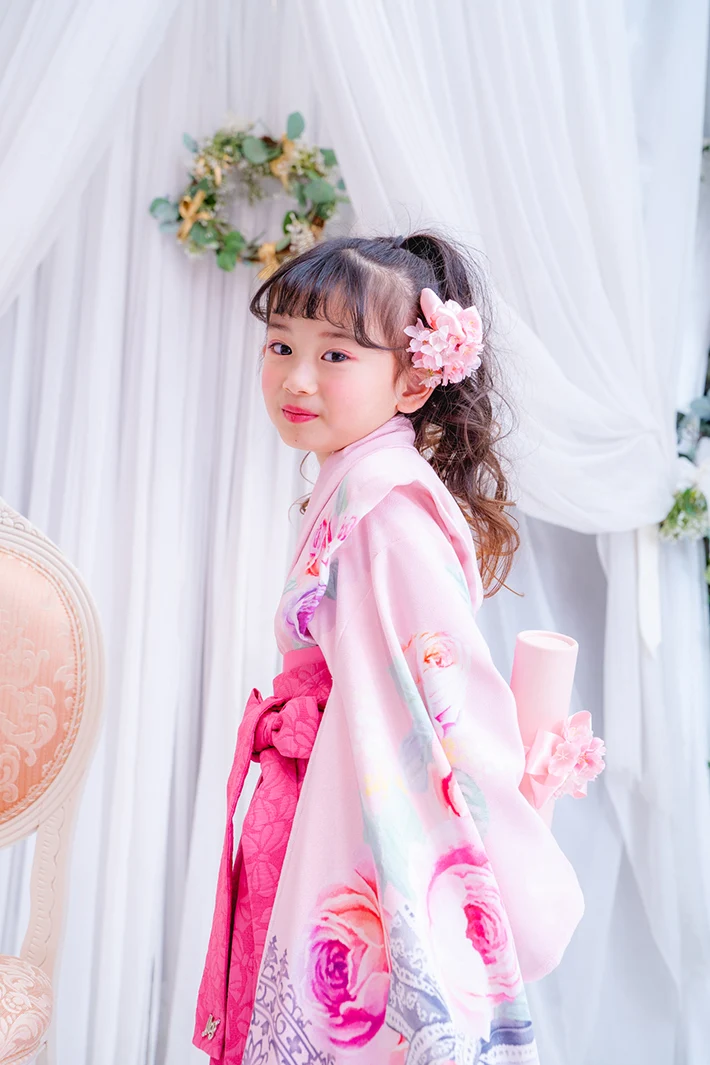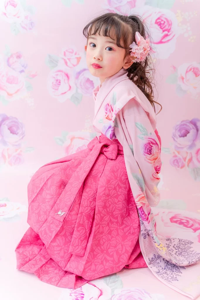 チェリーピンクの袴は唯一無二の存在感。