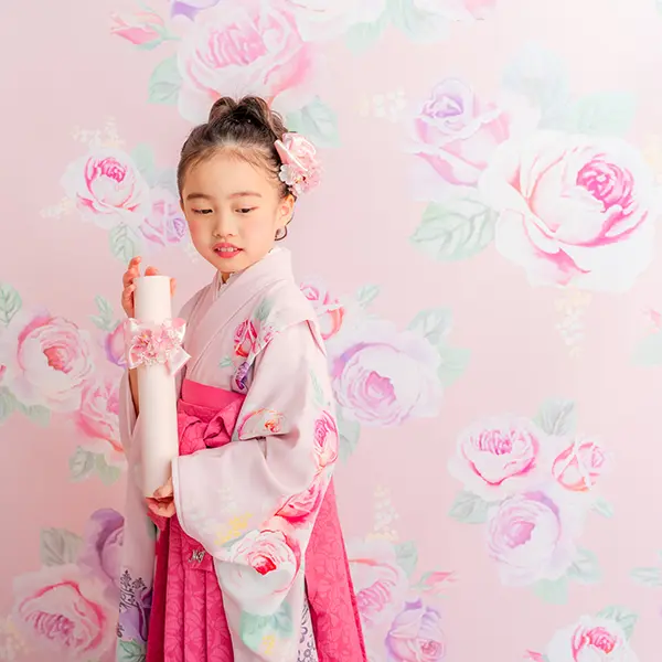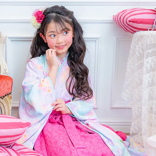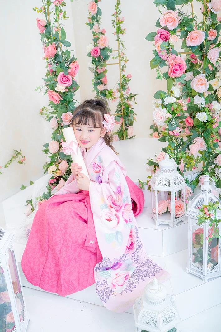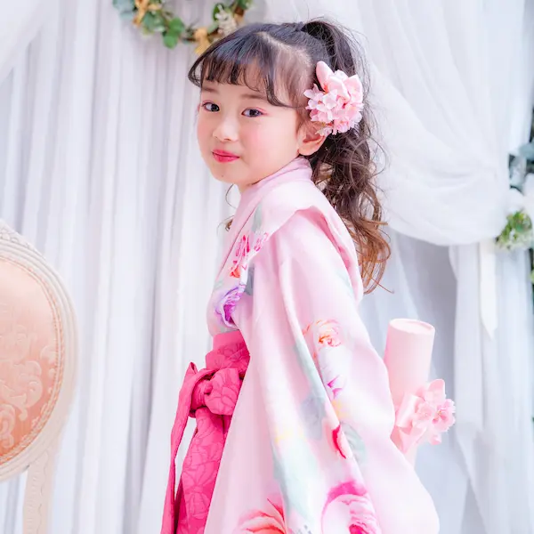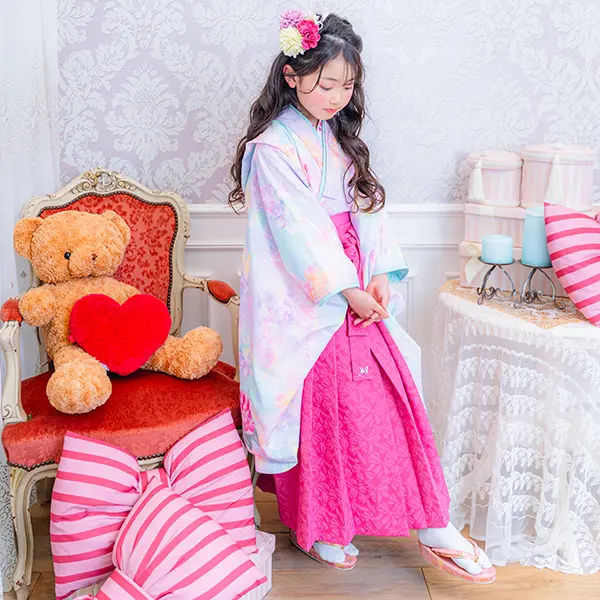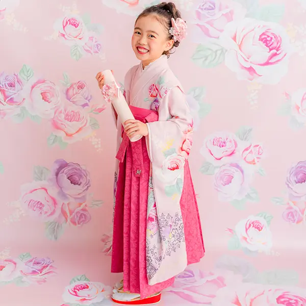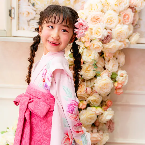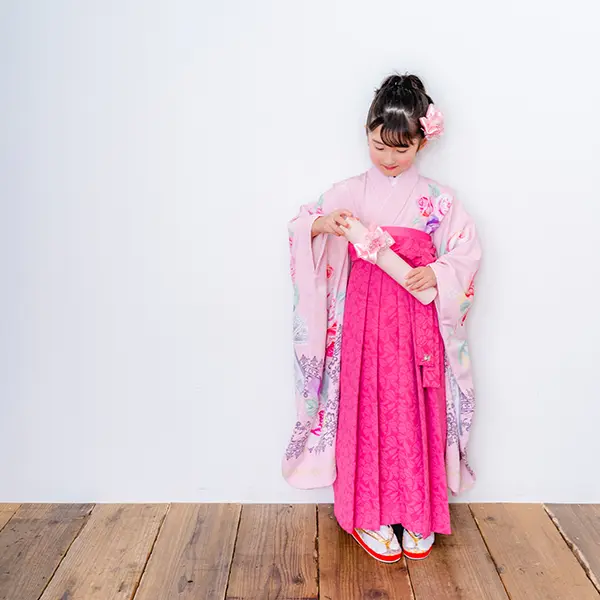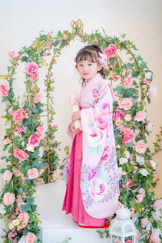 チェリーピンクの袴は唯一無二の存在感。