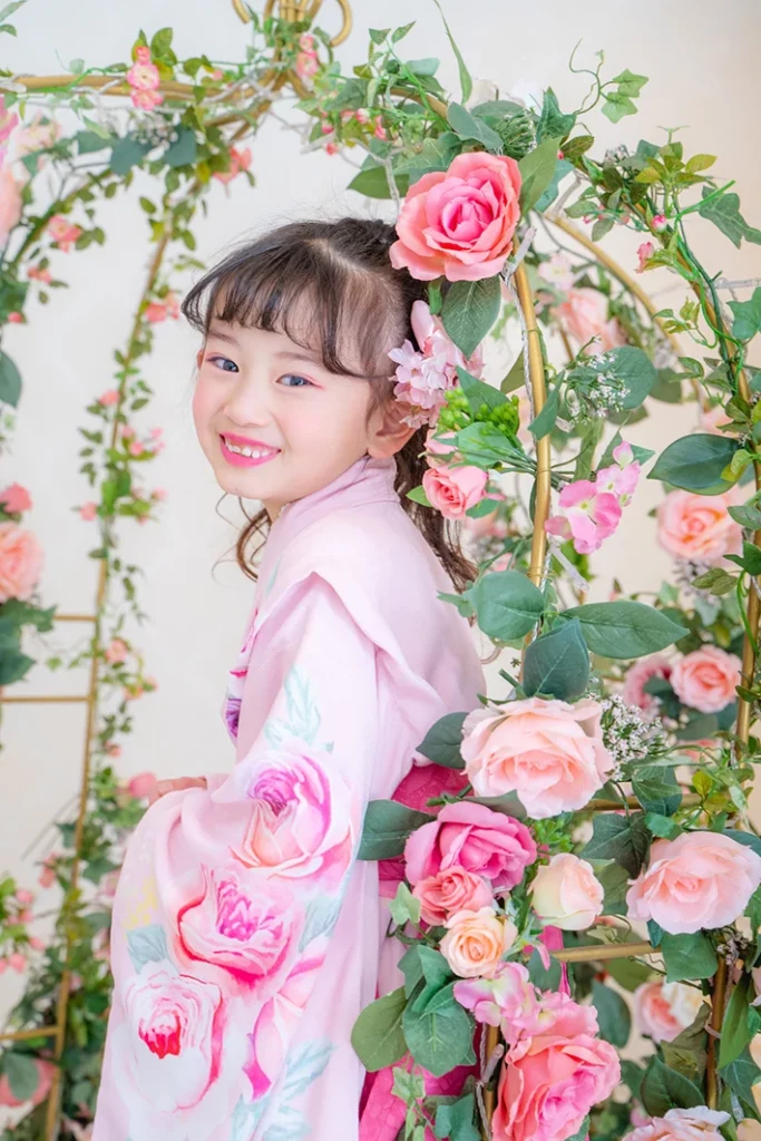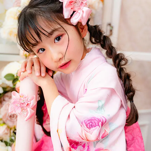 63003 メゾ ピアノ着物(7歳) レトロパールロゼ