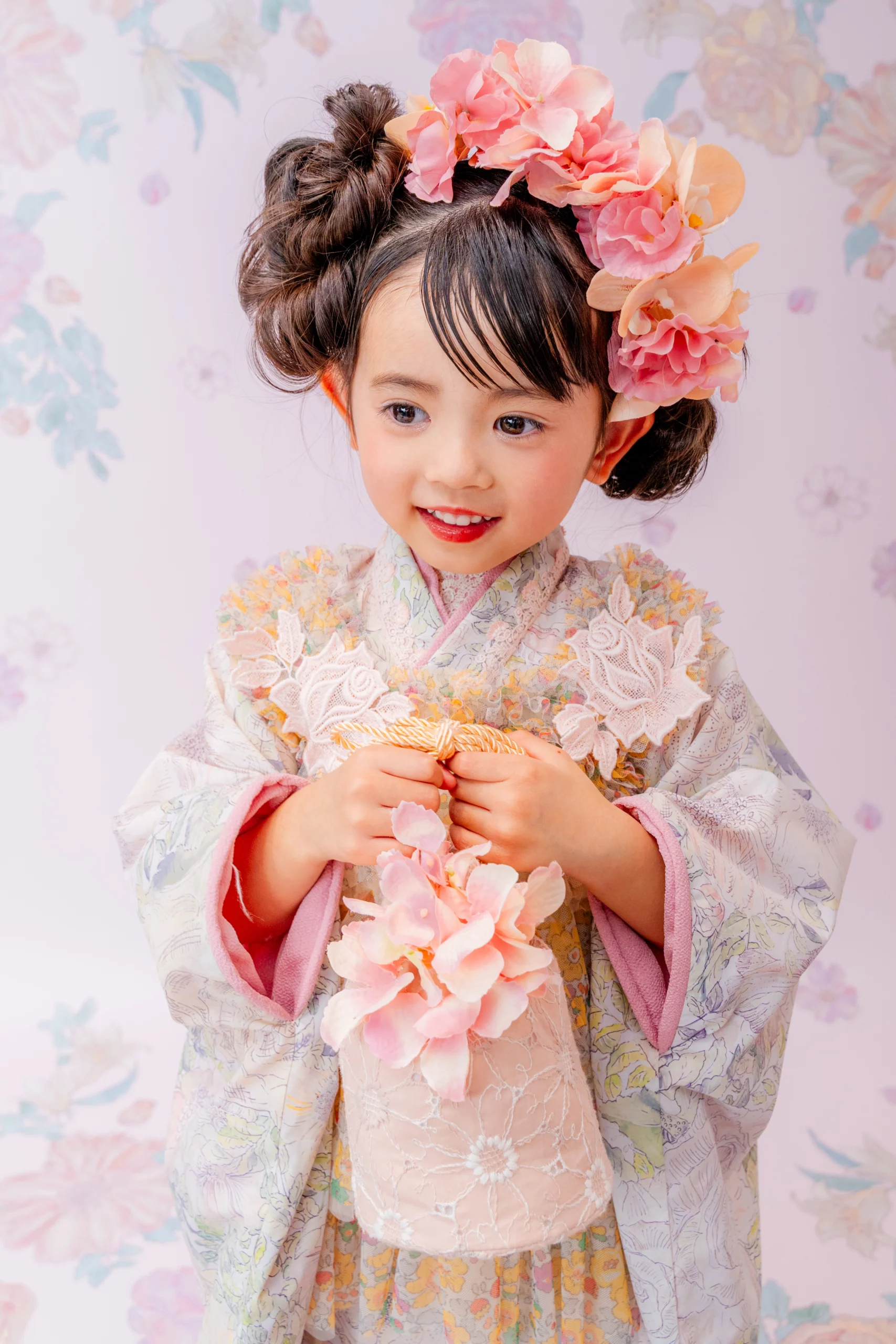 後ろにリボンを施し3歳のならではの愛らしい雰囲気に仕上げました。