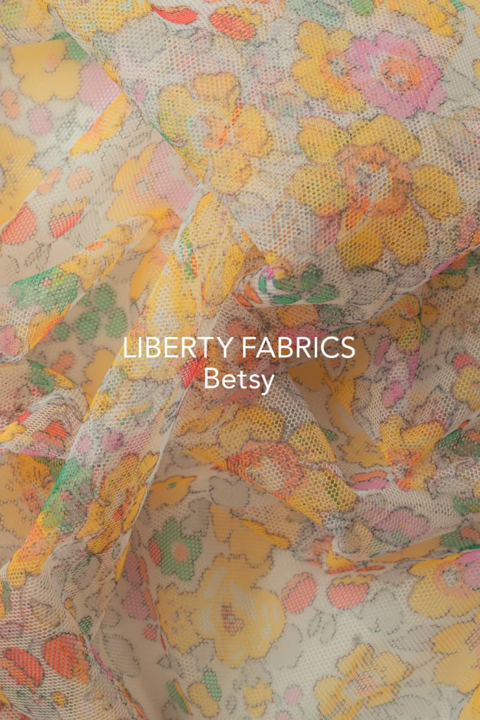 オーガニックコットンと伝統的なリバティファブリックを用いた、華やかなスタイルが印象的。