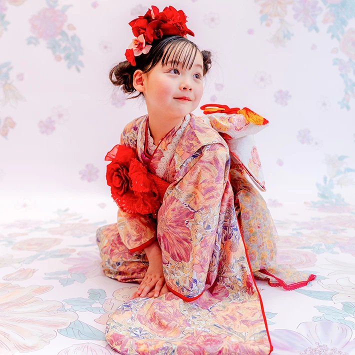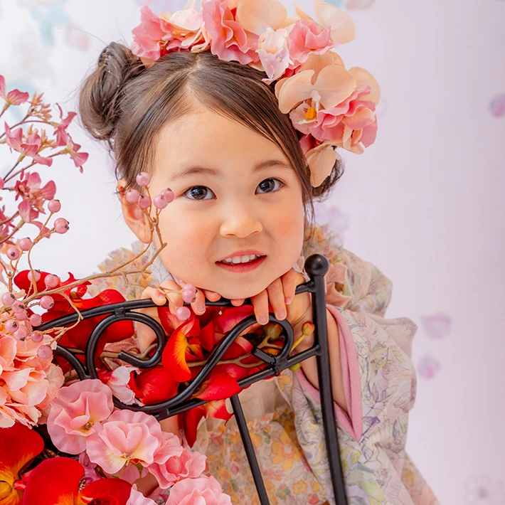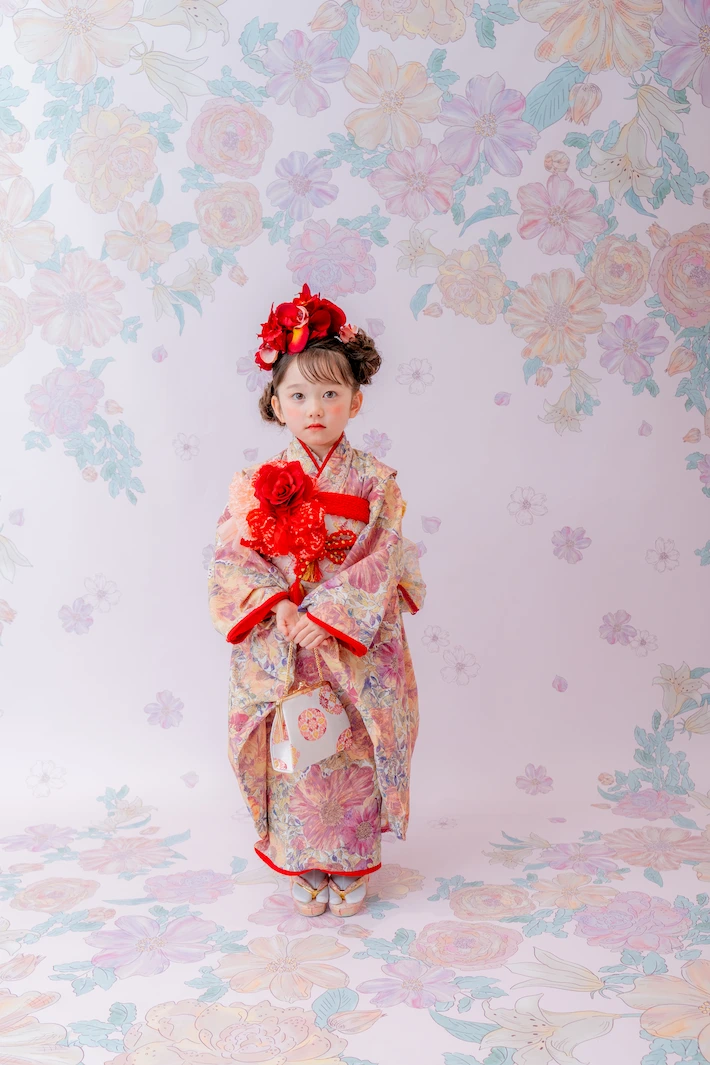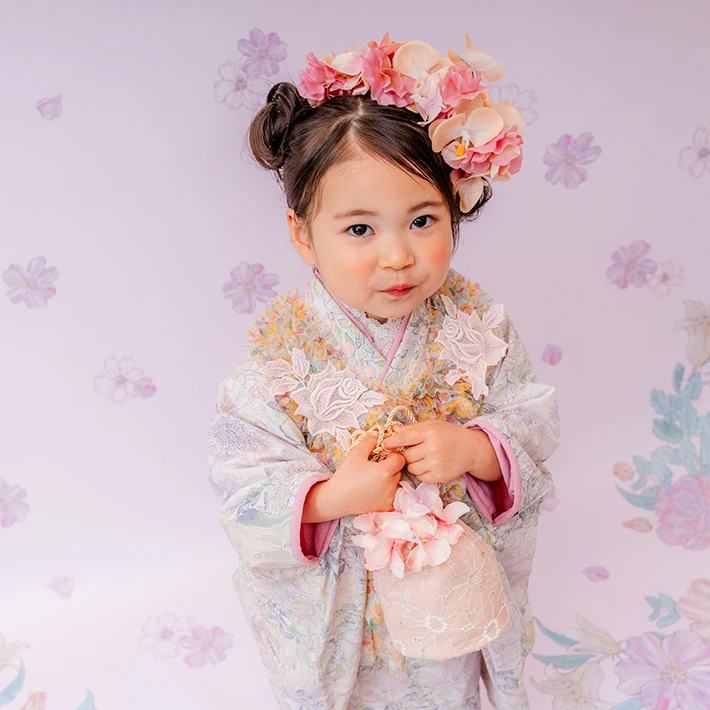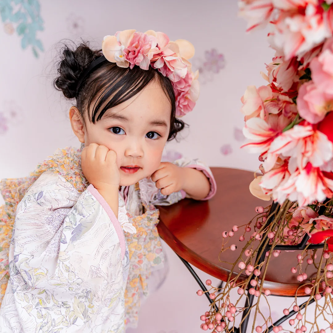 七五三撮影は、満3歳頃からの撮影をオススメしております。年齢に限らず、お着替えやヘアセットをすることを受け入れてくれるようになってからの撮影がオススメです。また、3歳用のお着物のサイズは95㎝〜105㎝が目安となりますので、撮影時期についてご検討ください。