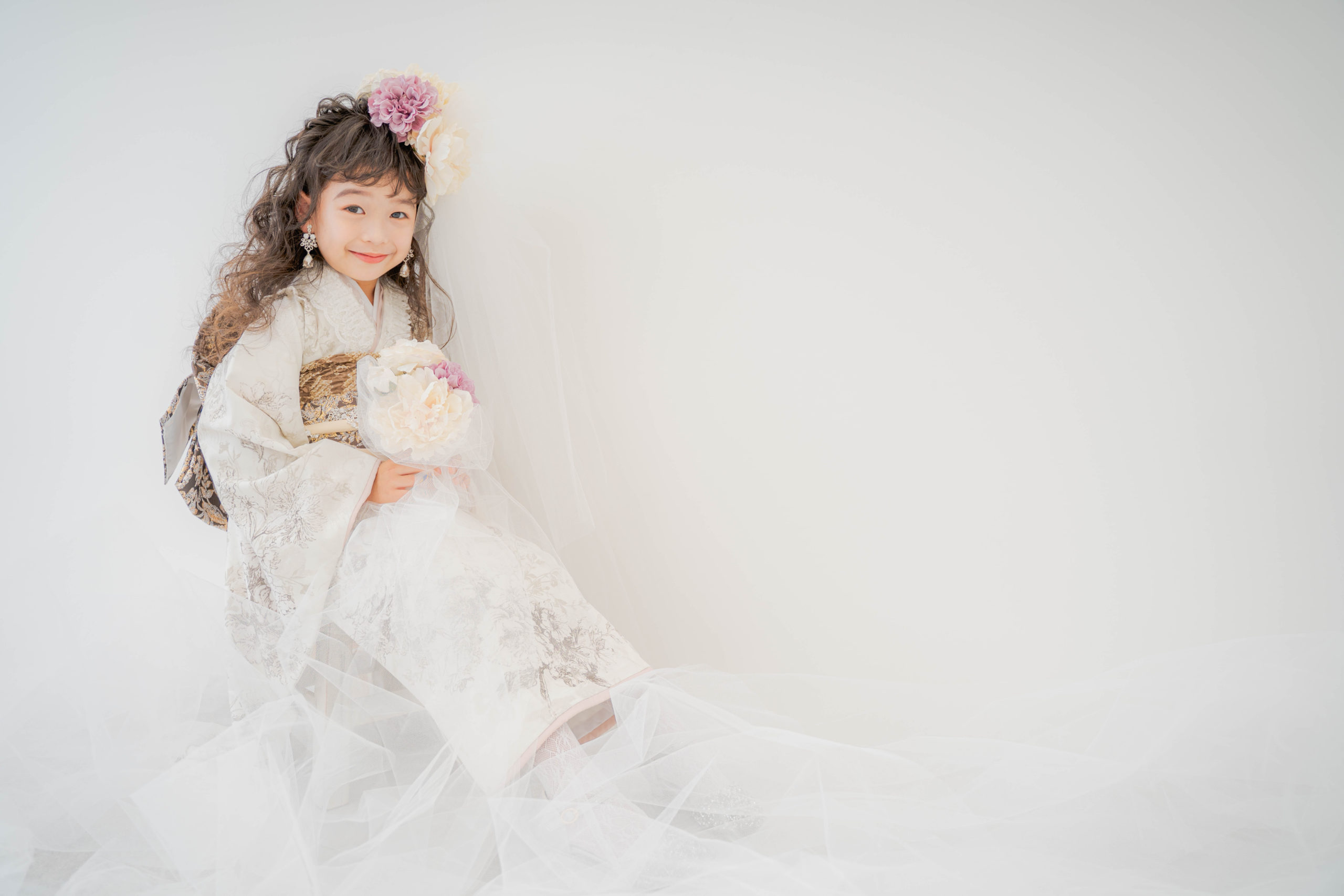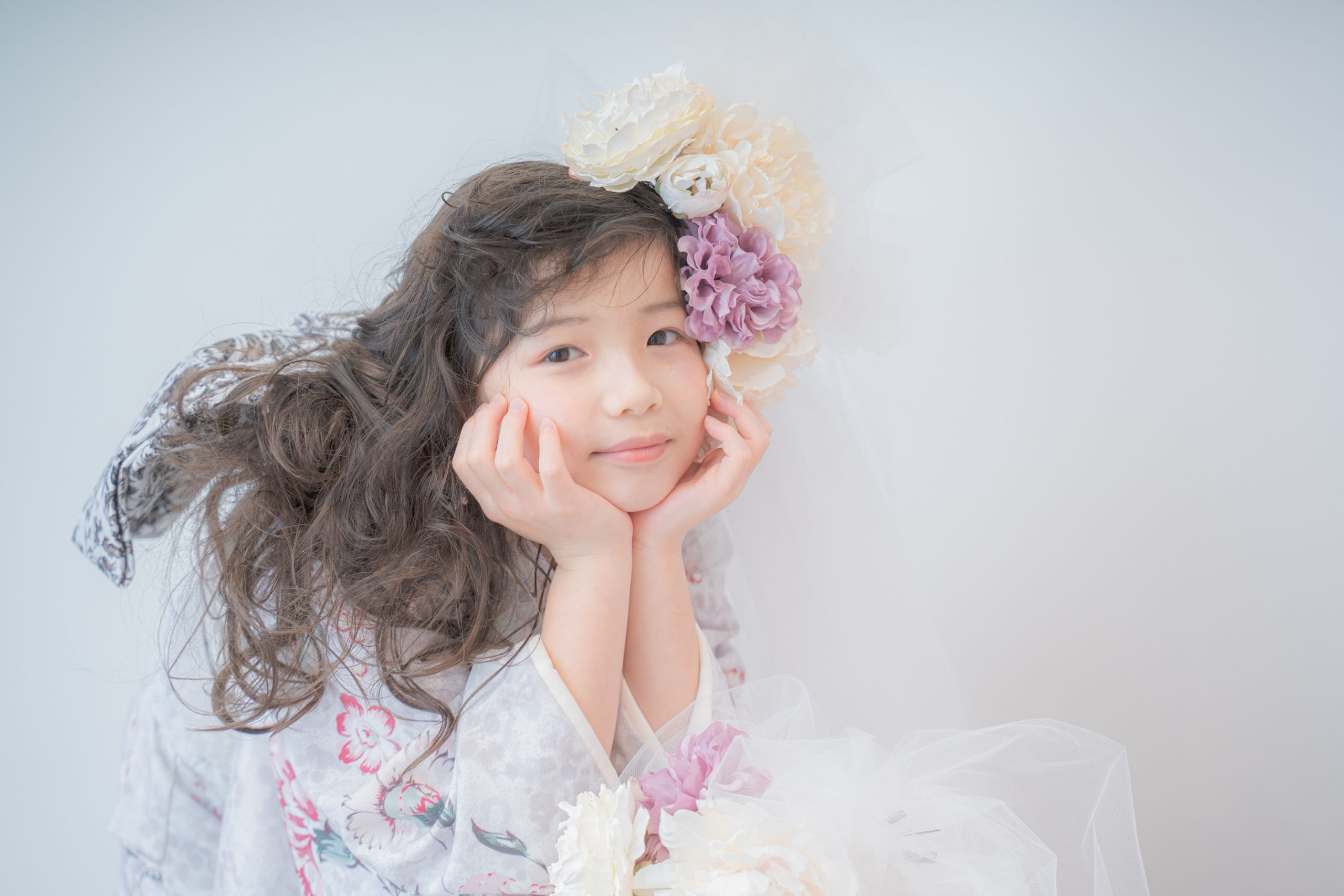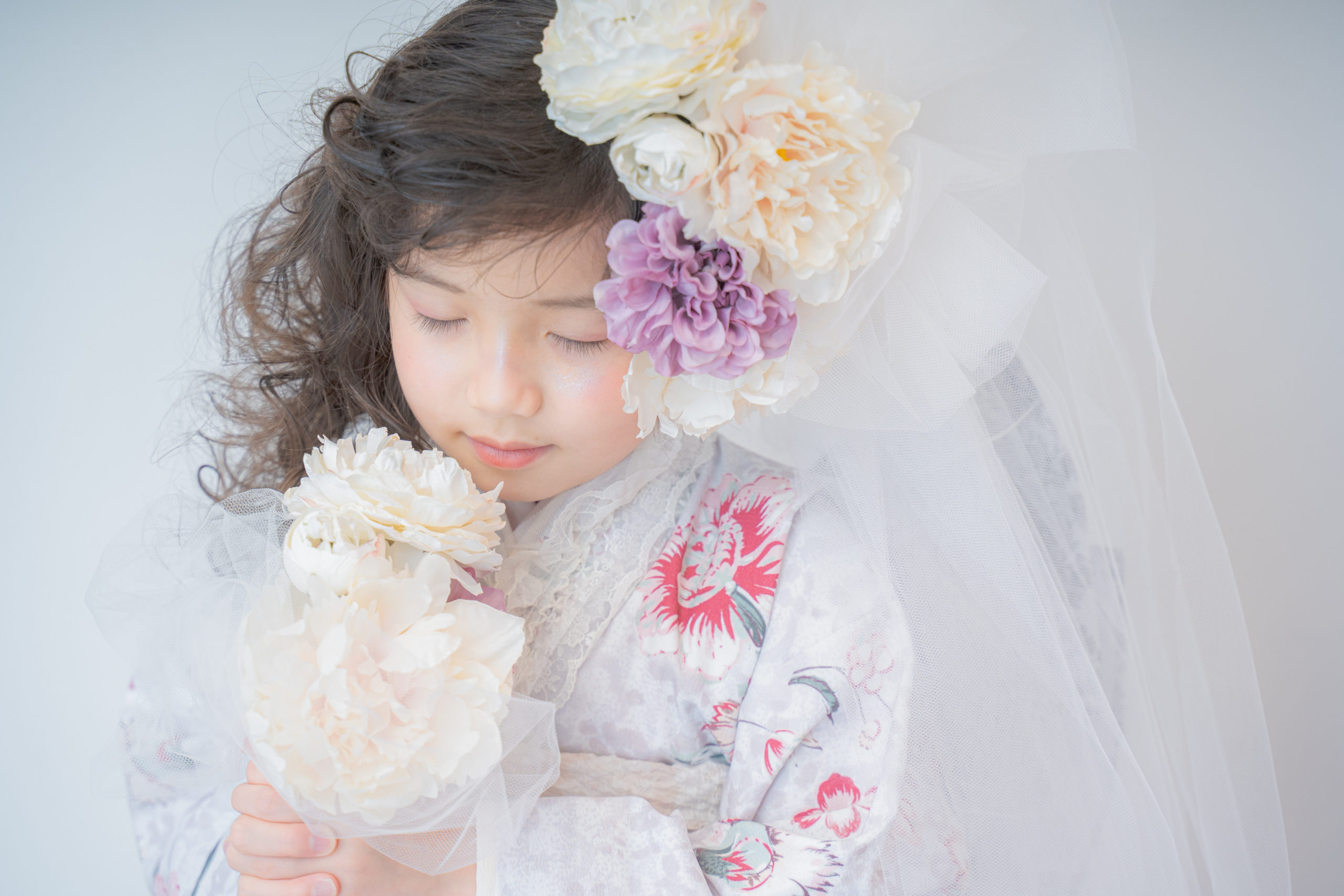 「美わしの七五三”花束”」フラワーベールや煌めくアクセサリーで華やかさと特別感を演出