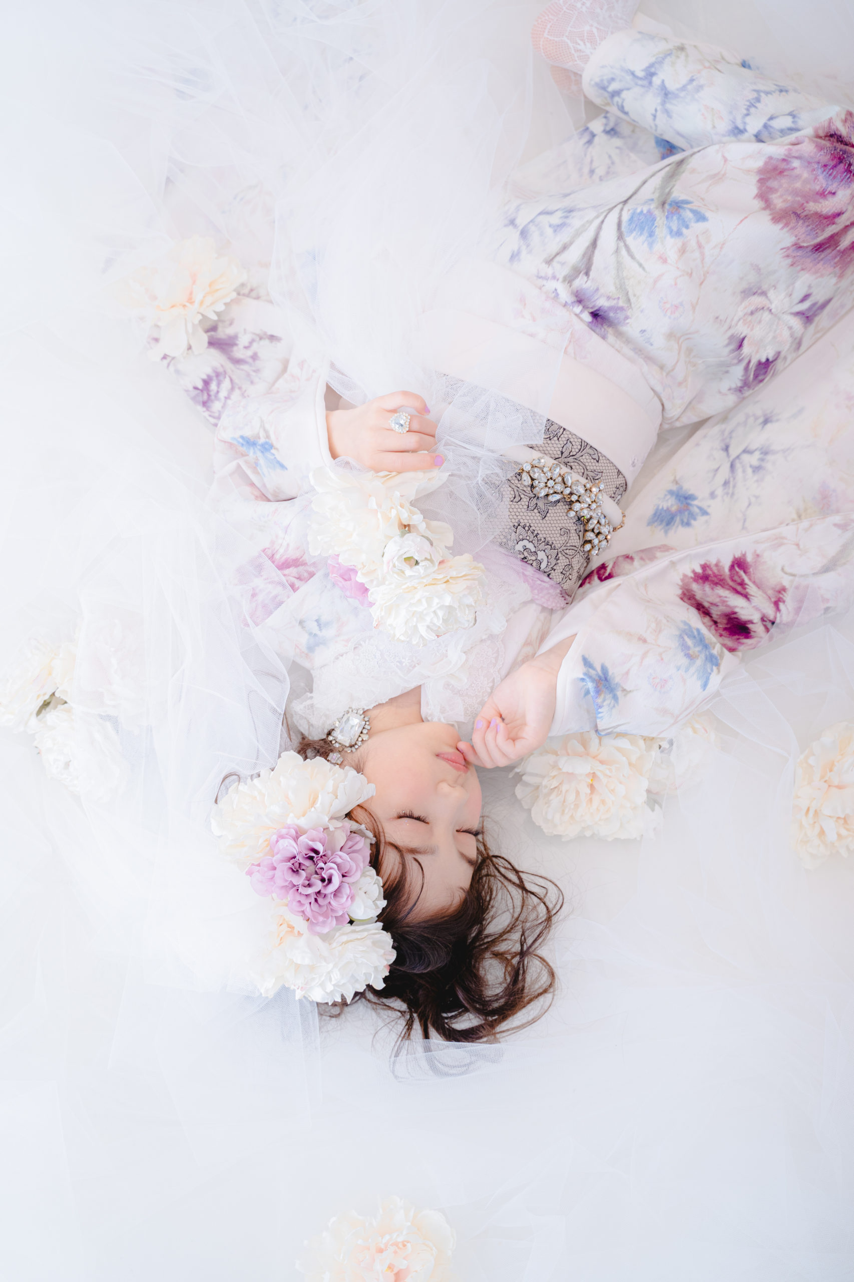 チュール・レース・花をふんだんにあしらい