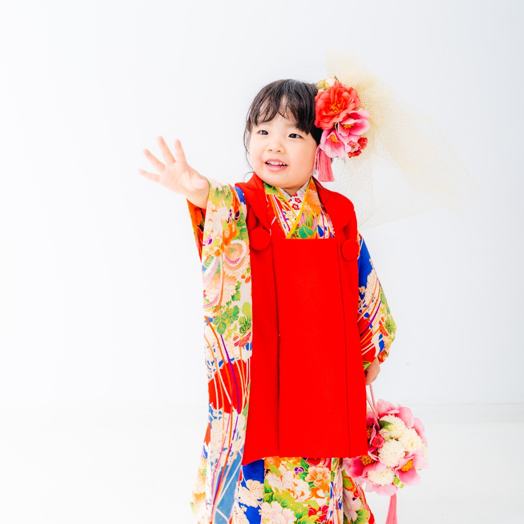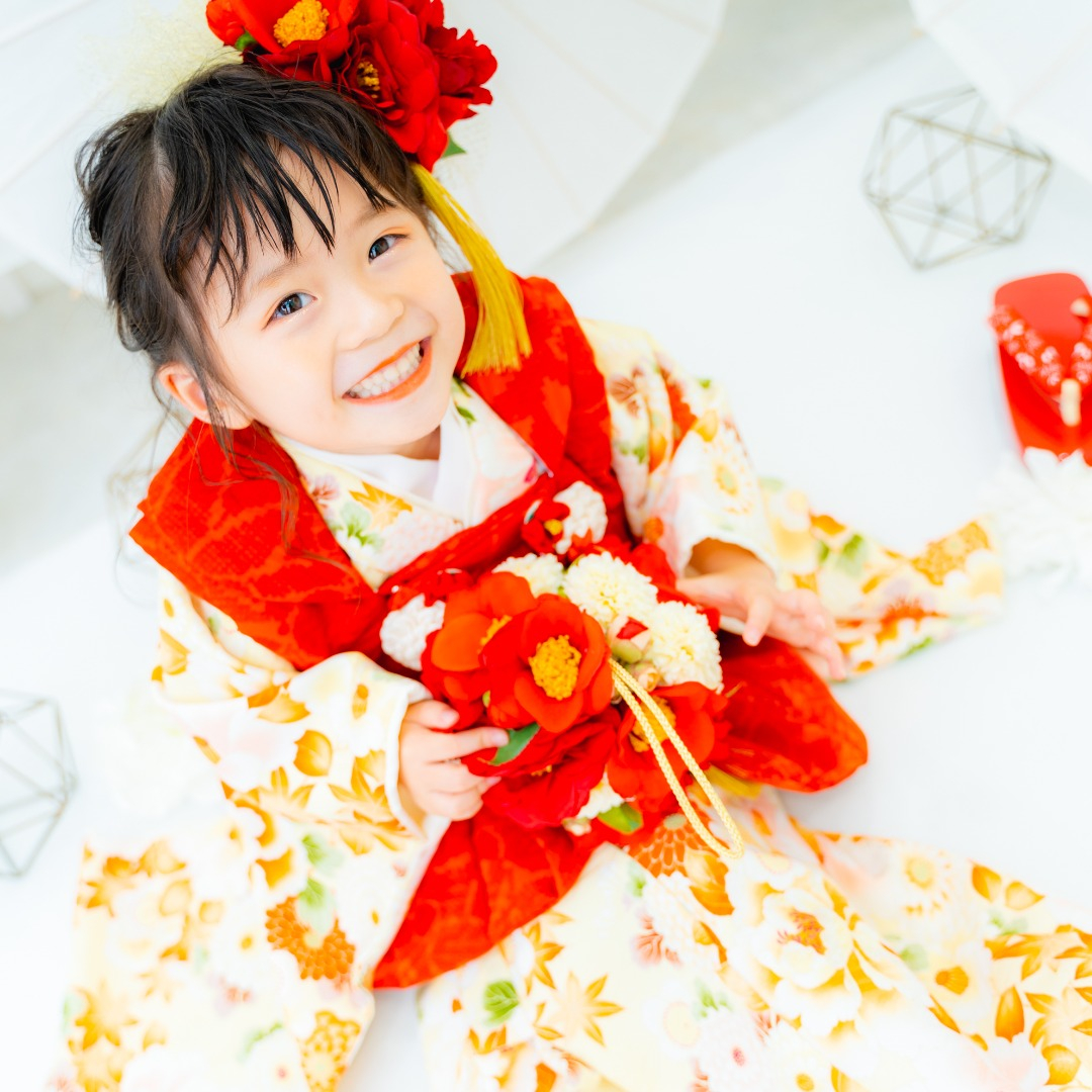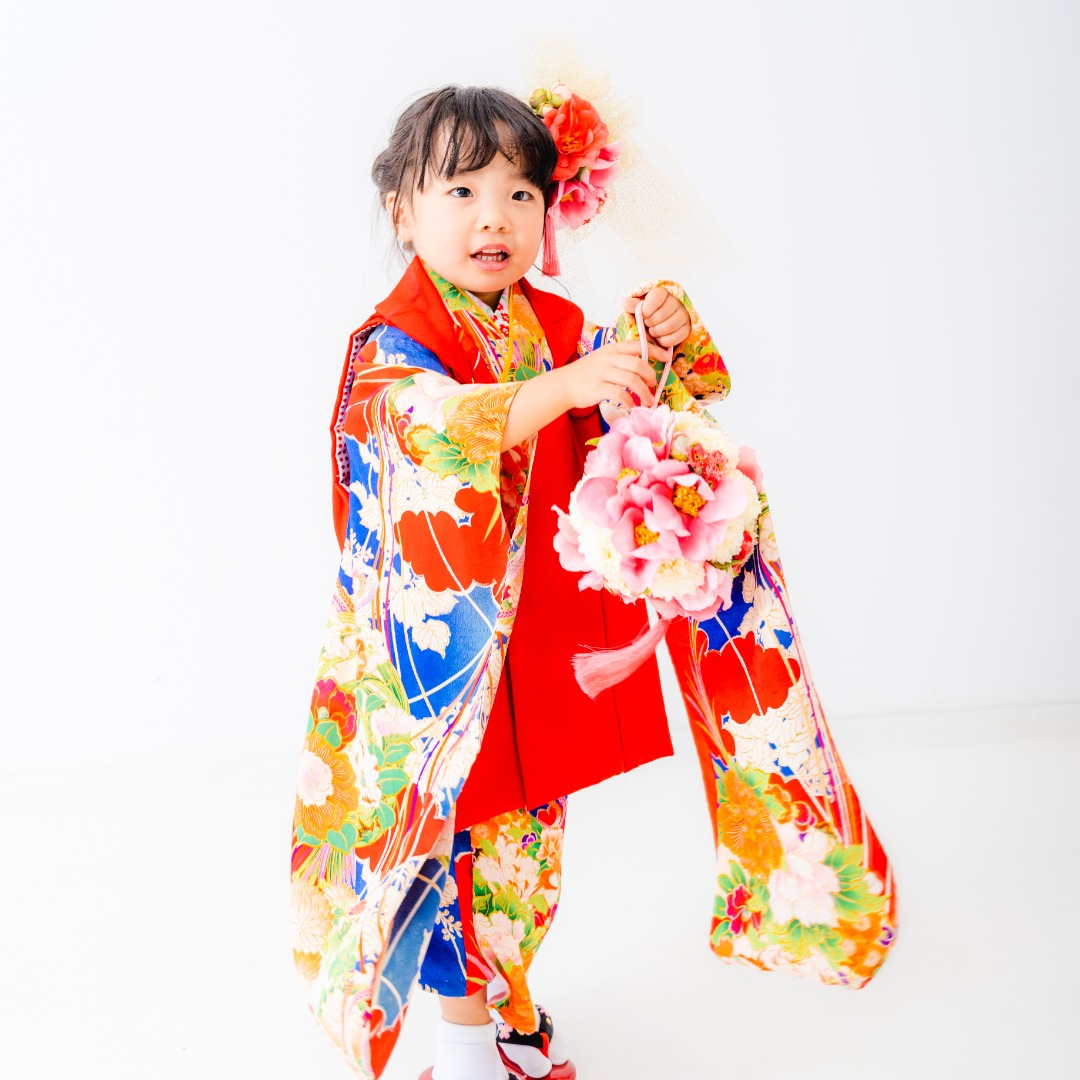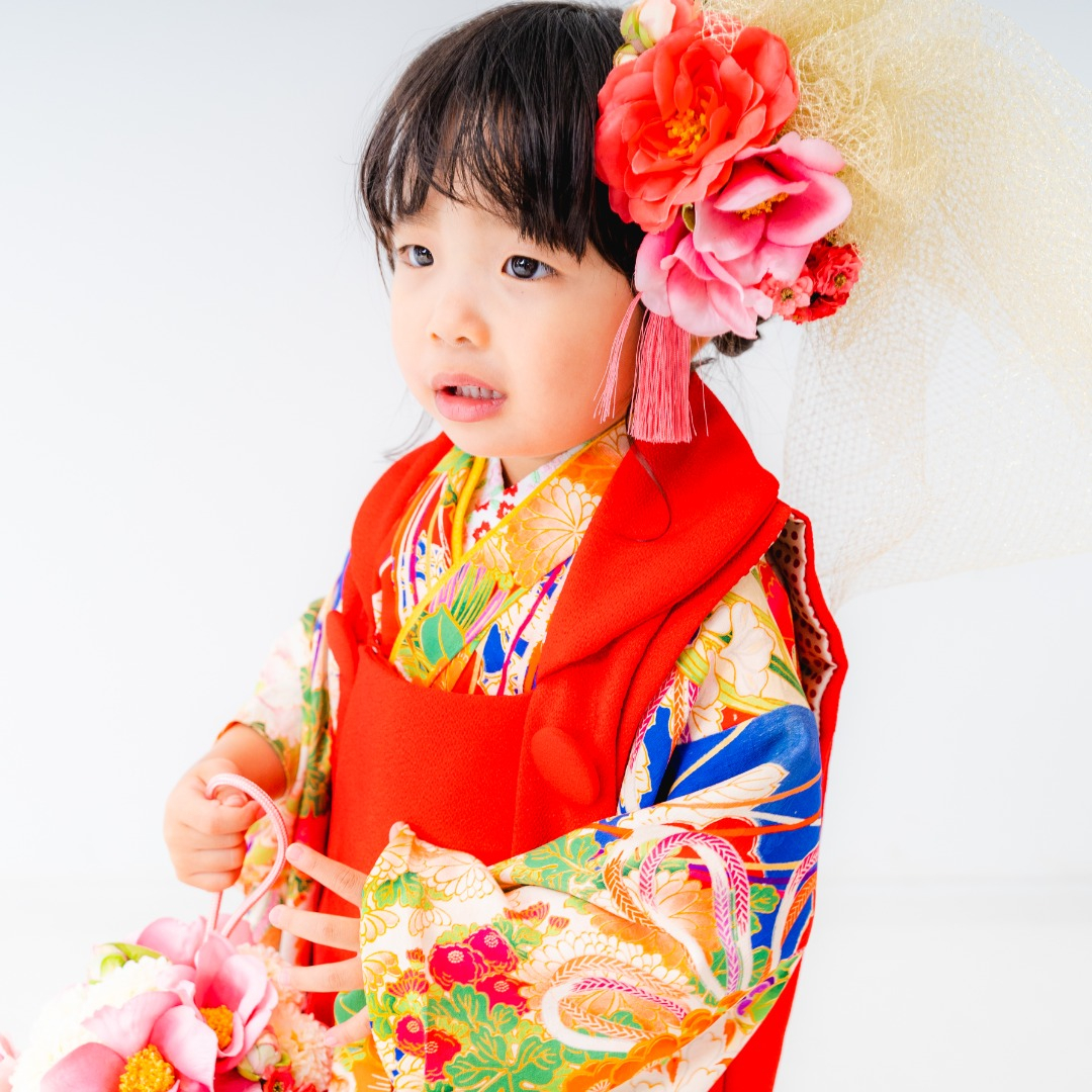七五三撮影は、満3歳頃からの撮影をオススメしております。年齢に限らず、お着替えやヘアセットをすることを受け入れてくれるようになってからの撮影がオススメです。また、3歳用のお着物のサイズは95㎝〜105㎝が目安となりますので、撮影時期についてご検討ください。