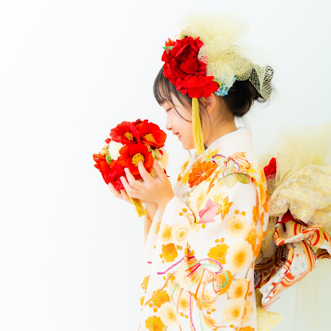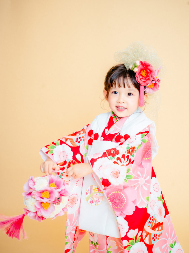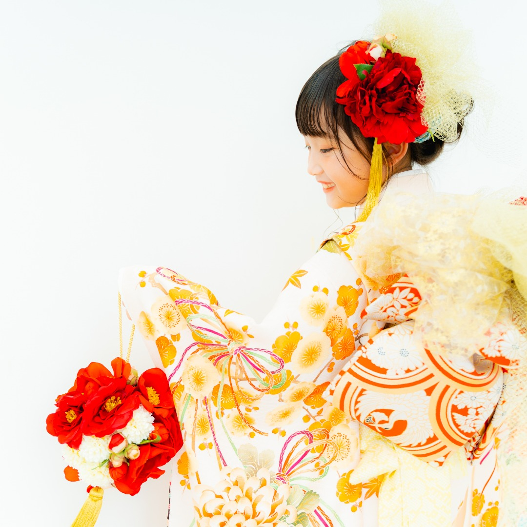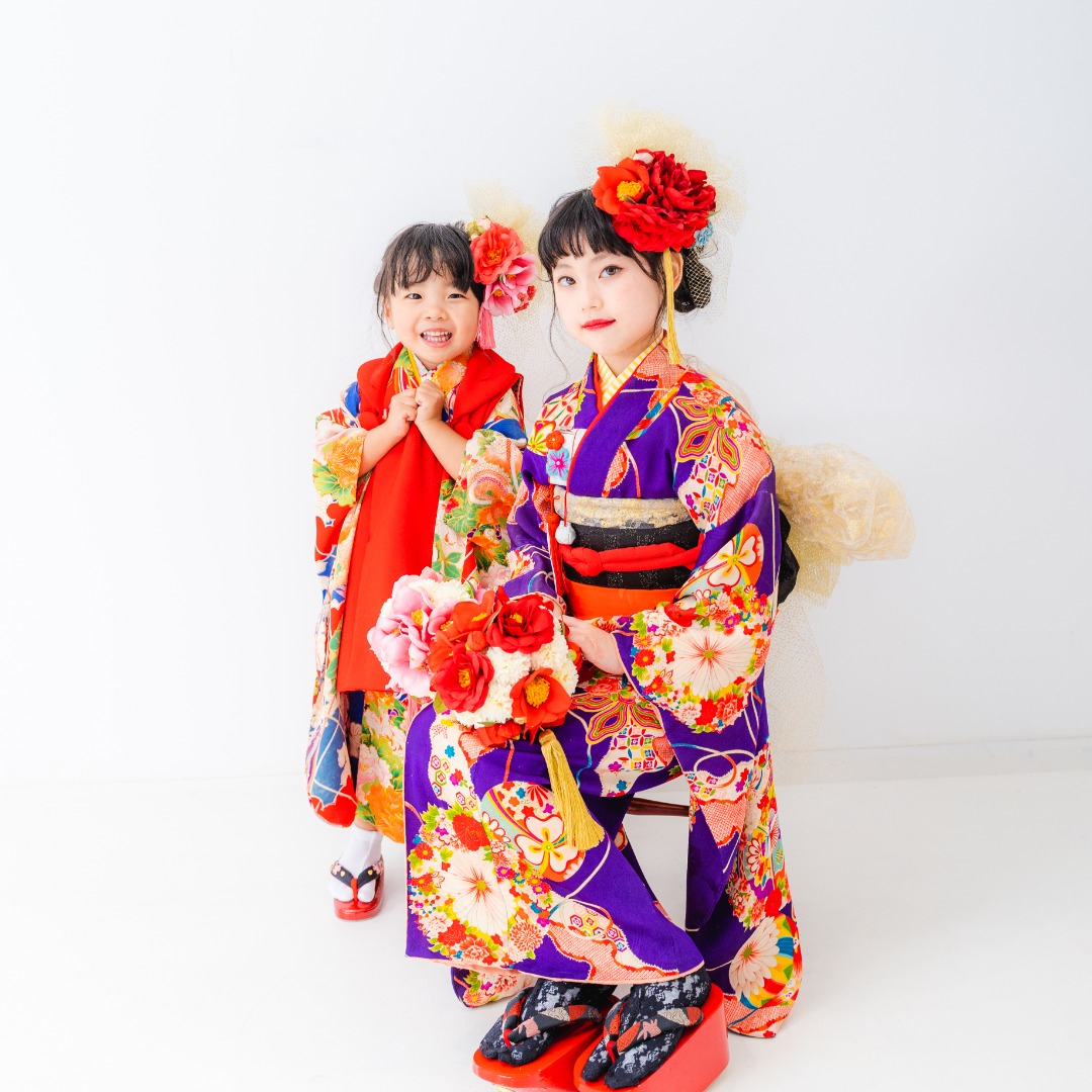 七五三撮影は、満3歳頃からの撮影をオススメしております。年齢に限らず、お着替えやヘアセットをすることを受け入れてくれるようになってからの撮影がオススメです。また、3歳用のお着物のサイズは95㎝〜105㎝が目安となりますので、撮影時期についてご検討ください。