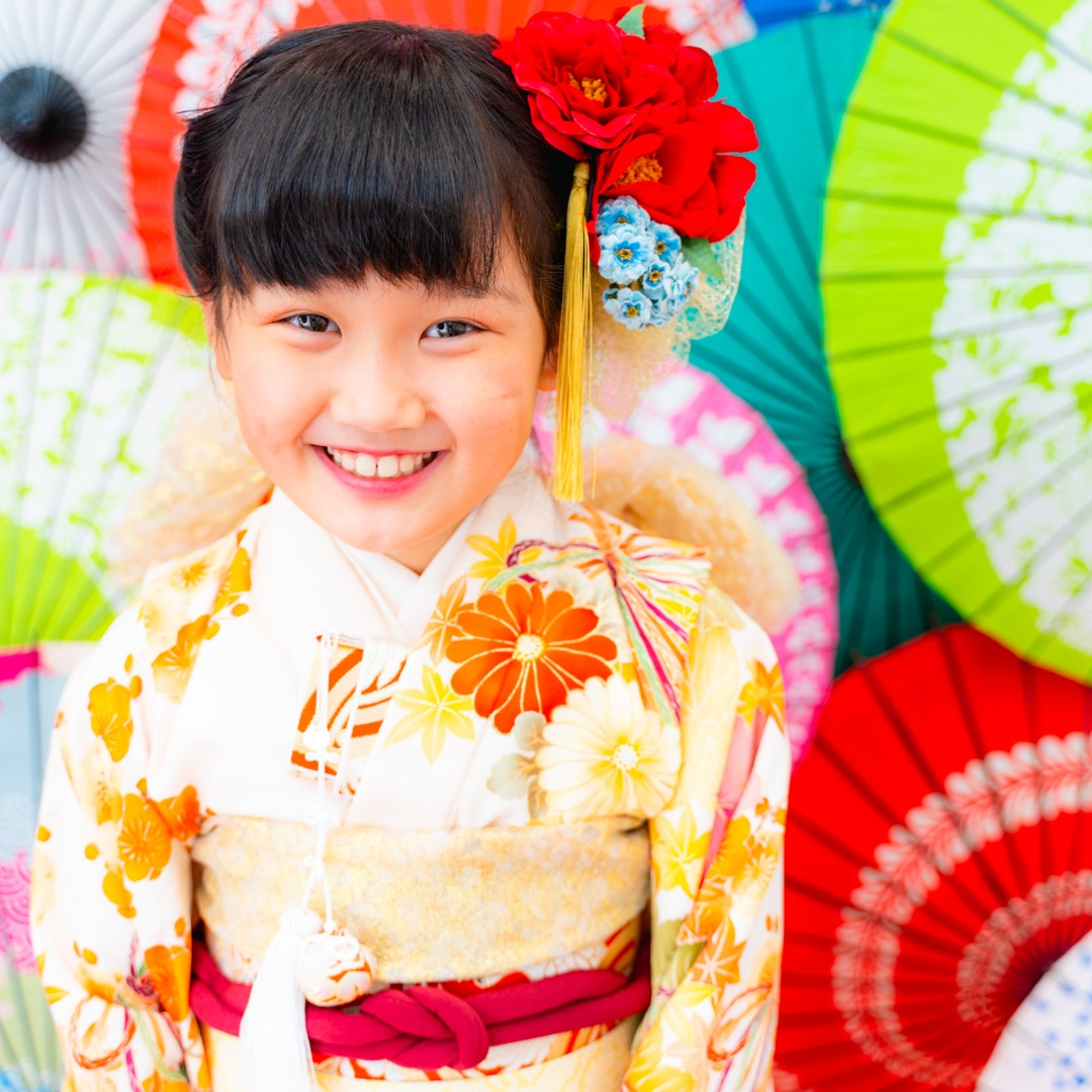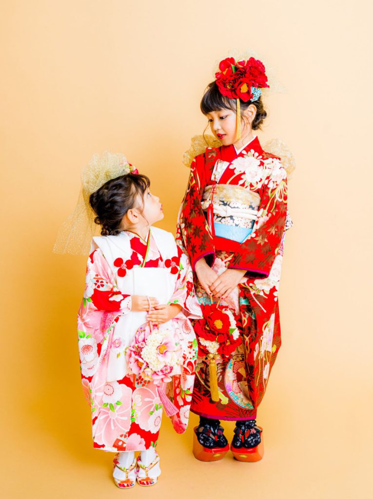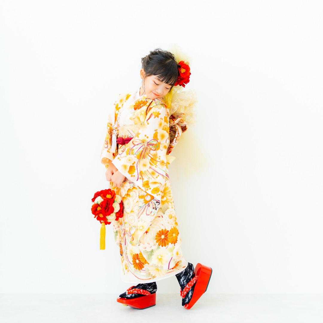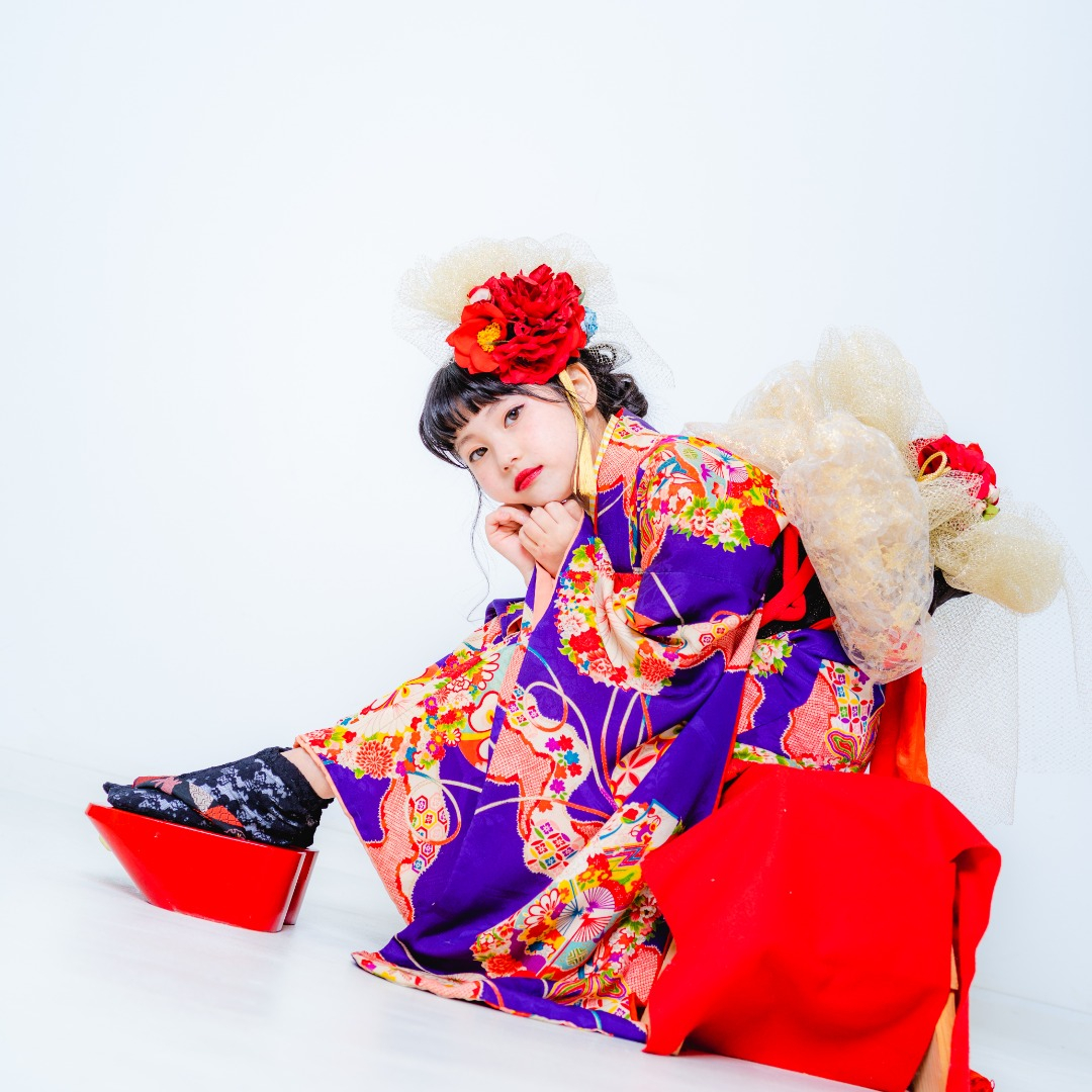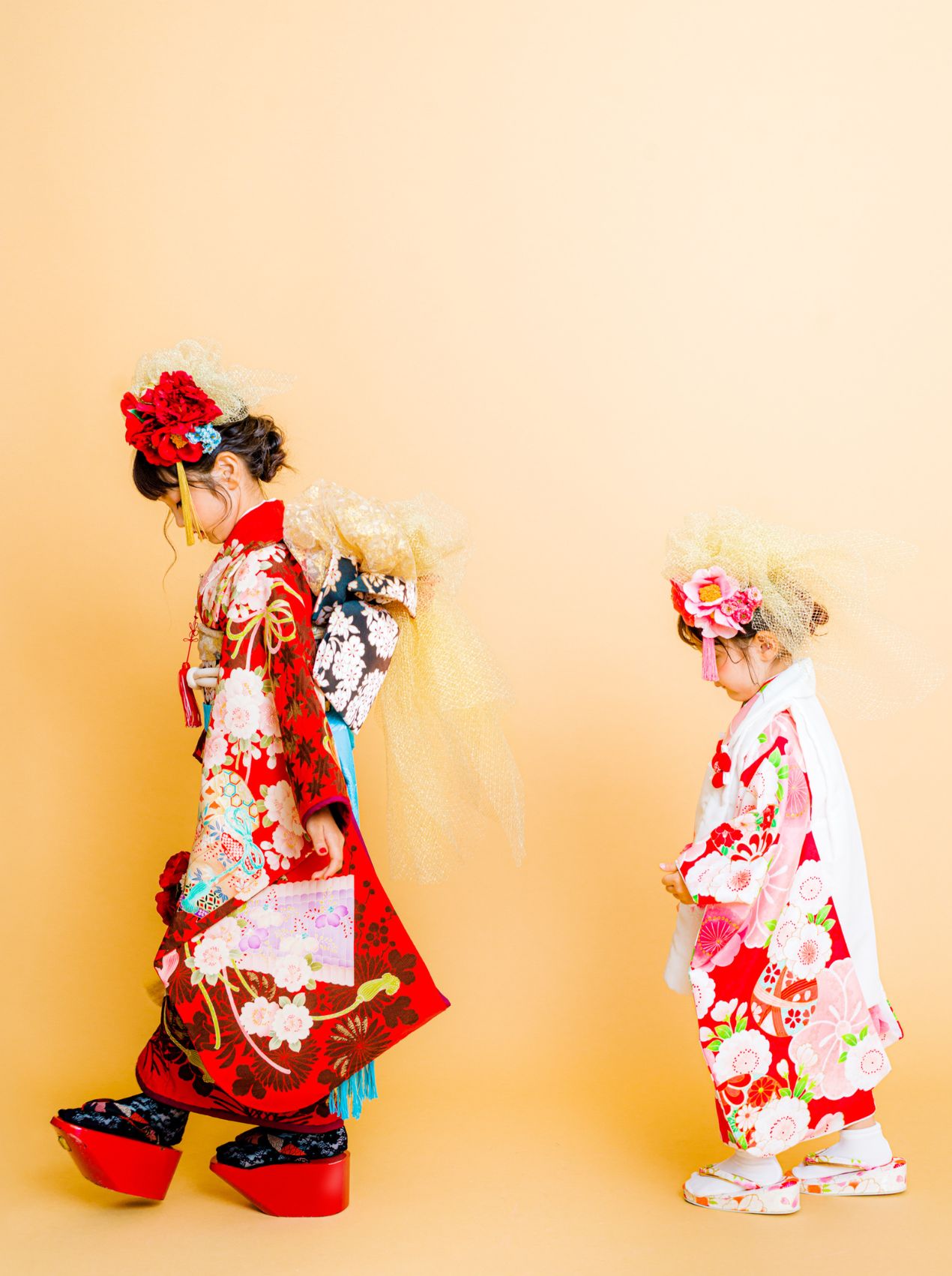 七五三撮影は、満3歳頃からの撮影をオススメしております。年齢に限らず、お着替えやヘアセットをすることを受け入れてくれるようになってからの撮影がオススメです。また、3歳用のお着物のサイズは95㎝〜105㎝が目安となりますので、撮影時期についてご検討ください。