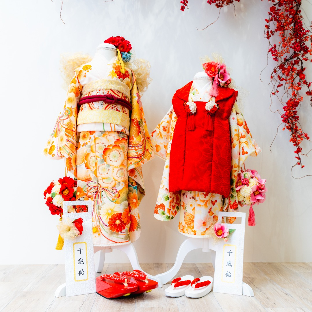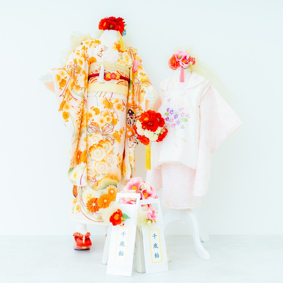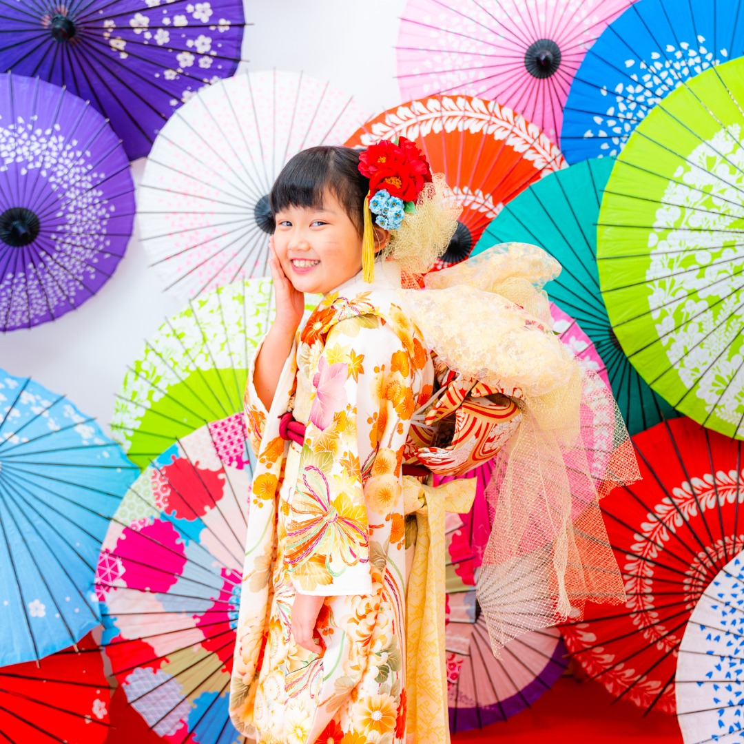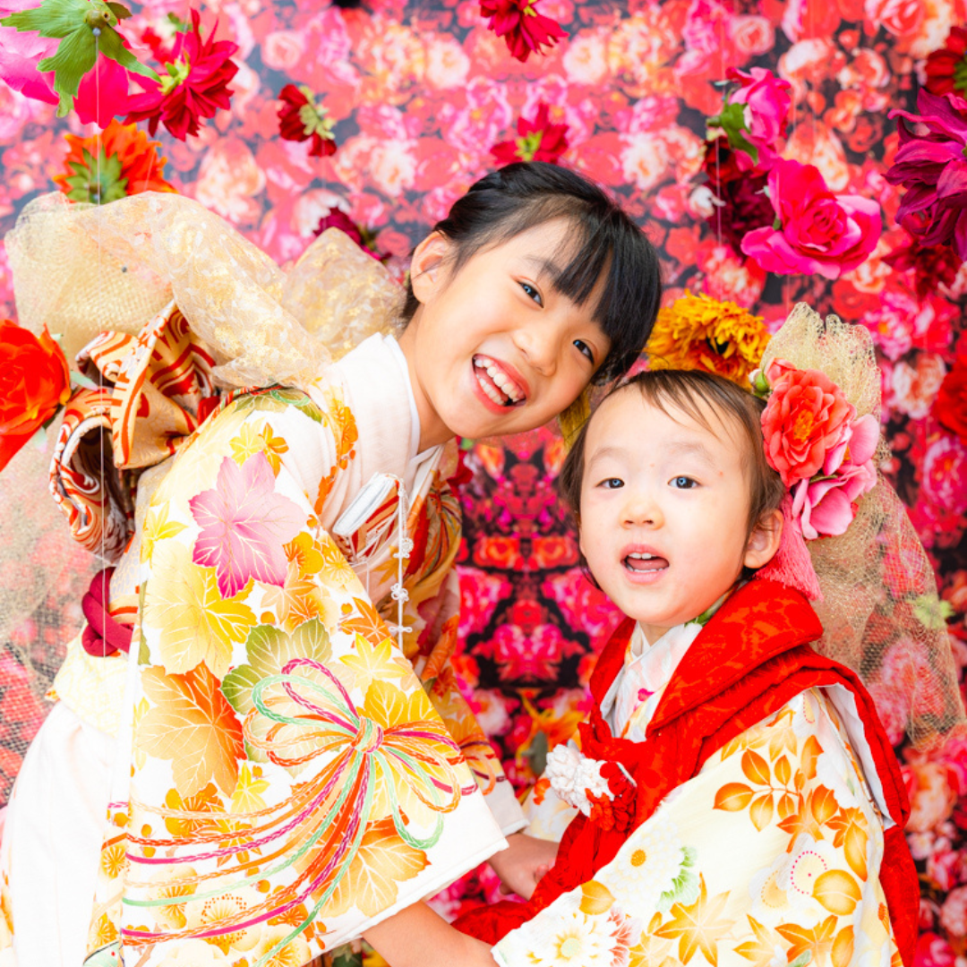 七五三撮影は、満3歳頃からの撮影をオススメしております。年齢に限らず、お着替えやヘアセットをすることを受け入れてくれるようになってからの撮影がオススメです。また、3歳用のお着物のサイズは95㎝〜105㎝が目安となりますので、撮影時期についてご検討ください。