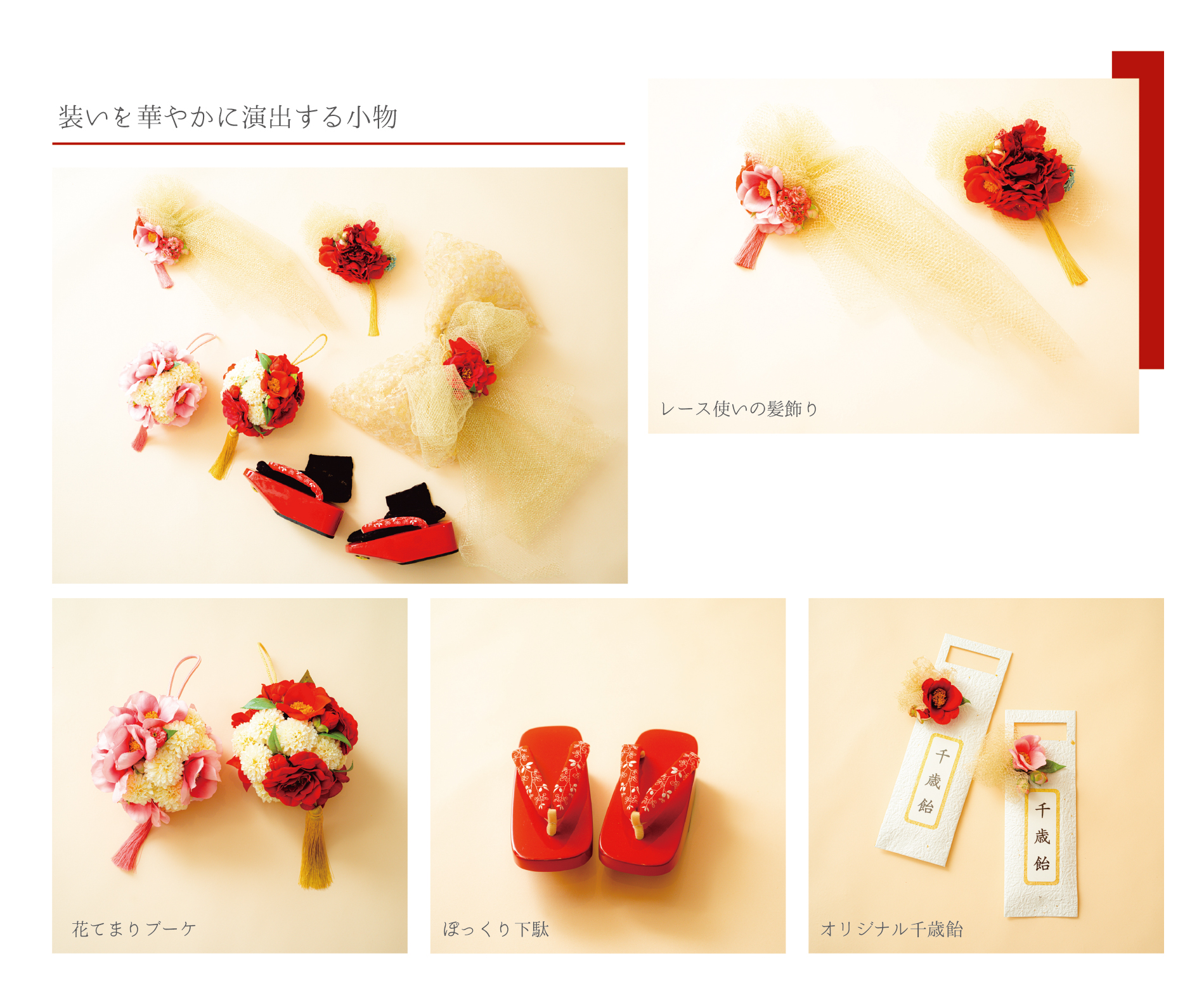 店舗によって、衣装・小物のラインナップが異なります。着物・オリジナルドレスにつきましては、衣装ページをご覧ください。 その他詳細は、各店舗にお問い合わせください。スタジオ見学も承っておりますので、是非ご予約ください。