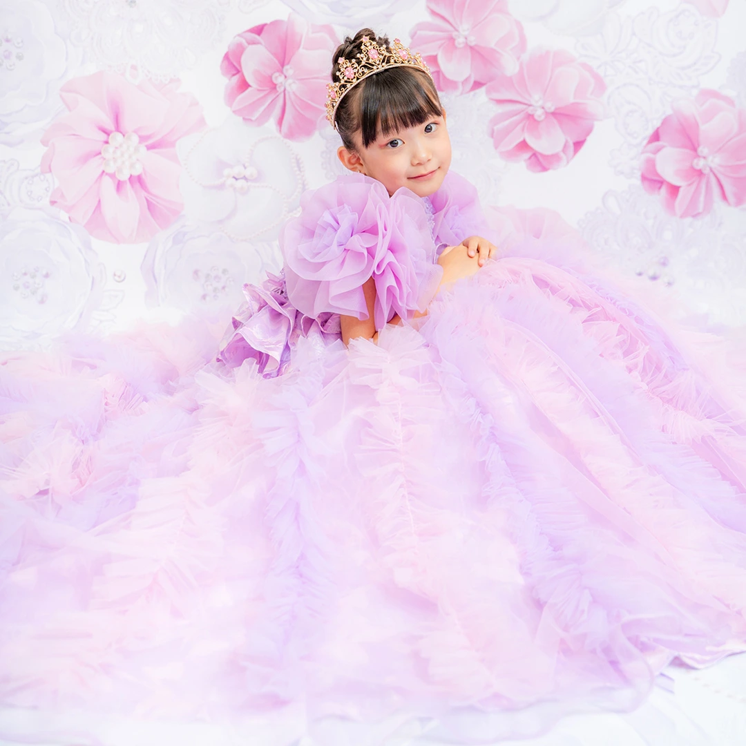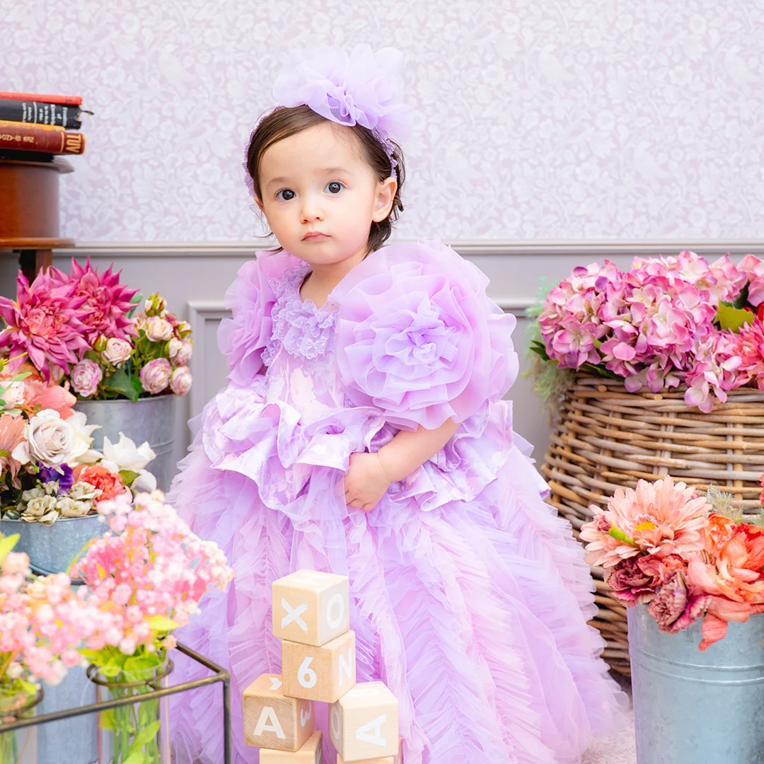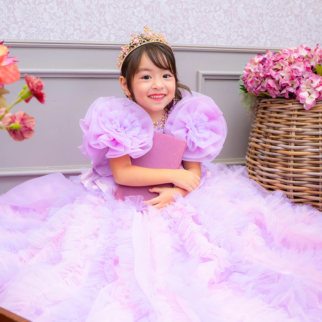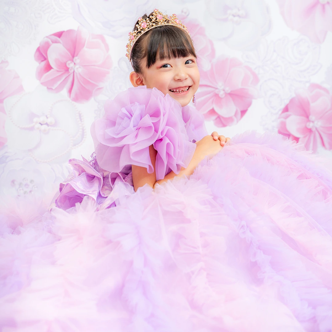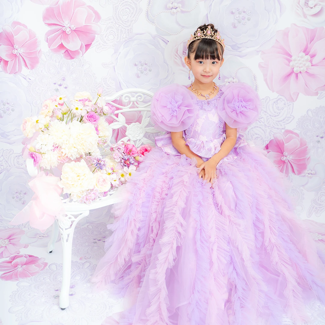 バースデー記念撮影や七五三撮影プランでもメゾ ピアノ新作ドレス「ラッフルローズ」のドレスを選べますか?