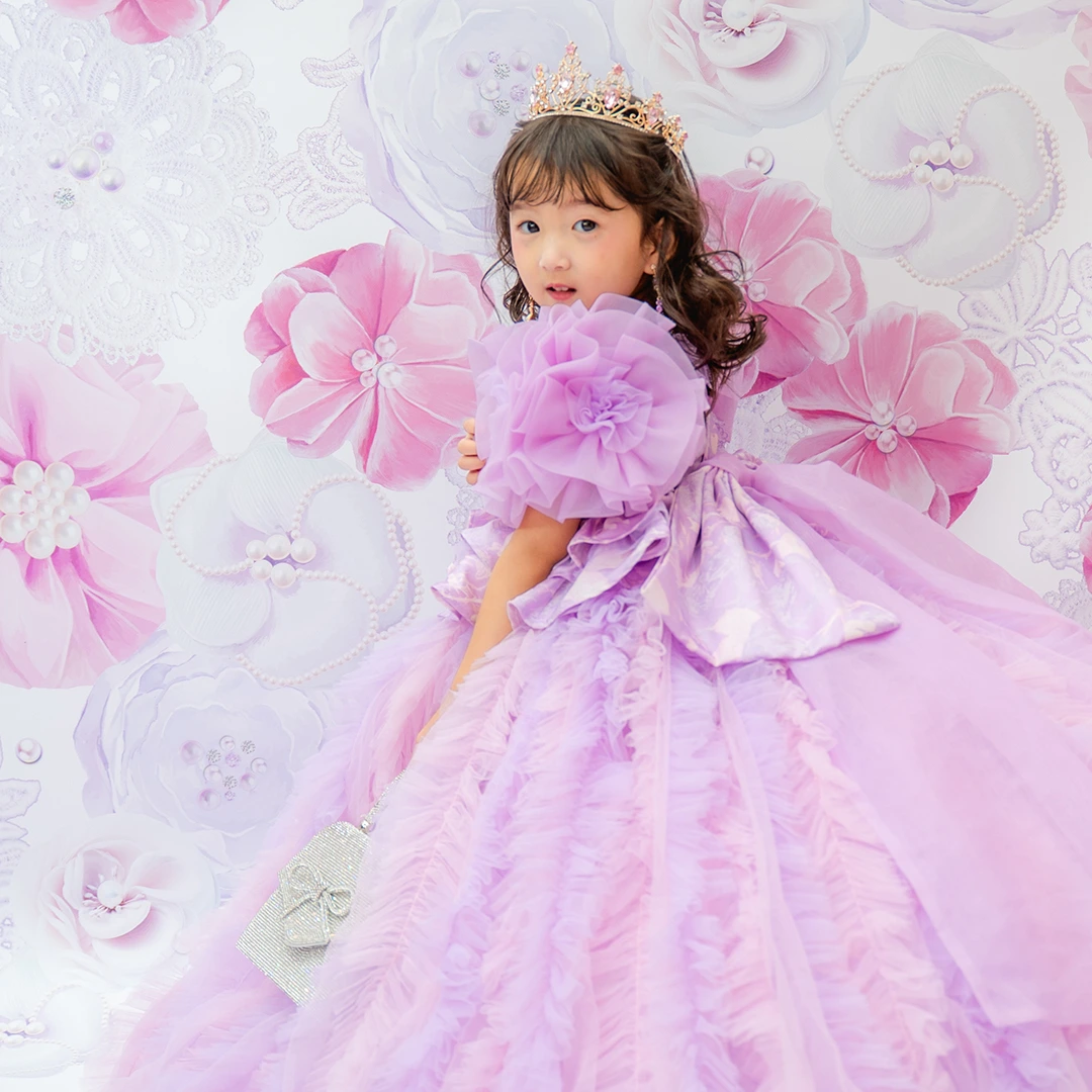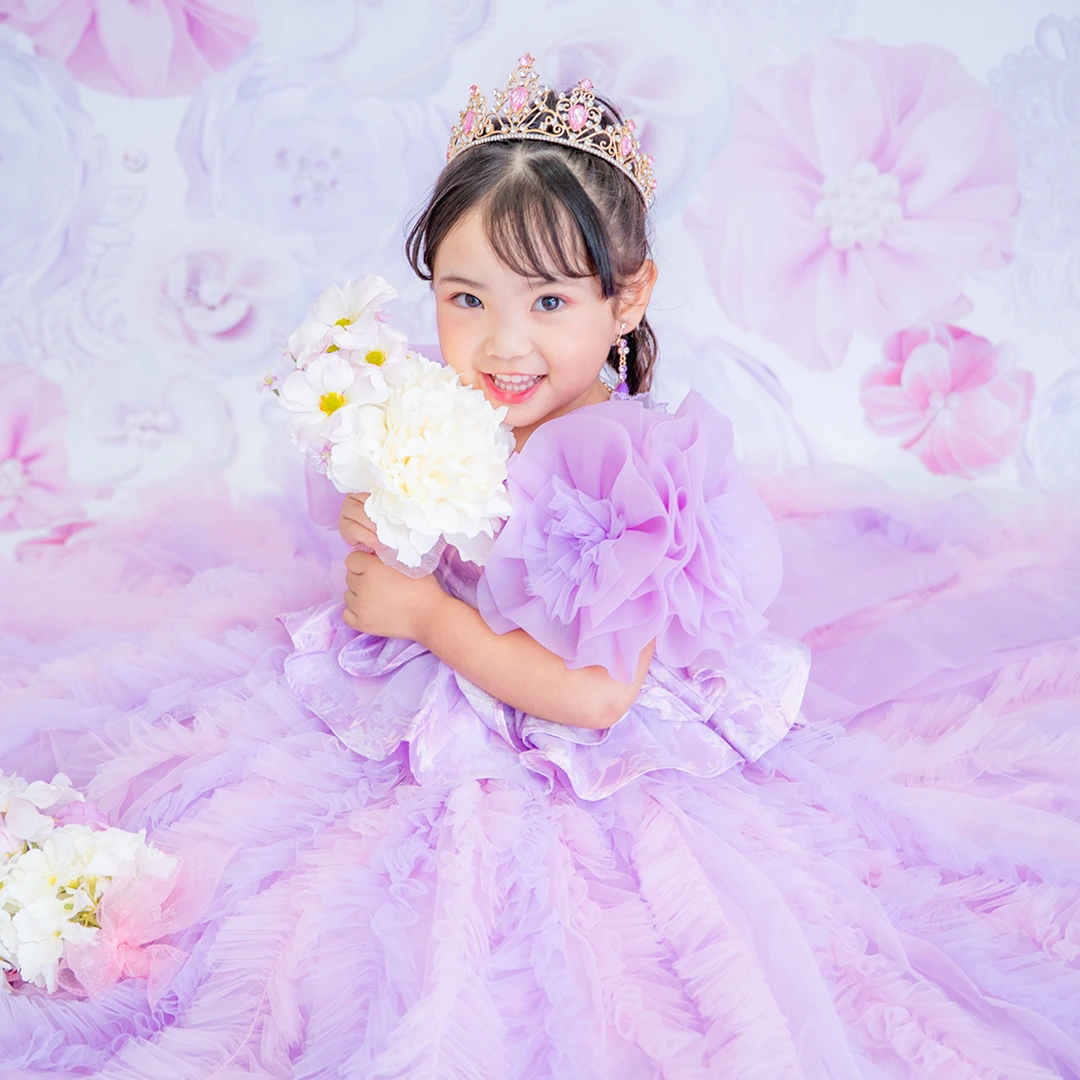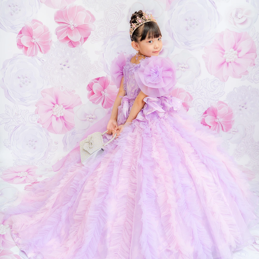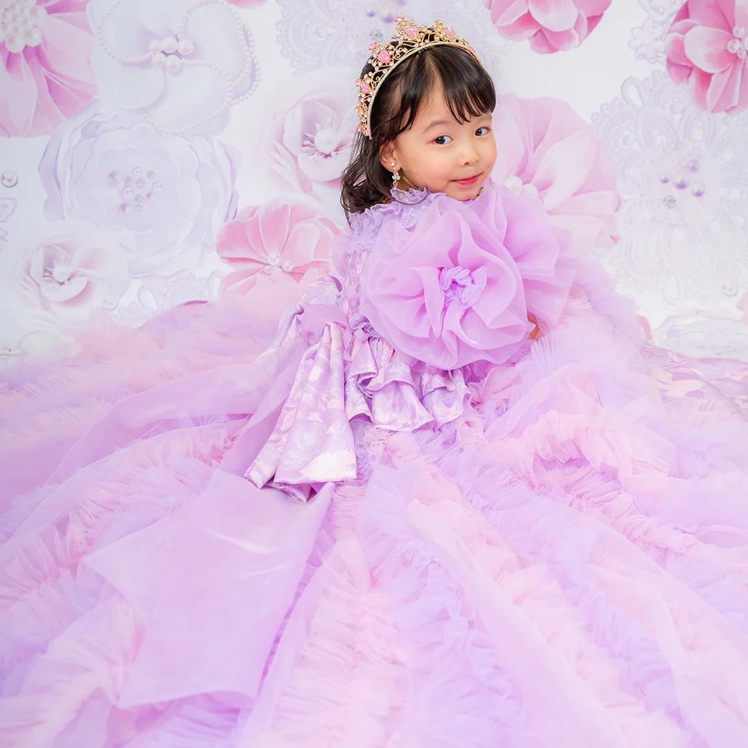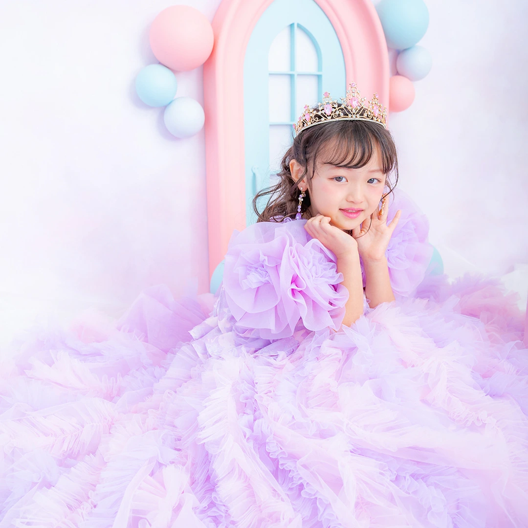 バースデー記念撮影や七五三撮影プランでもメゾ ピアノ新作ドレス「ラッフルローズ」のドレスを選べますか?