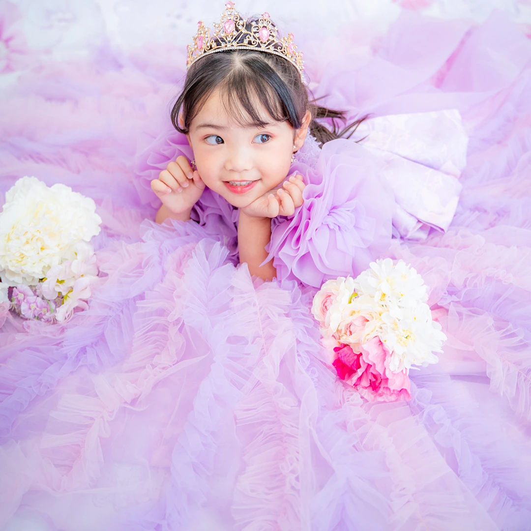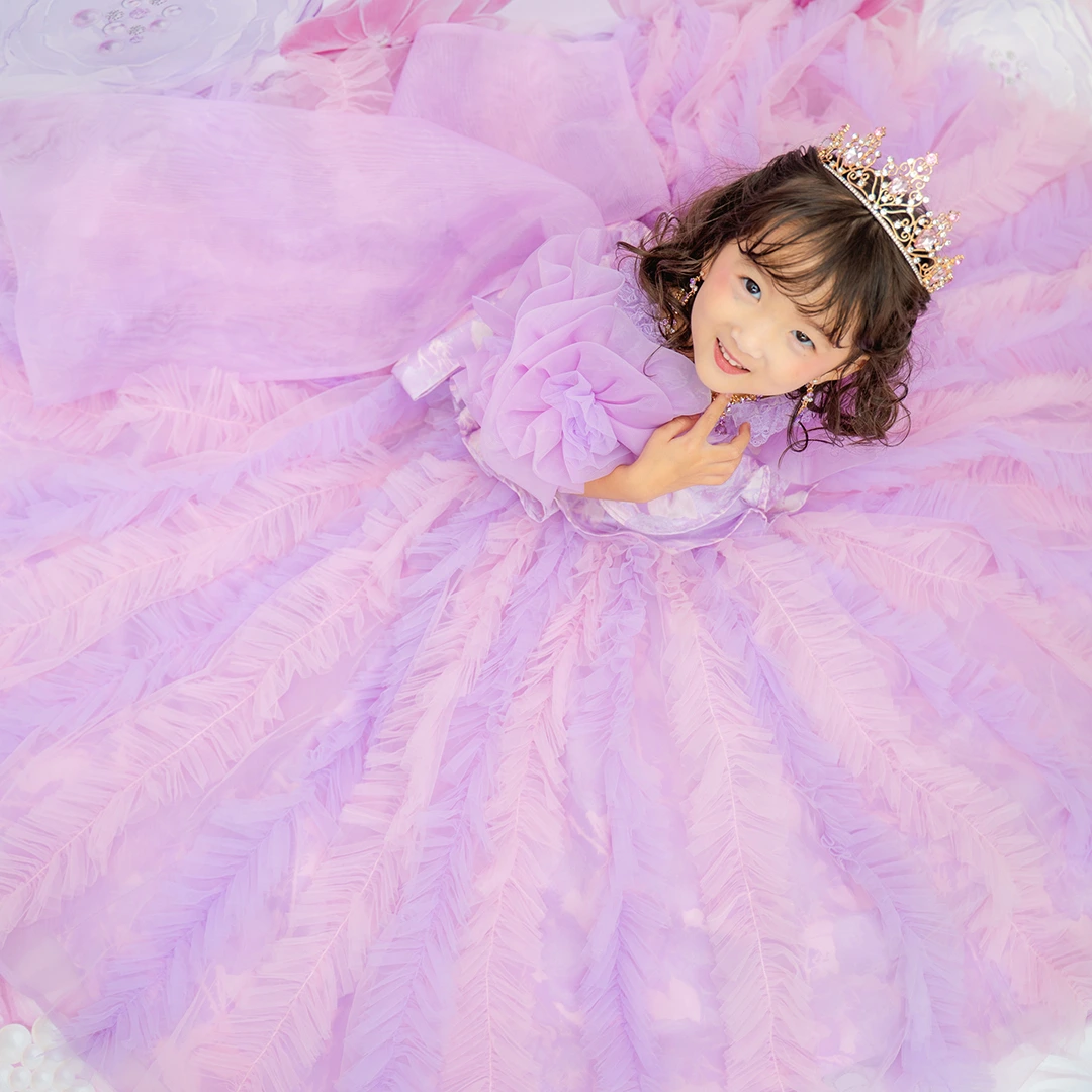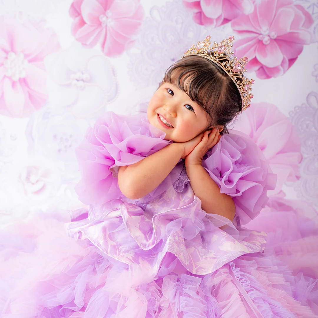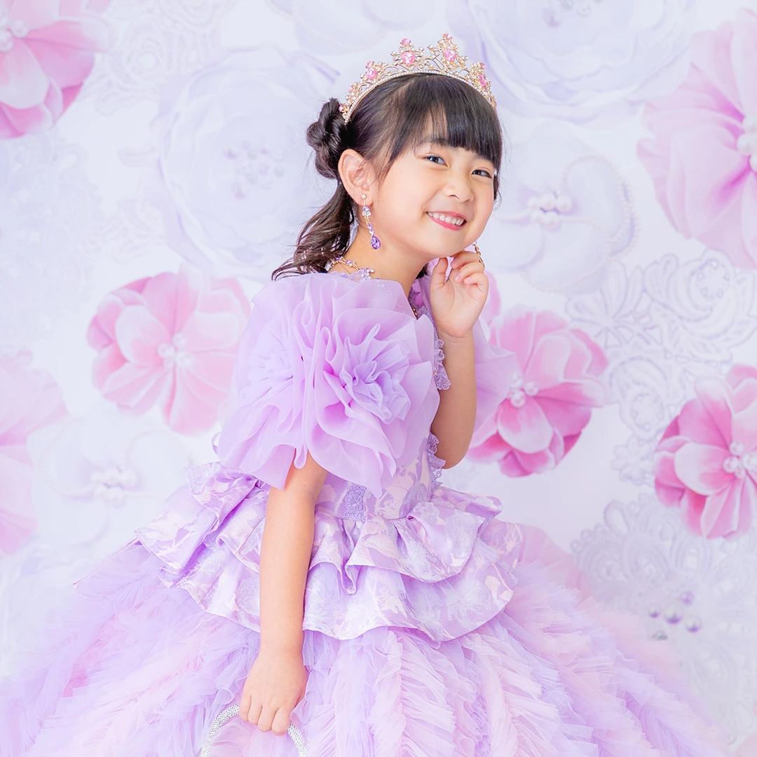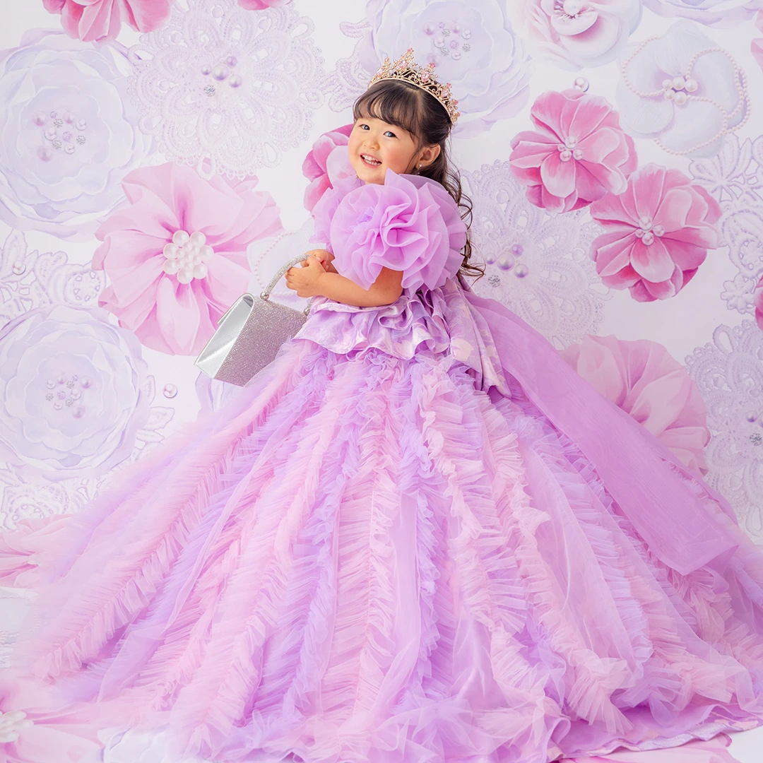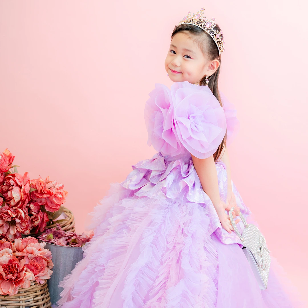 バースデー記念撮影や七五三撮影プランでもメゾ ピアノ新作ドレス「ラッフルローズ」のドレスを選べますか?