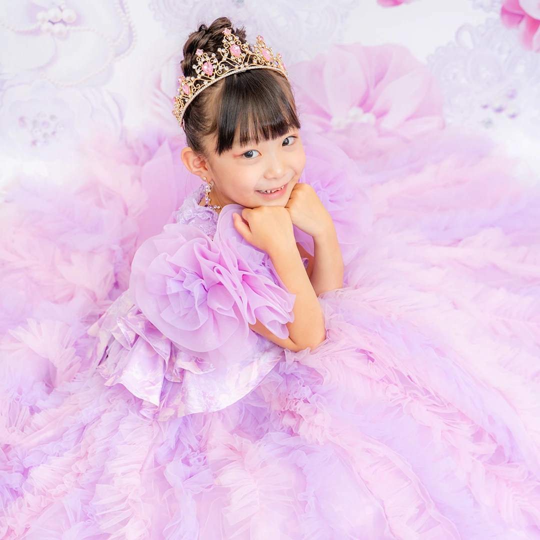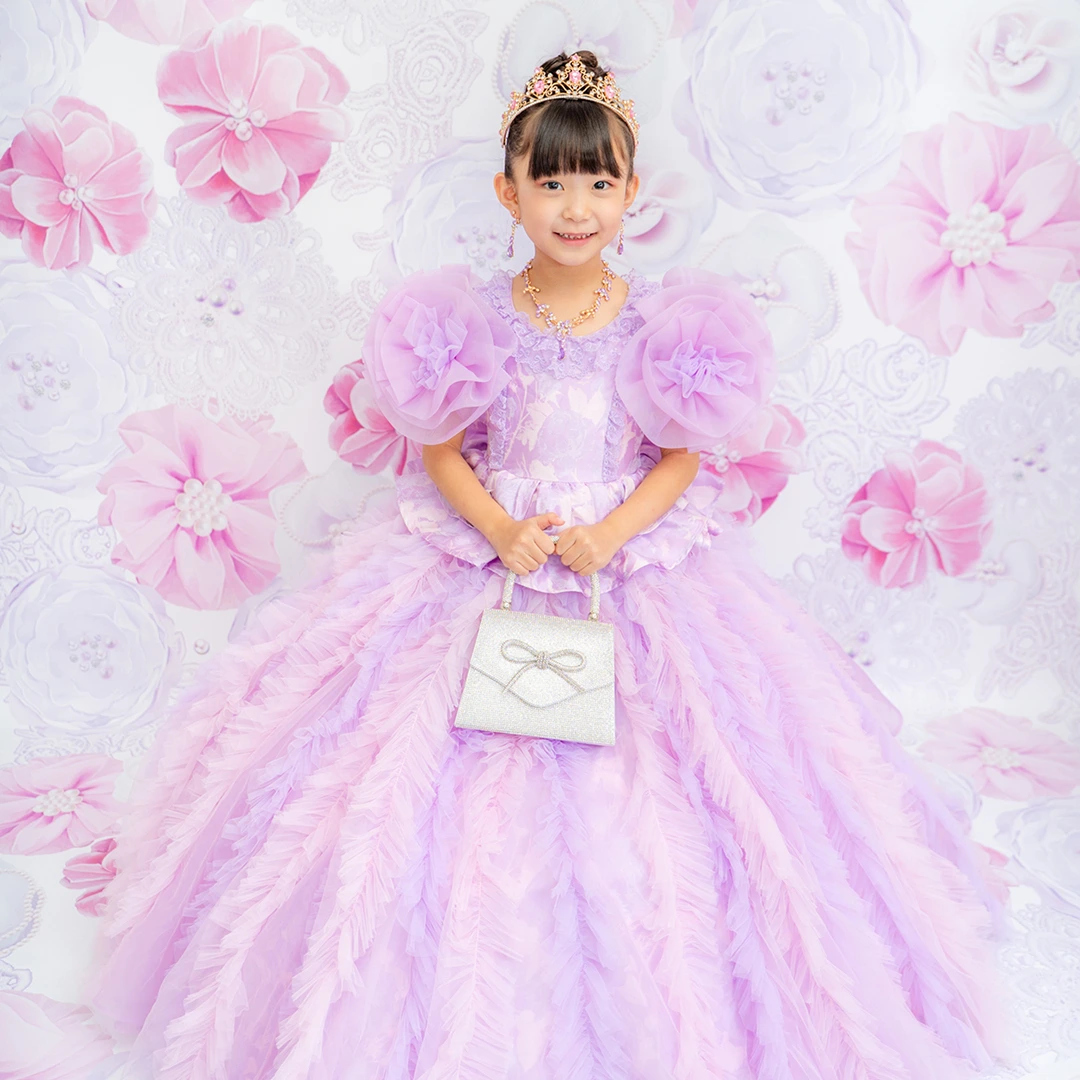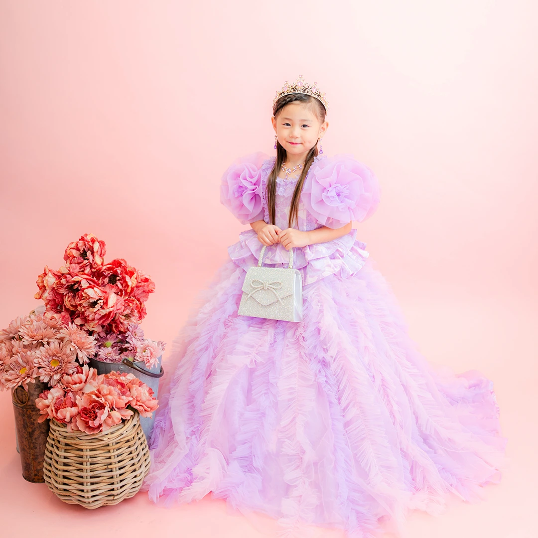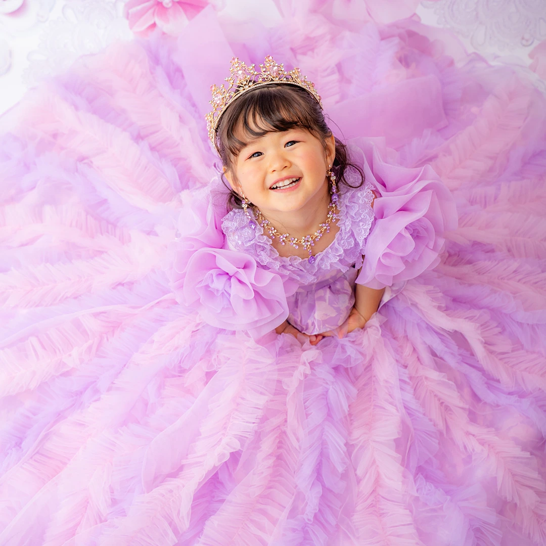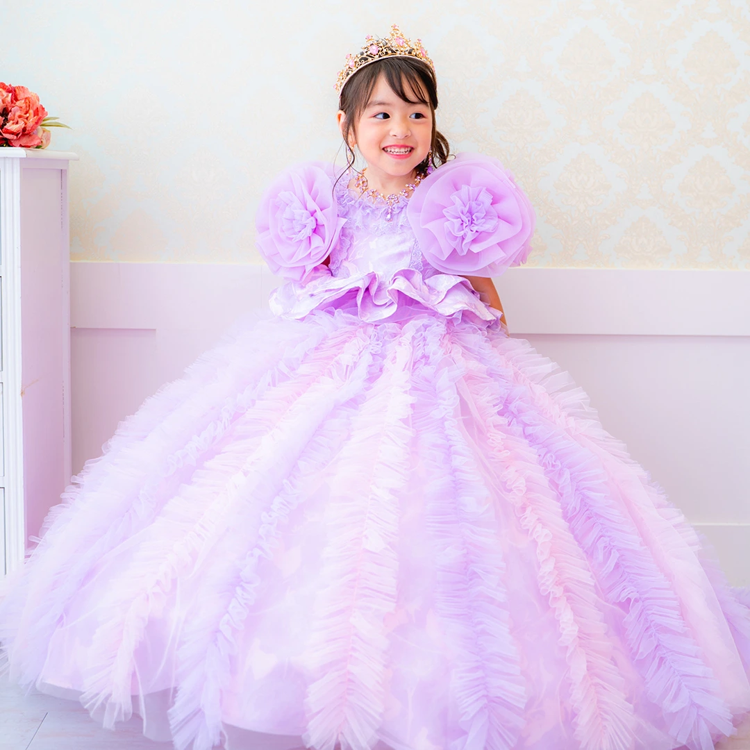 バースデー記念撮影や七五三撮影プランでもメゾ ピアノ新作ドレス「ラッフルローズ」のドレスを選べますか?