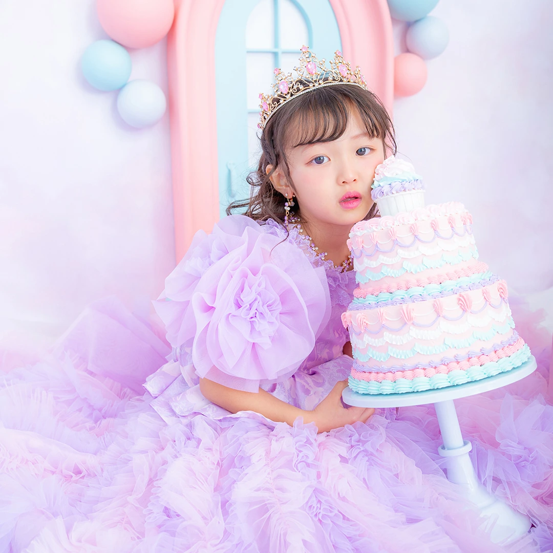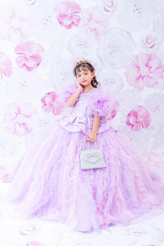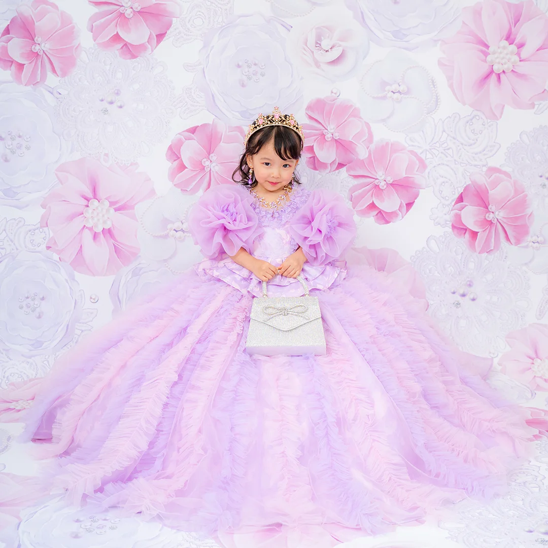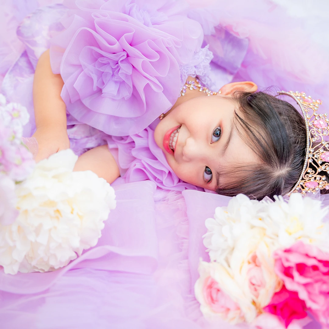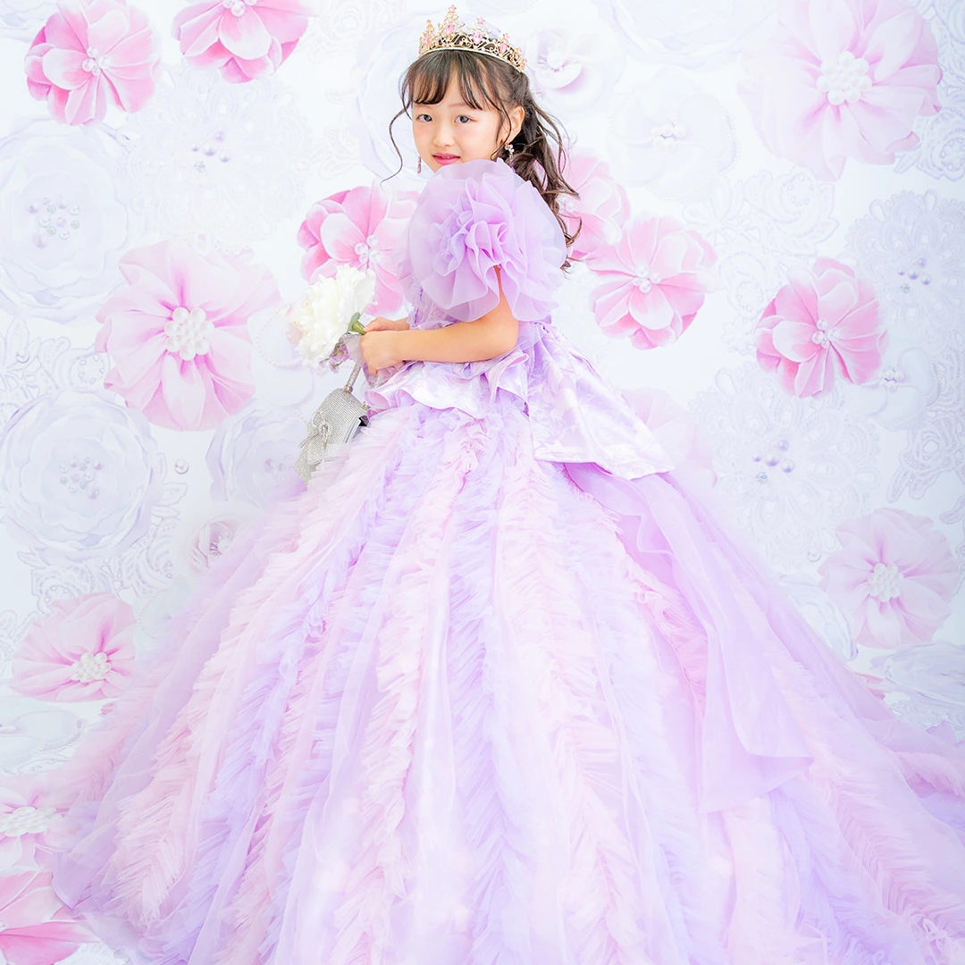 バースデー記念撮影や七五三撮影プランでもメゾ ピアノ新作ドレス「ラッフルローズ」のドレスを選べますか?