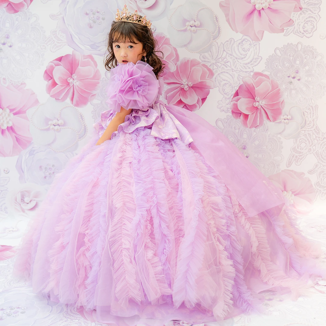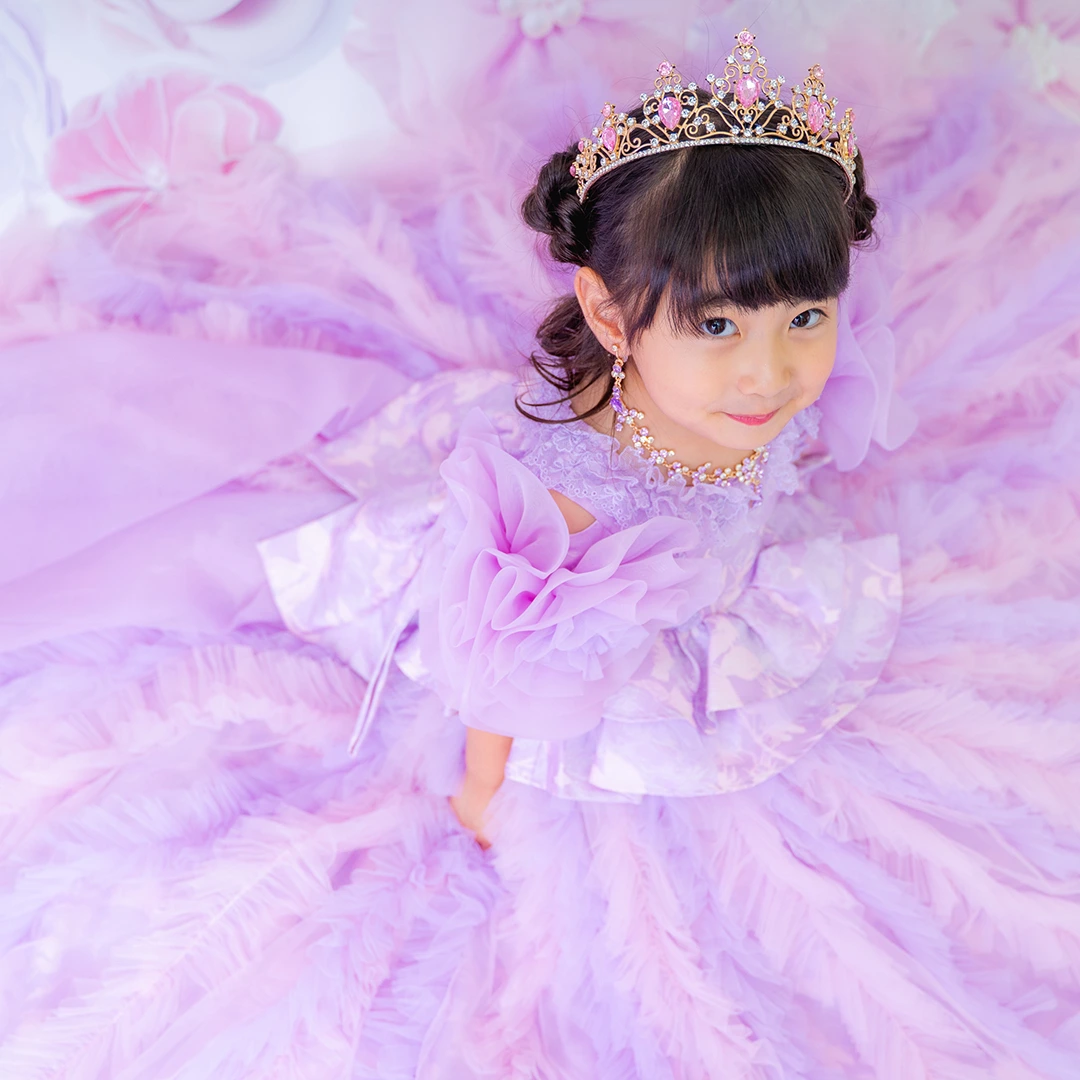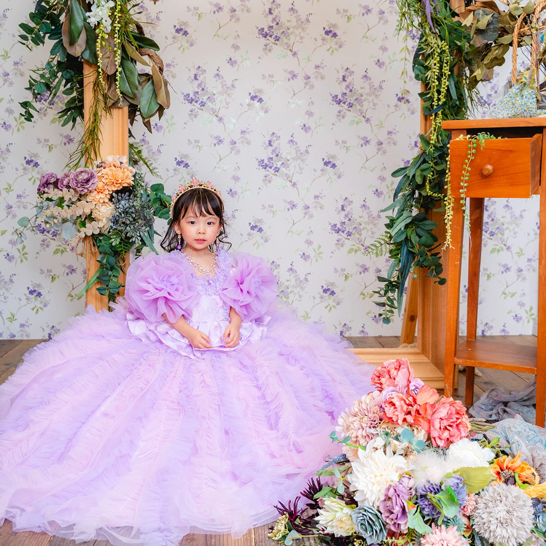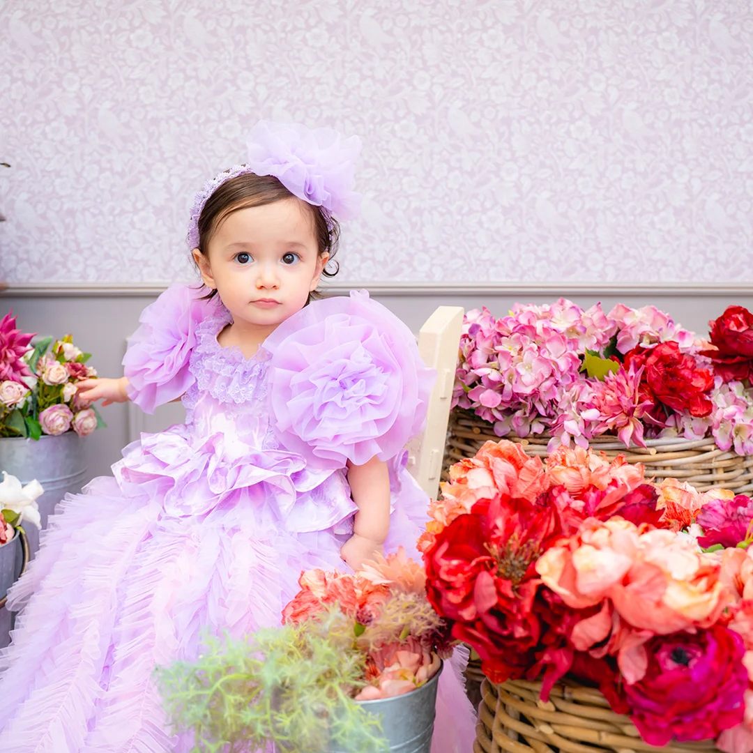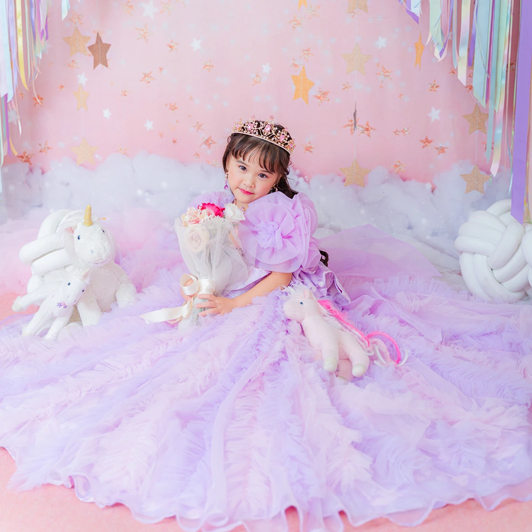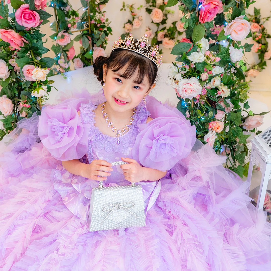 バースデー記念撮影や七五三撮影プランでもメゾ ピアノ新作ドレス「ラッフルローズ」のドレスを選べますか?