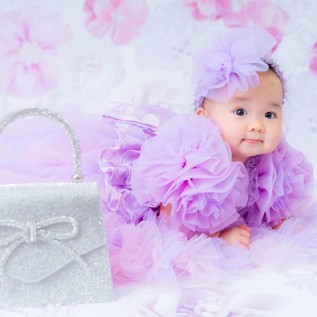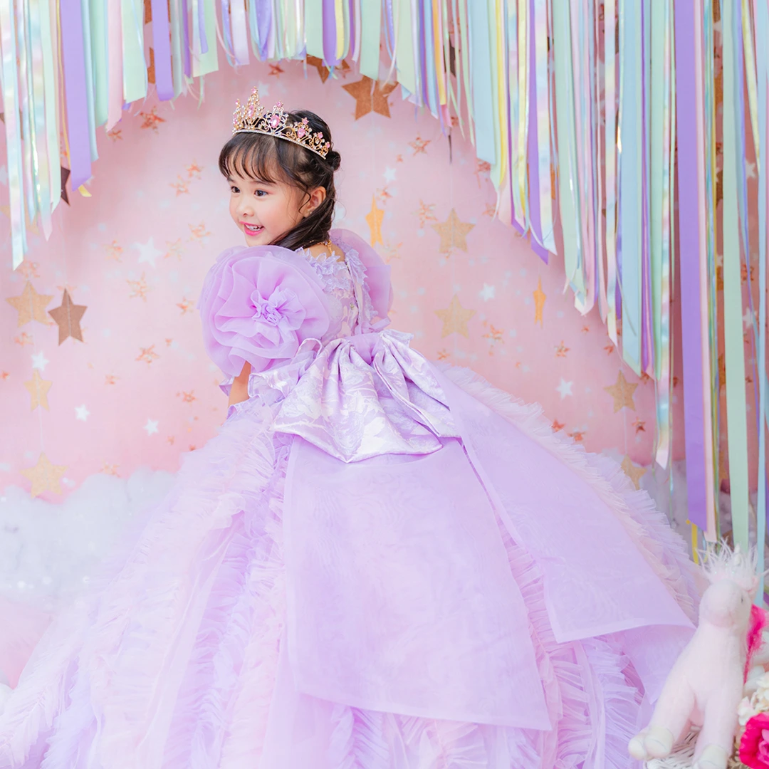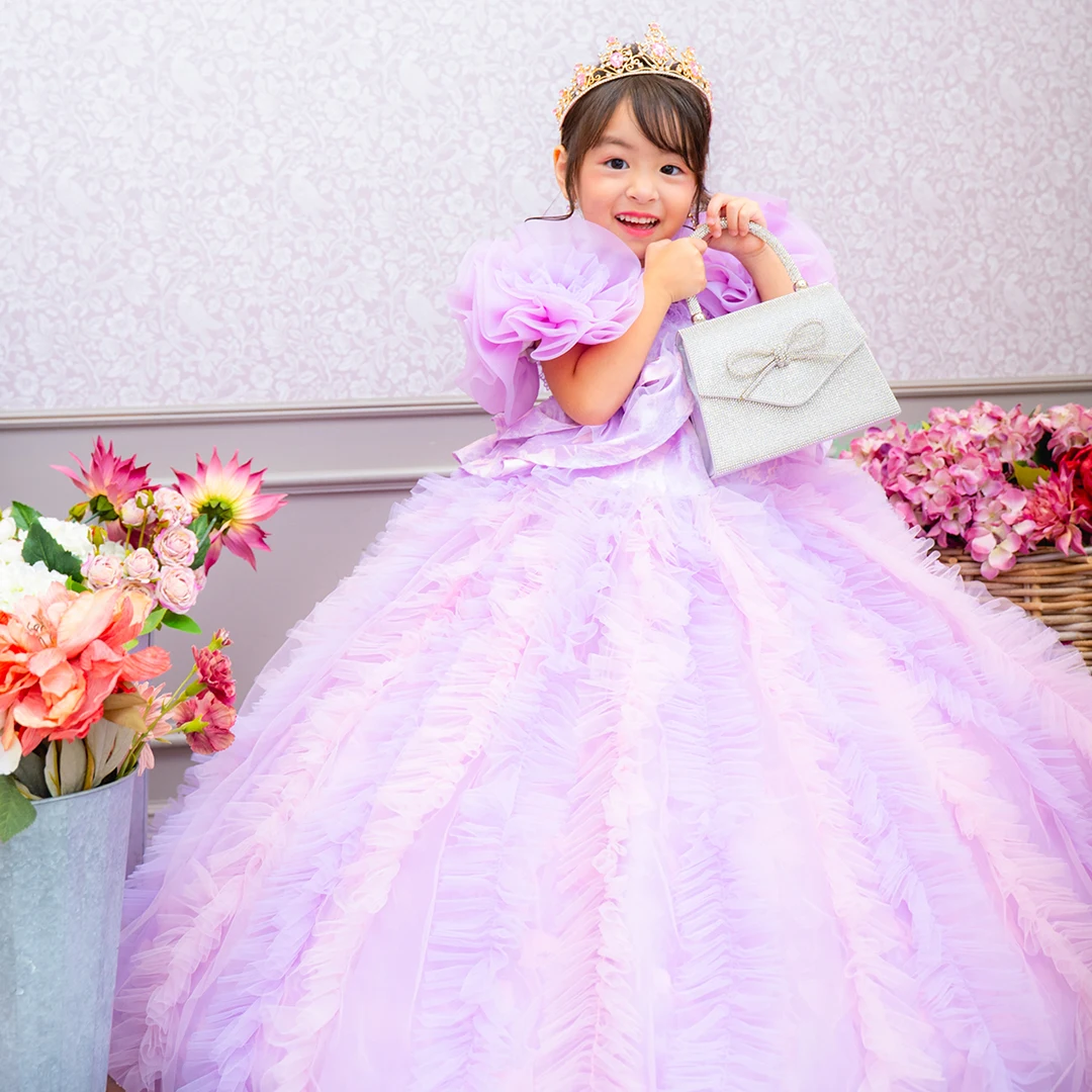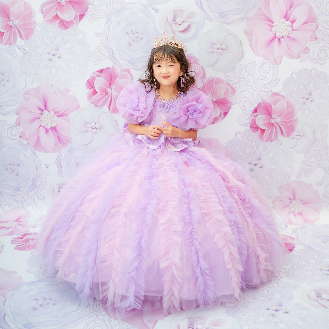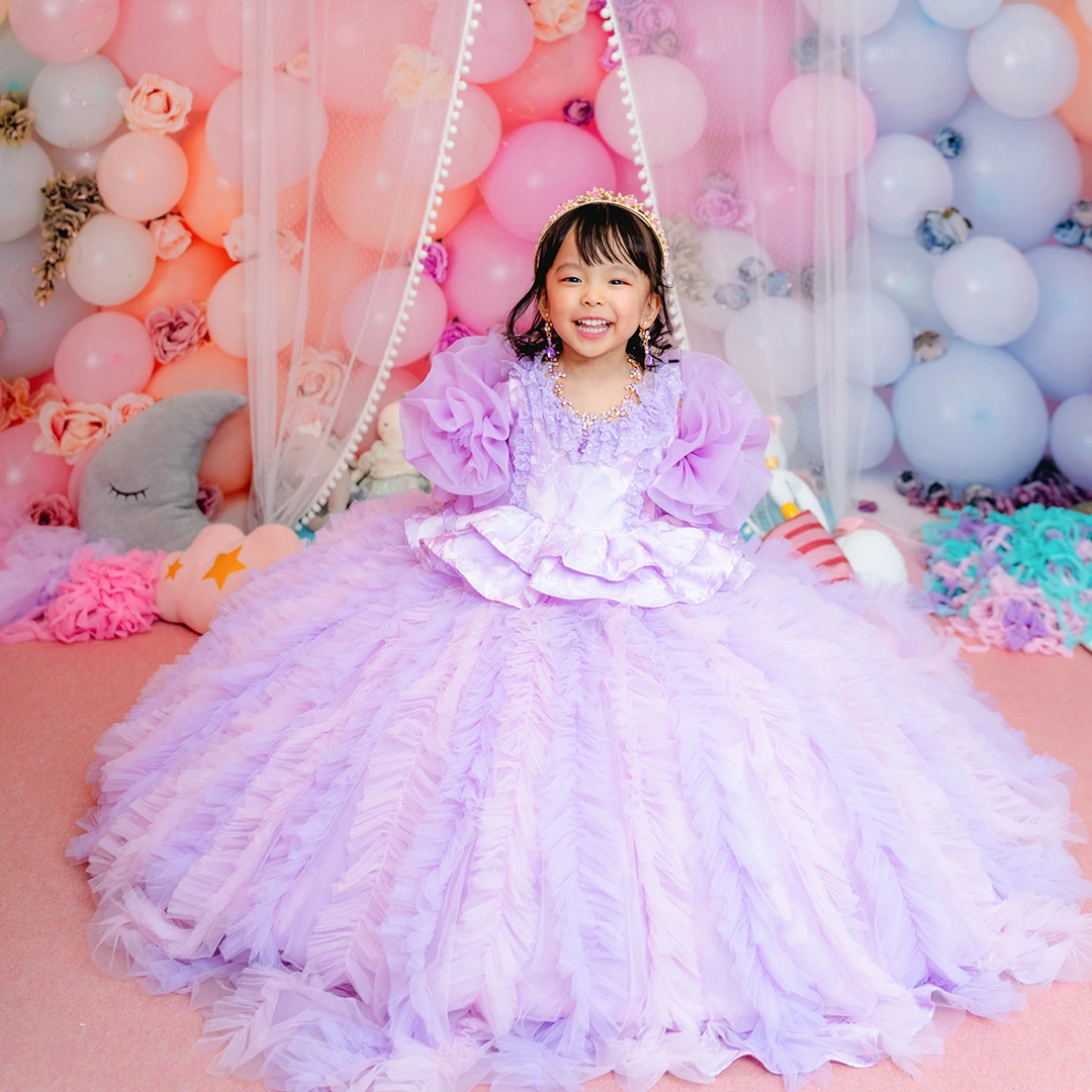 バースデー記念撮影や七五三撮影プランでもメゾ ピアノ新作ドレス「ラッフルローズ」のドレスを選べますか?