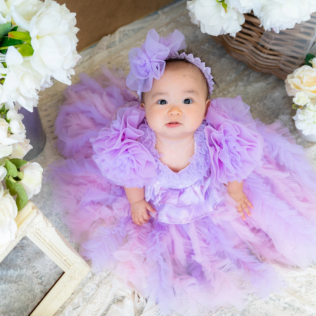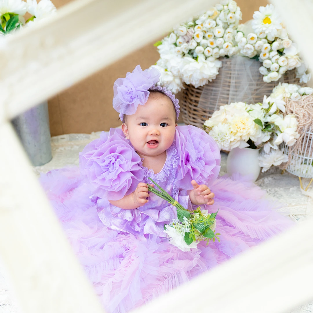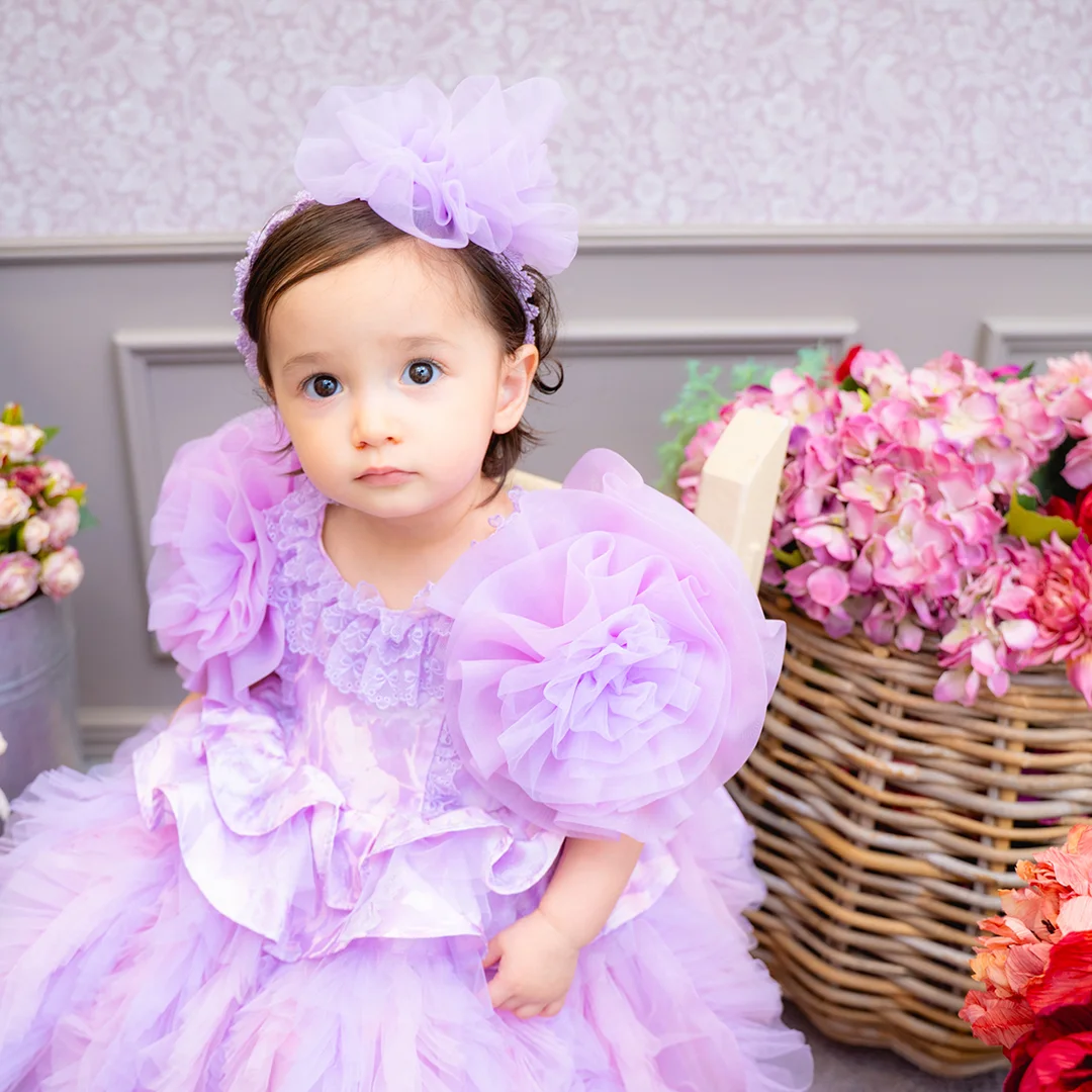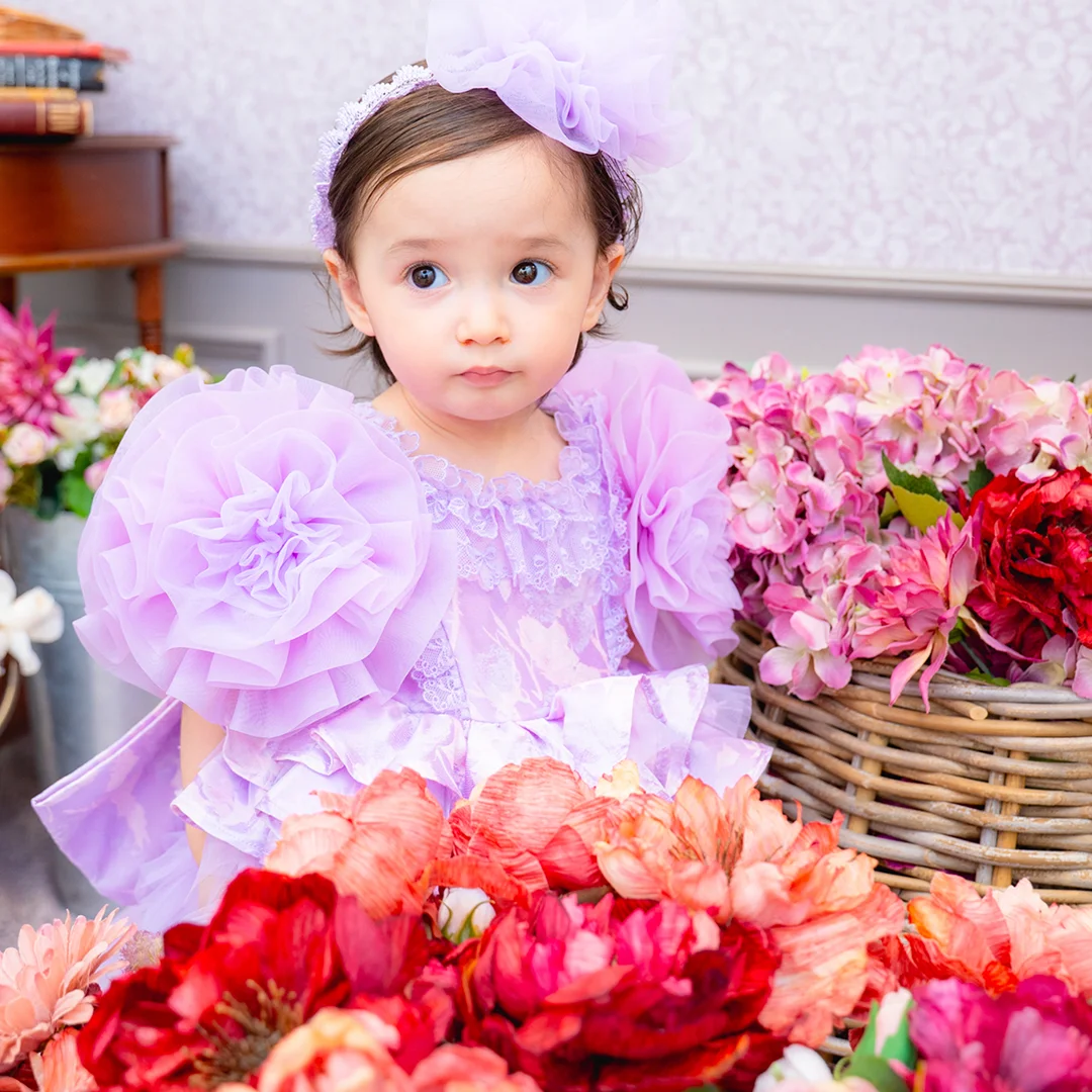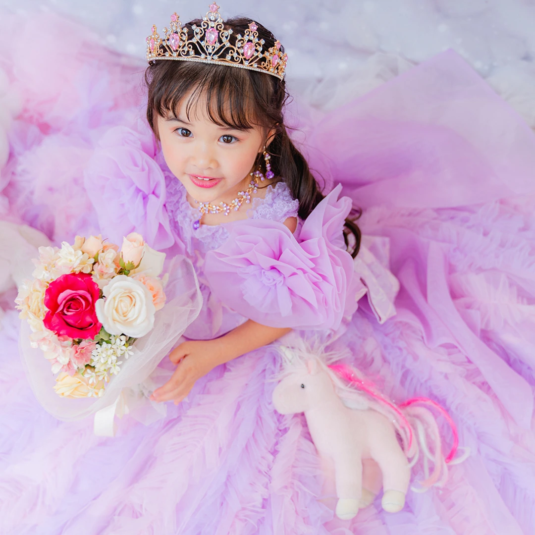 バースデー記念撮影や七五三撮影プランでもメゾ ピアノ新作ドレス「ラッフルローズ」のドレスを選べますか?