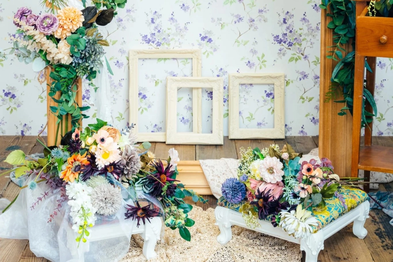 メゾ ピアノ新作ドレス「ラッフルローズ」撮影会専用のシーンまたは、店舗常設のおすすめシーンより1シーンをご案内いたします。