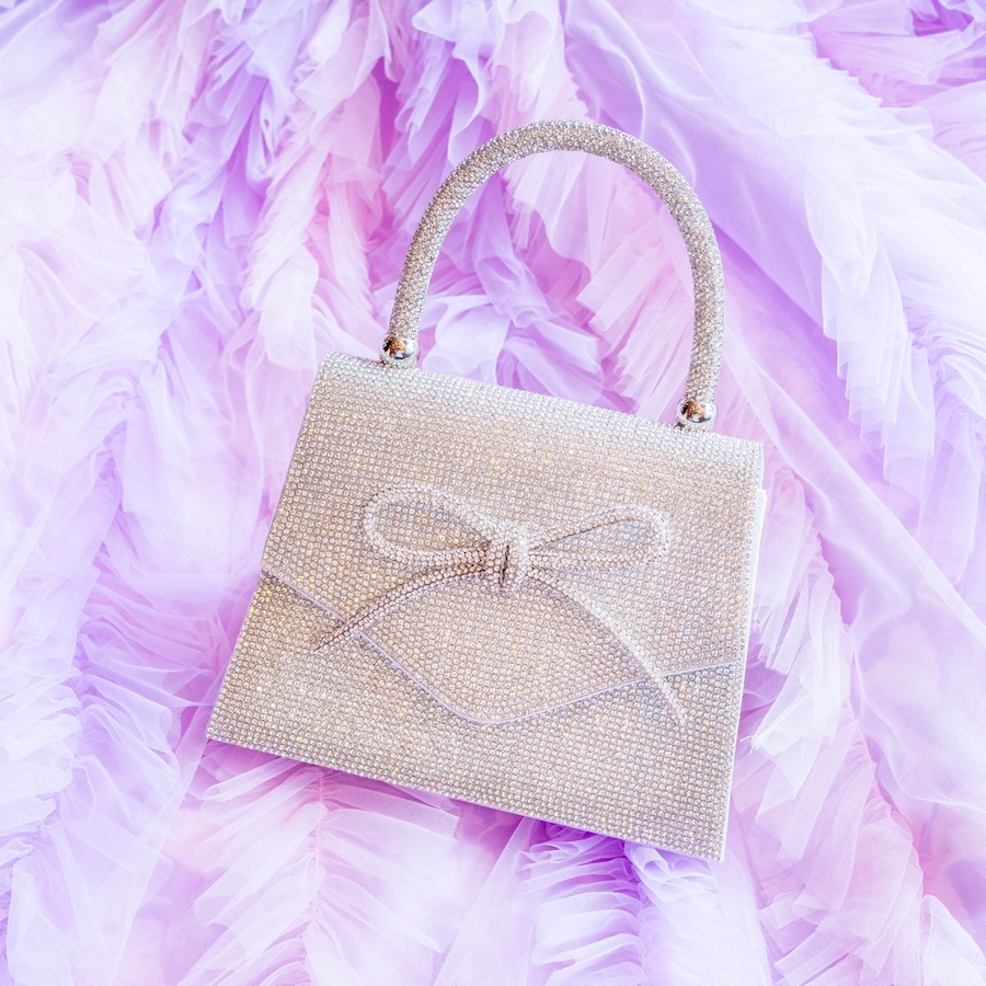◆バックスタイルはドレスのジャガード生地をミックスした大きなリボンで女の子らしさを表現