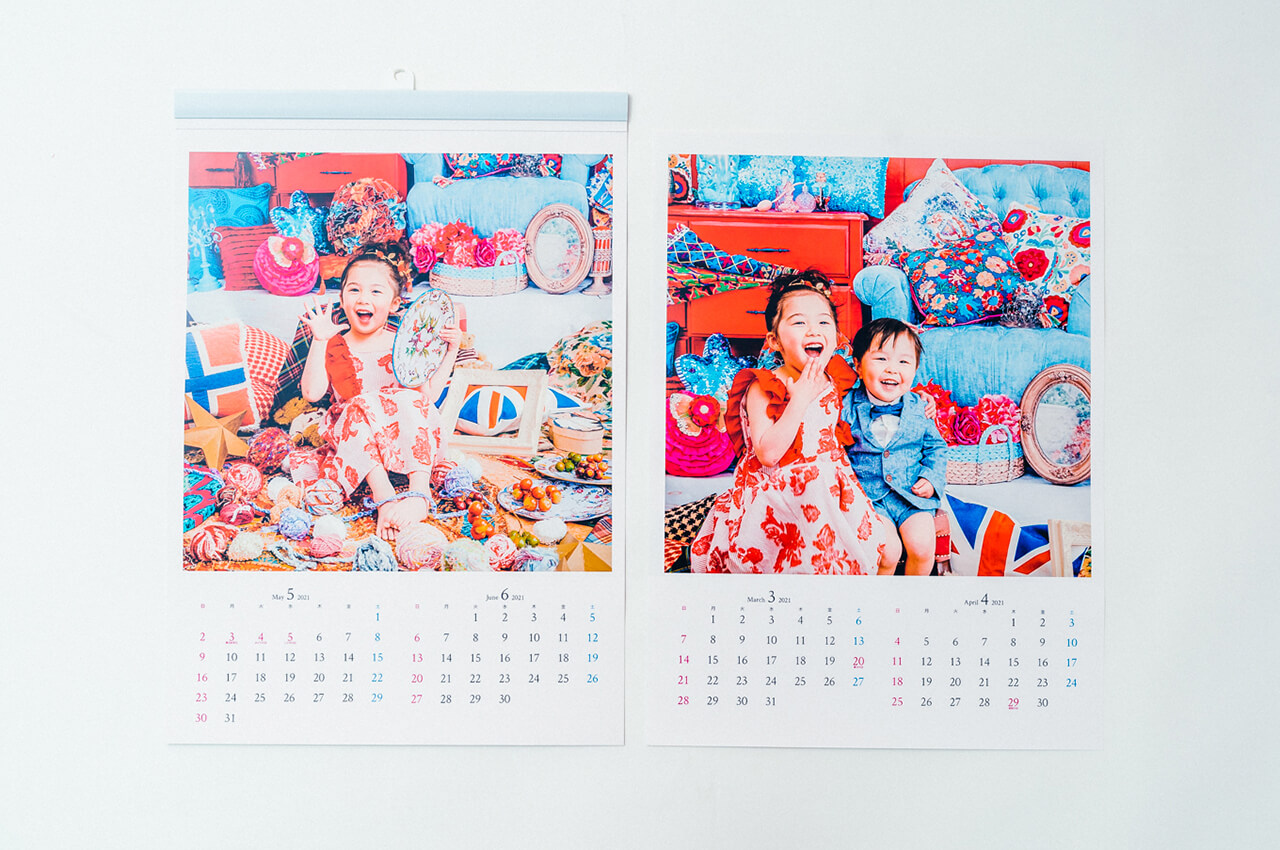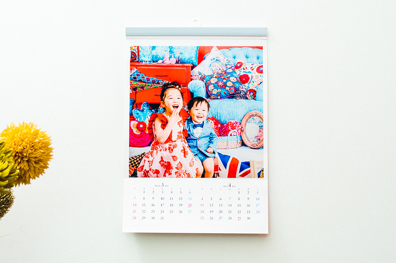 壁掛けタイプのA3サイズの年間カレンダー。お子さまの成長を日常に感じることのできる人気アイテム。カレンダー部分は切り離すことができるデザインのため、写真部分のみポスターとして飾ることができます。