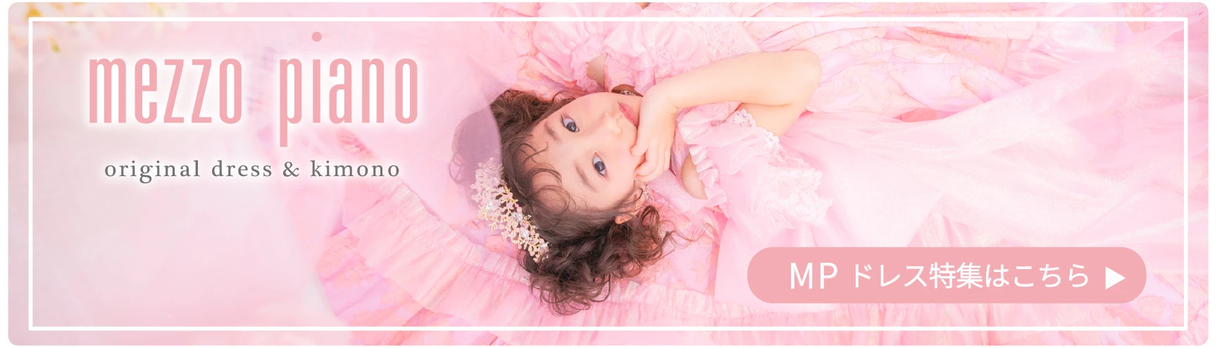 7歳モデルが着用しているメゾ ピアノ着物 ファンタジーブーケ(衣装番号63004)および3歳モデルが着用しているメゾ ピアノ着物 ファンタジードリーム(衣装番号63002)は、開催中のそごう大宮店、ららぽーと福岡店で着用可能です。