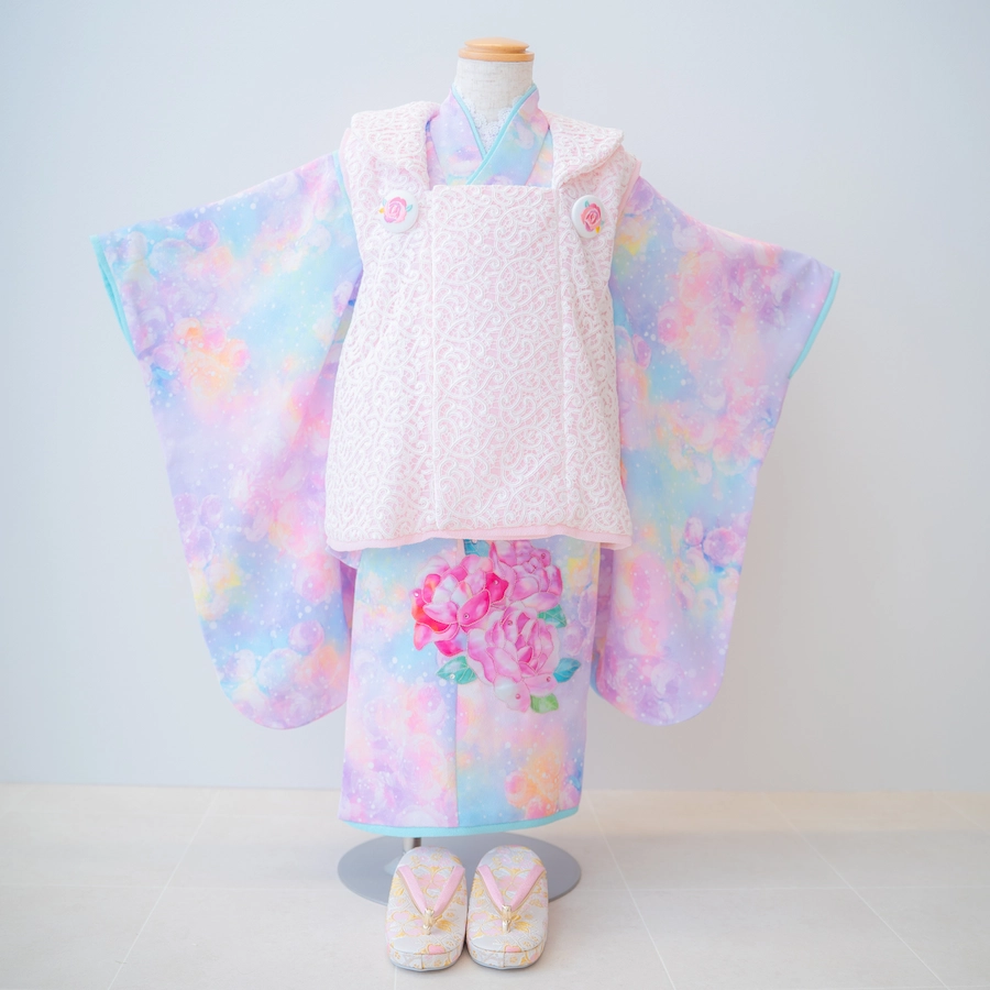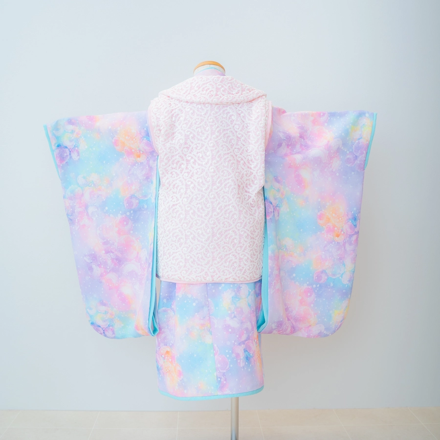 3歳の装いは、パステルカラーのグラデーションで