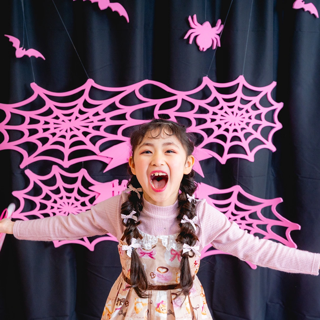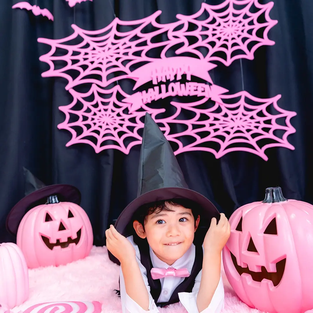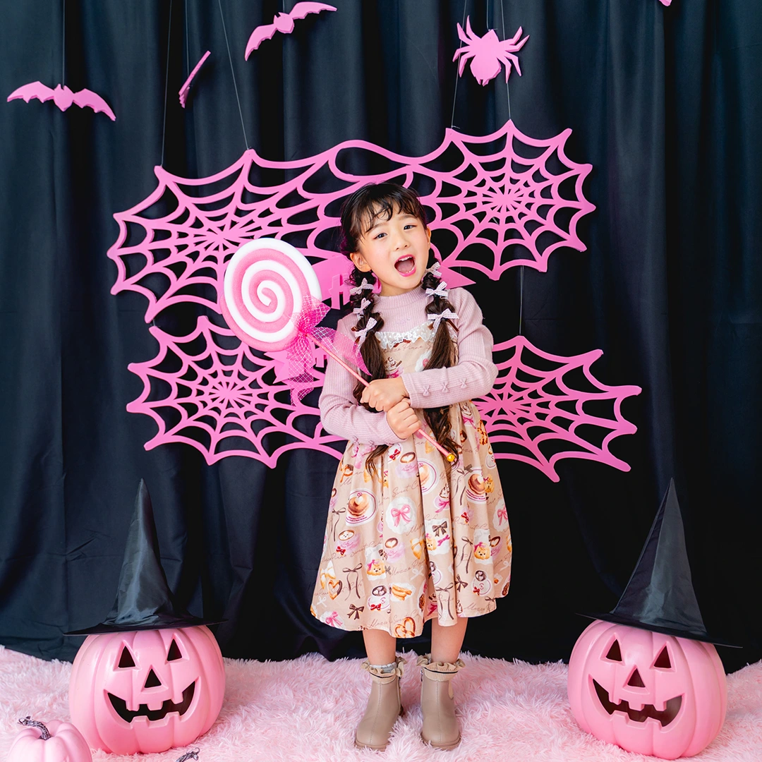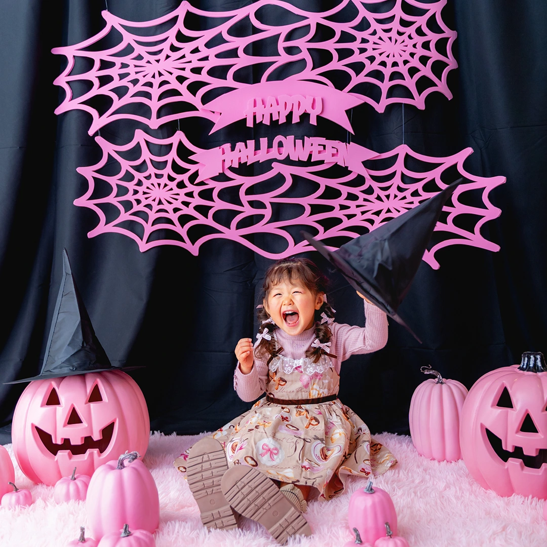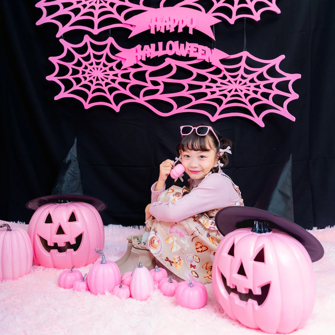 かぼちゃやこうもり、蜘蛛の巣まで、すべてピンクに彩られた空間は